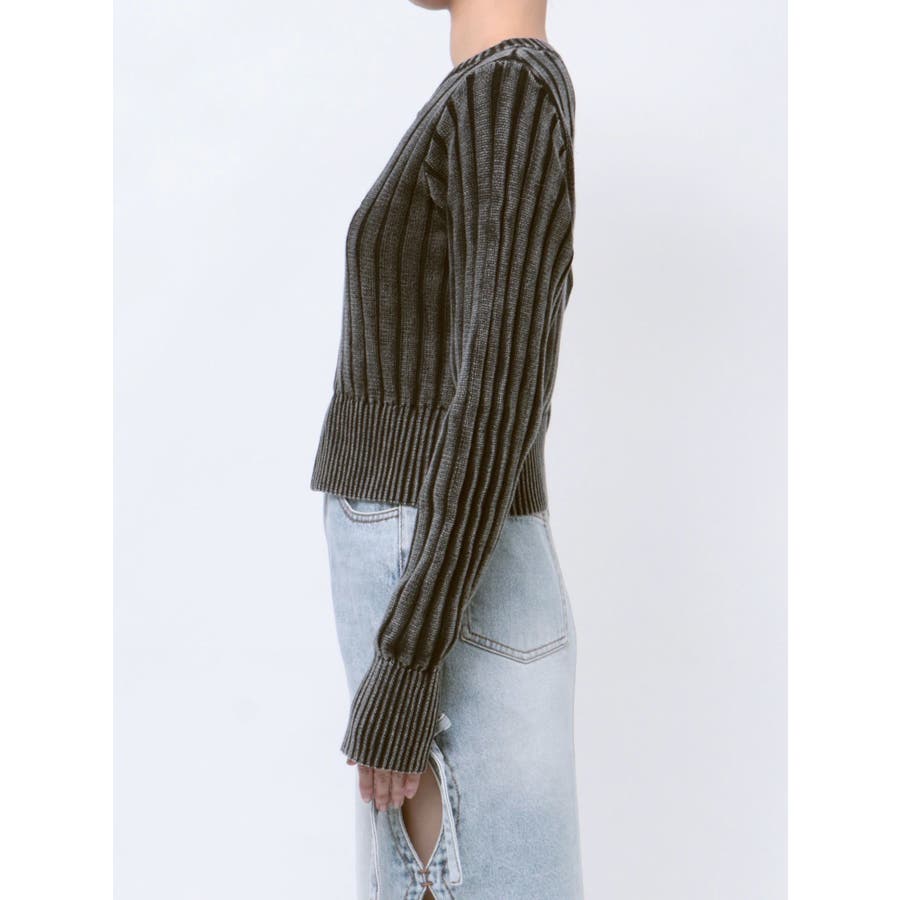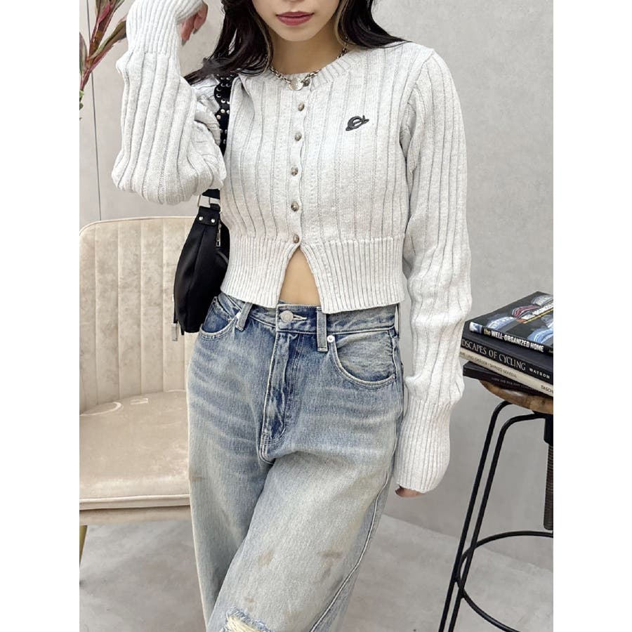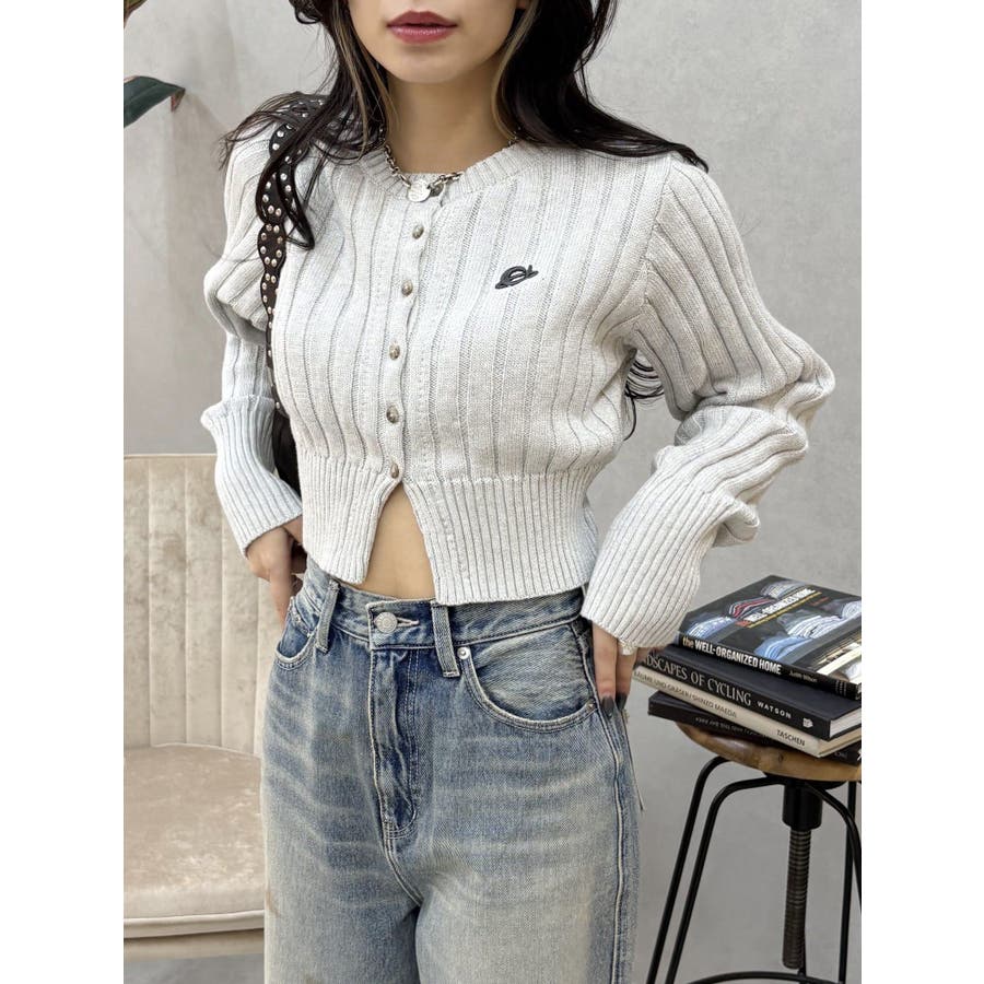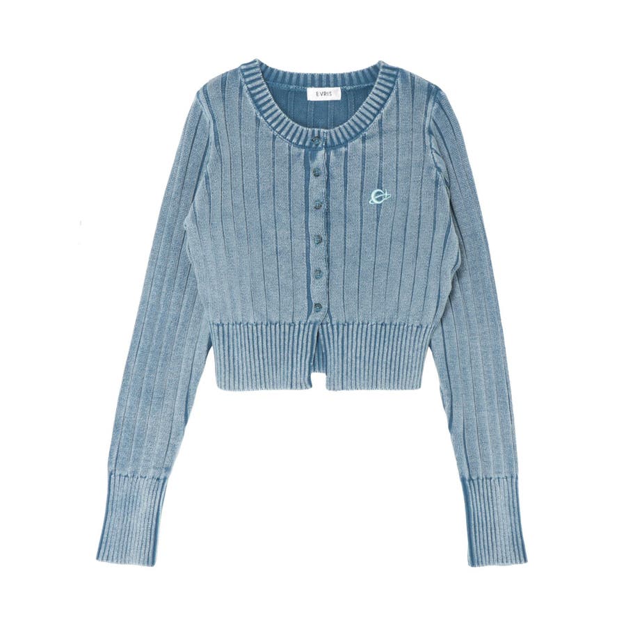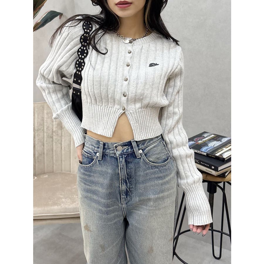 ワンポイントリブブリーチニットカーディガン