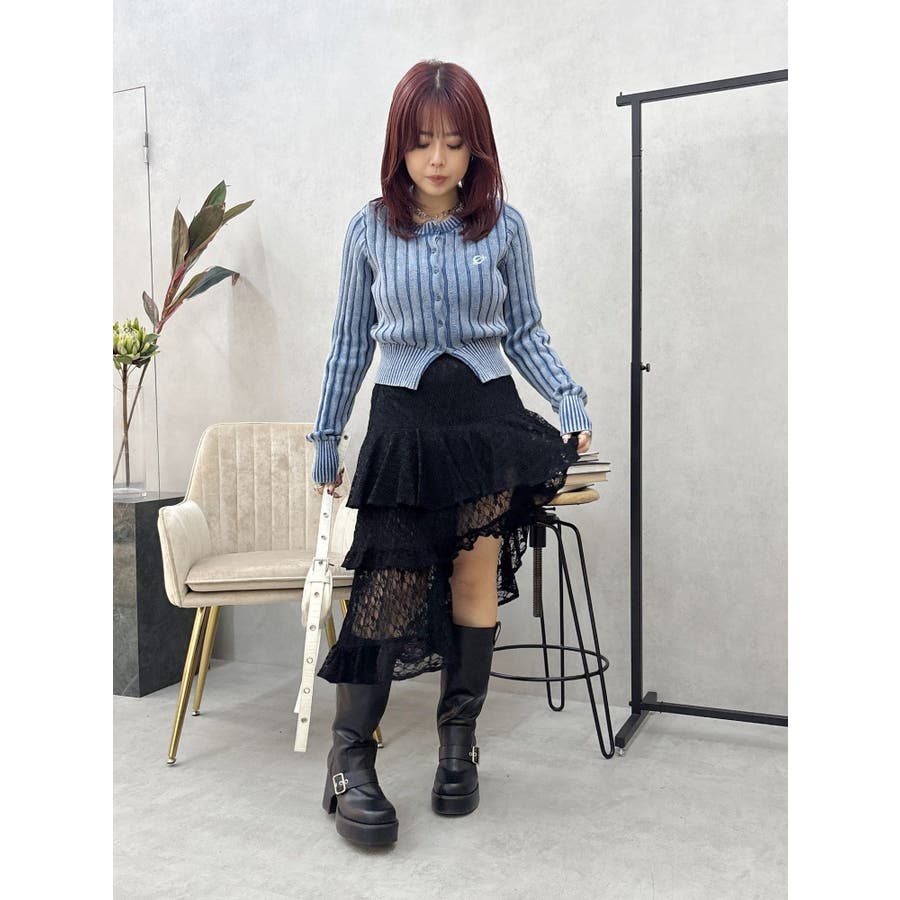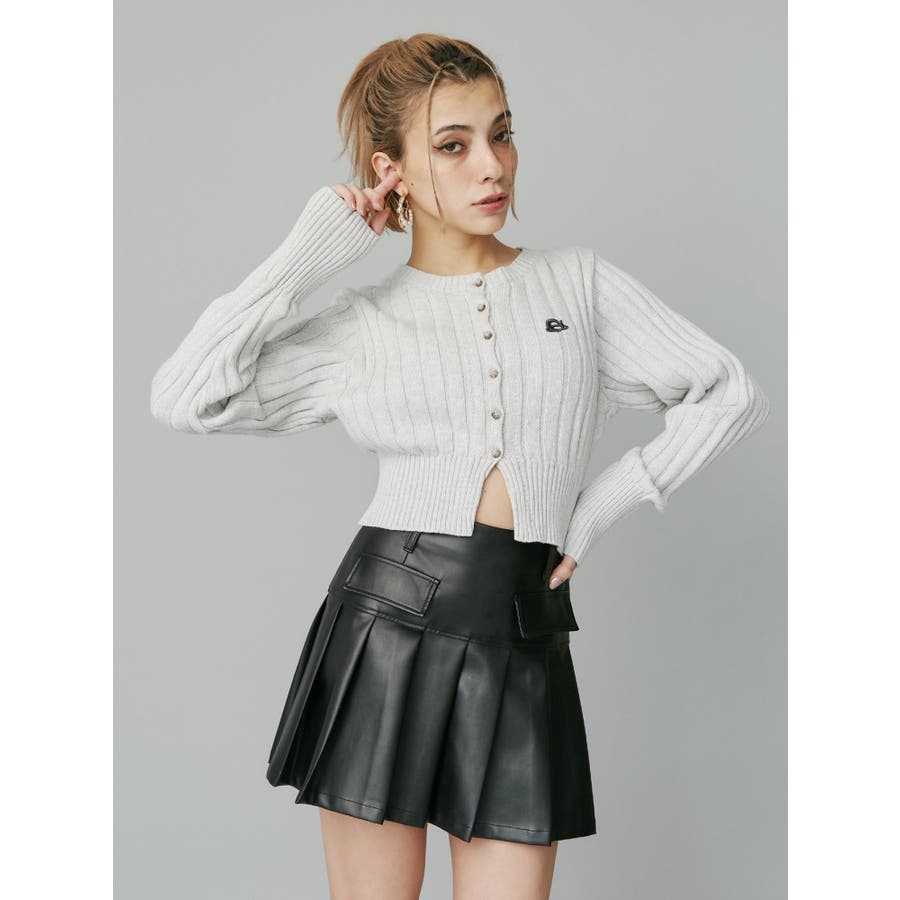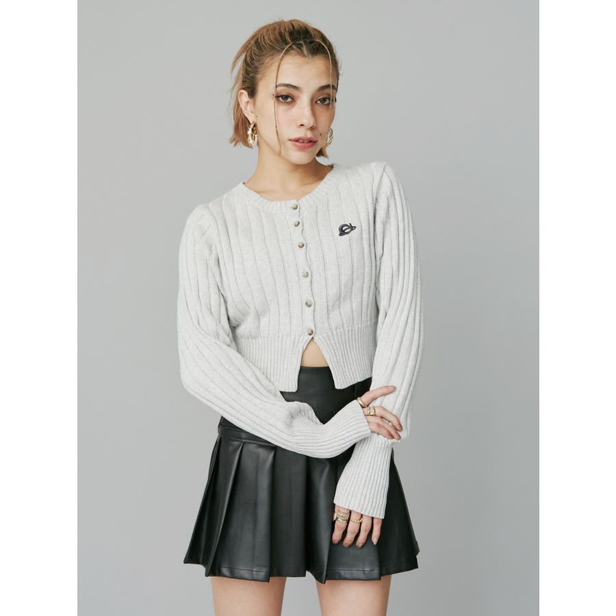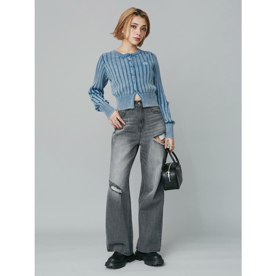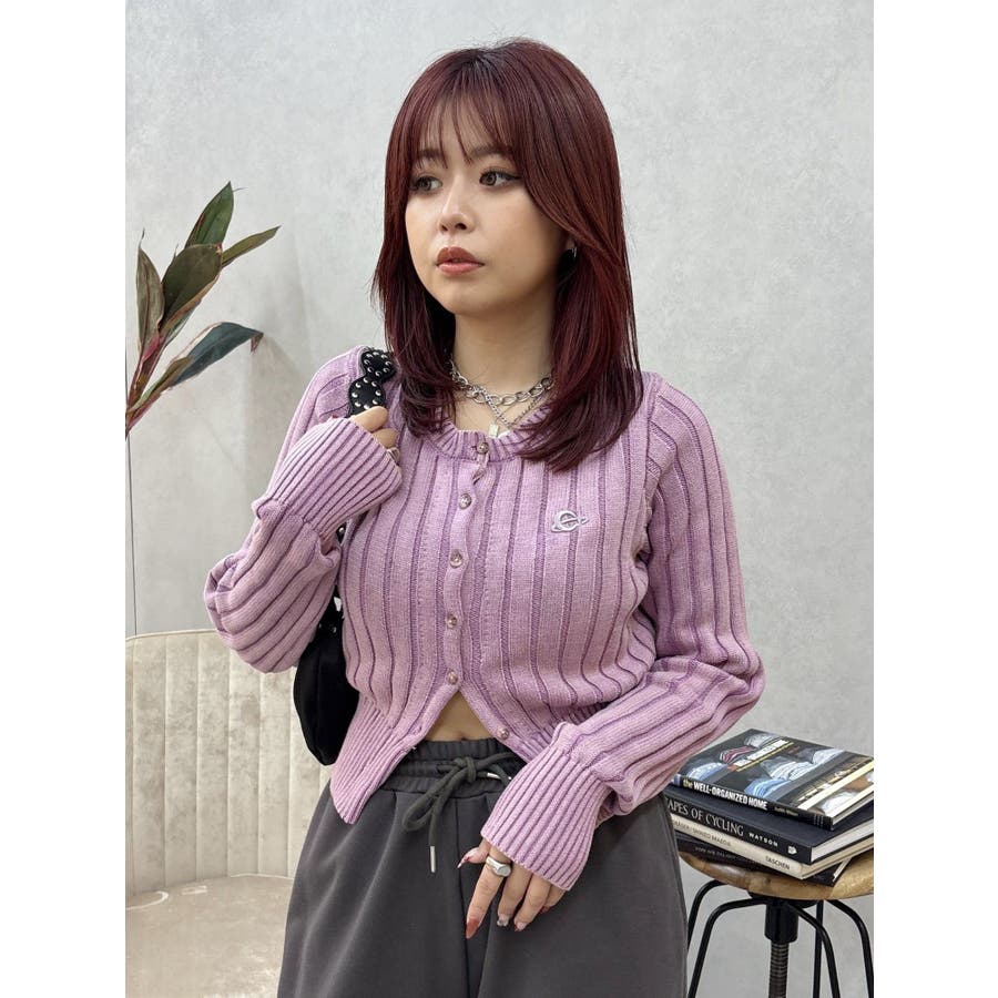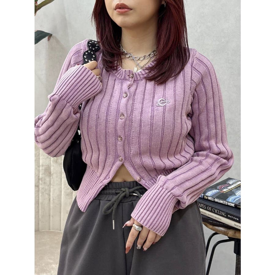 ワンポイントリブブリーチニットカーディガン