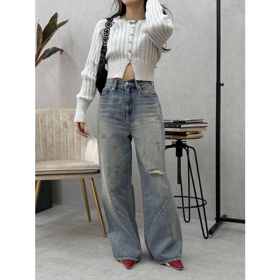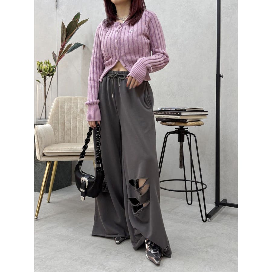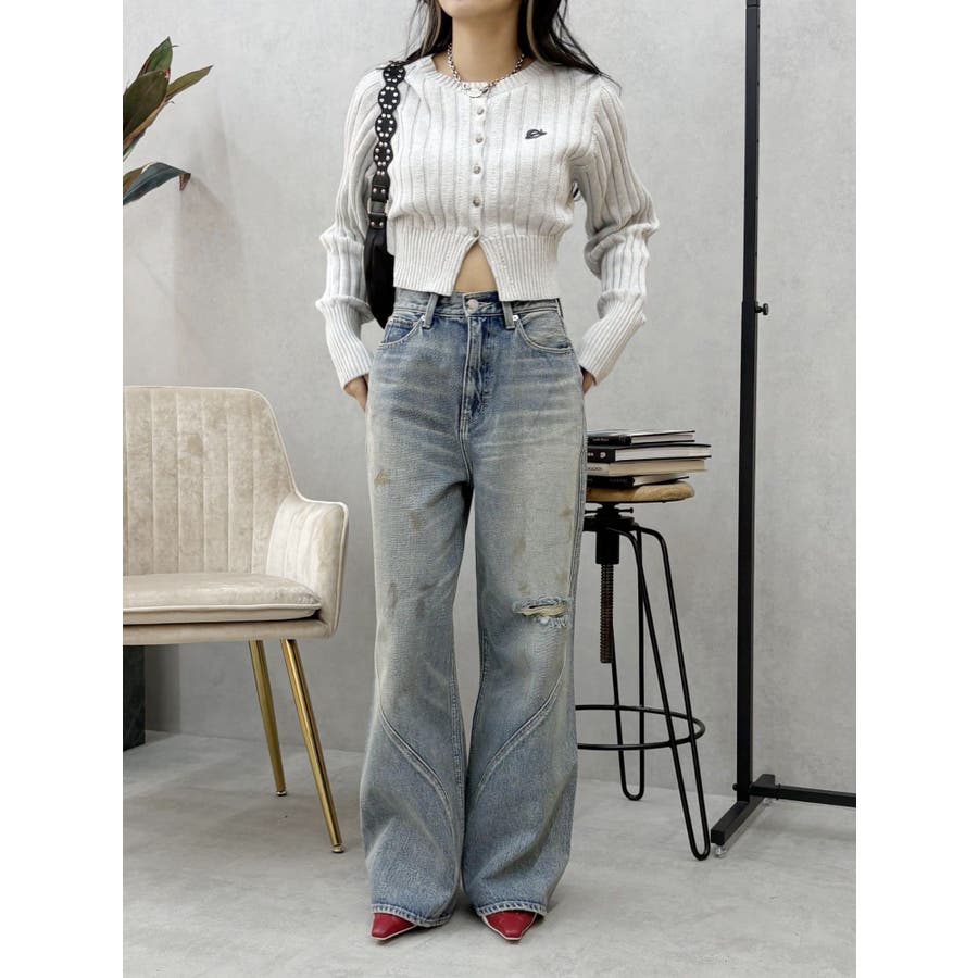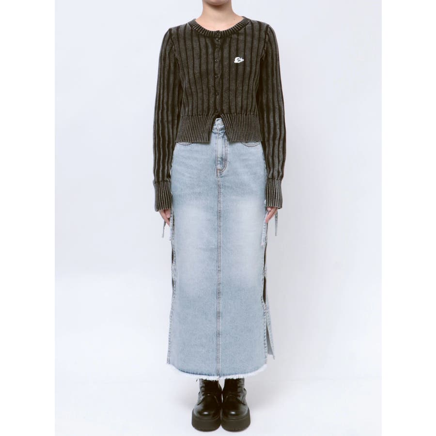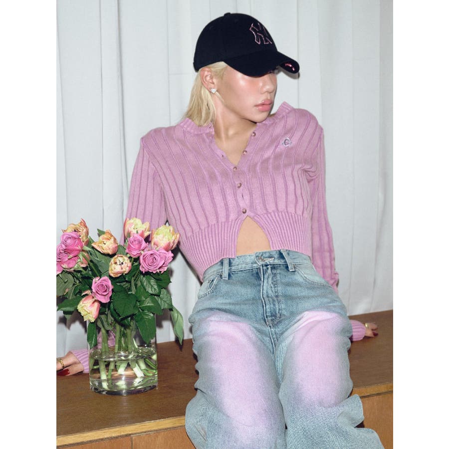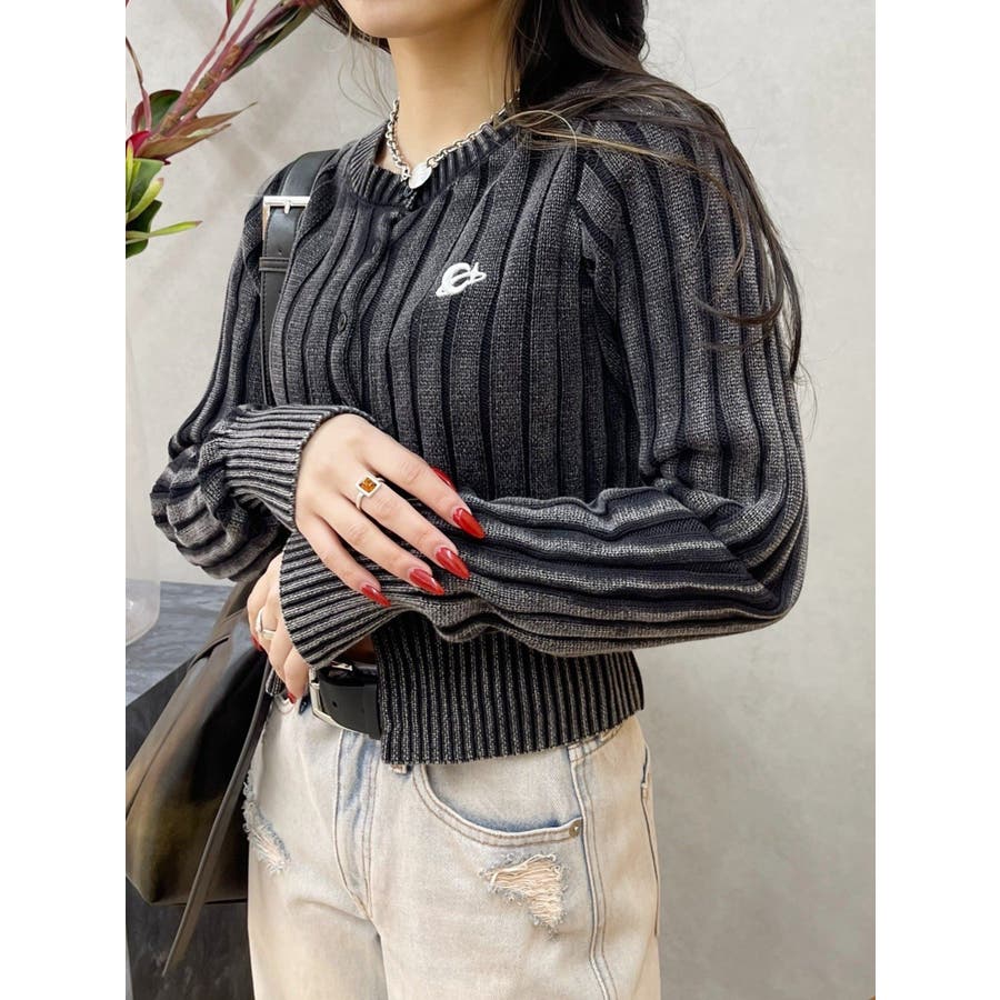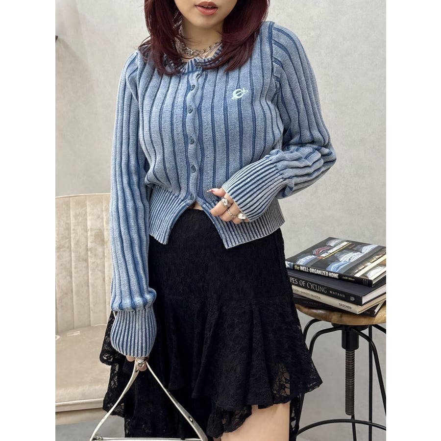 ■デザインブリーチ加工を施した、ヴィンテージ感のあるニットカーディガンです。裾は少しスリットをいれており、トレンド感のある仕上がりに。左胸のワンポイントは今季のオリジナルロゴを使用しています。※加工物なので個体差が出る可能性があります。 ■スタイリングコンパクトなサイズ感で、前を閉めてトップス風に着用できます。ワイドパンツやフレアパンツとの合わせがスタイルUPして見え、おすすめ。アウターのインナーにも着用しやすい一枚です。-------------- 透け感:なし 裏地:なし 生地の厚み:普通伸縮性:あり--------------