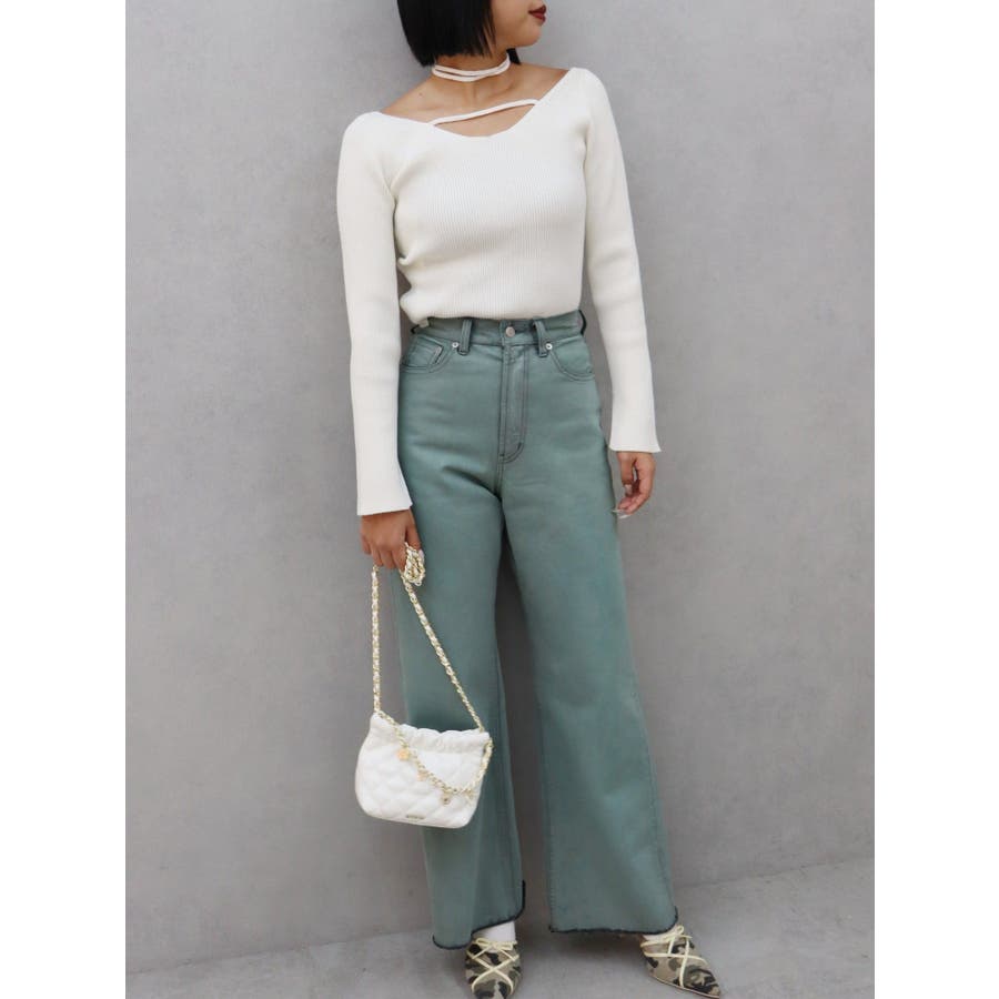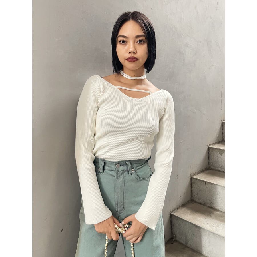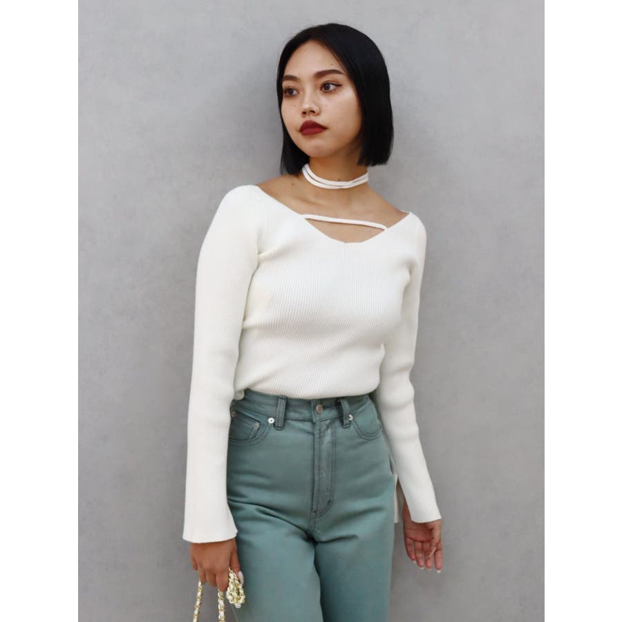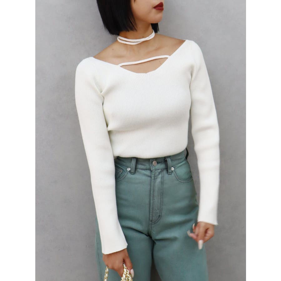 チョーカーネックニットトップス