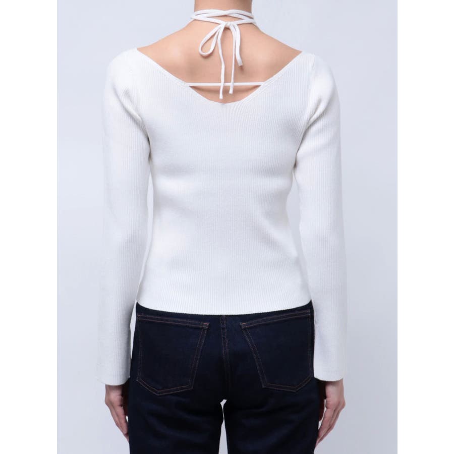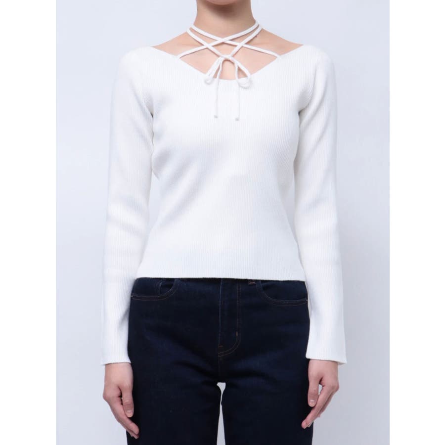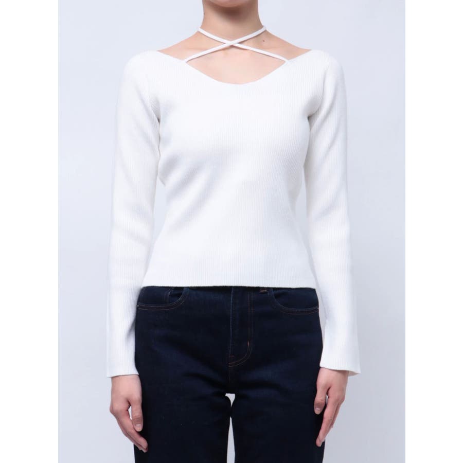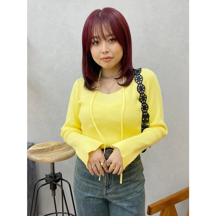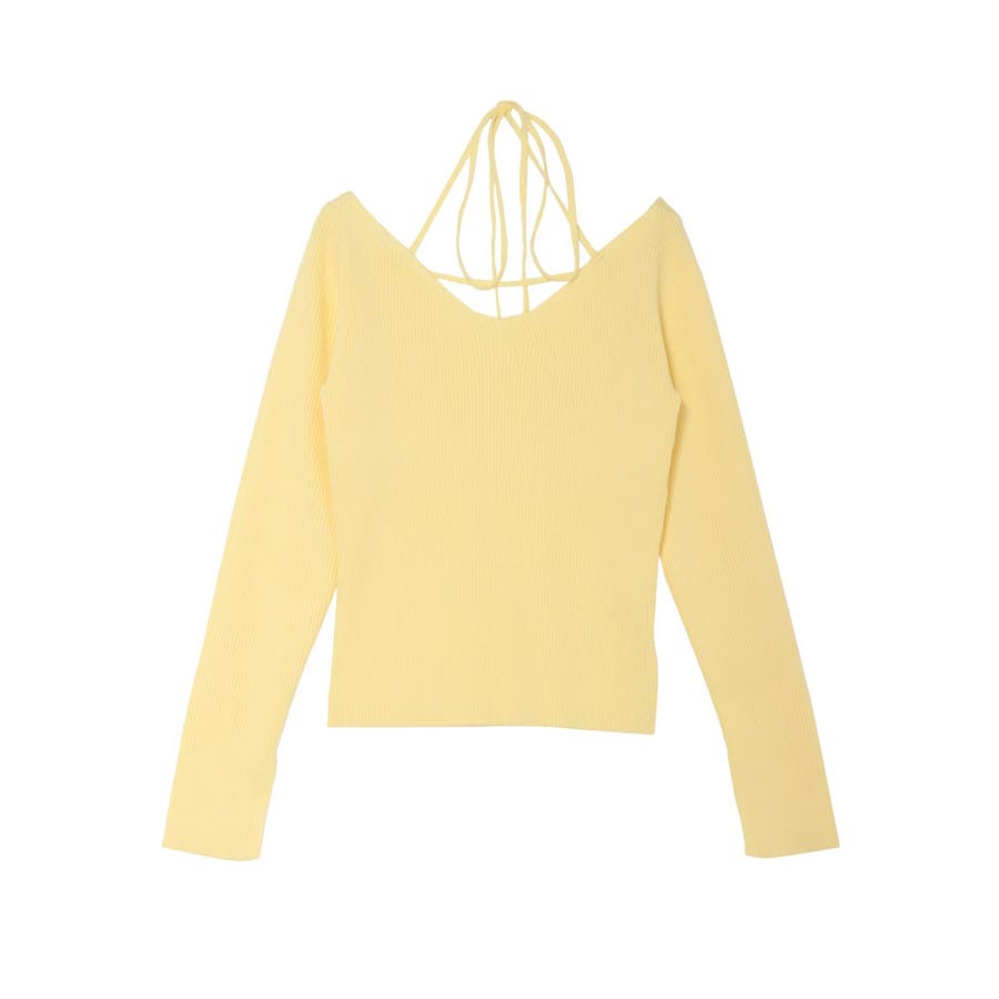 ■デザインアレンジ自在のスピンドルデザインがポイントとなったハイゲージニットトップスです。首の前でクロスしてガーリーな雰囲気で着用しても、首の後ろでリボン結びにして大人っぽく着用しても◎ベーシックカラーに加えて春らしいイエローもご用意。幅広い着こなしが楽しめるデザインです。■スタイリングアウターやジャケット、ワンピースのインナーにもぴったりな程よい厚みです。-------------- 透け感:なし 裏地:なし 生地の厚み:普通伸縮性:あり--------------