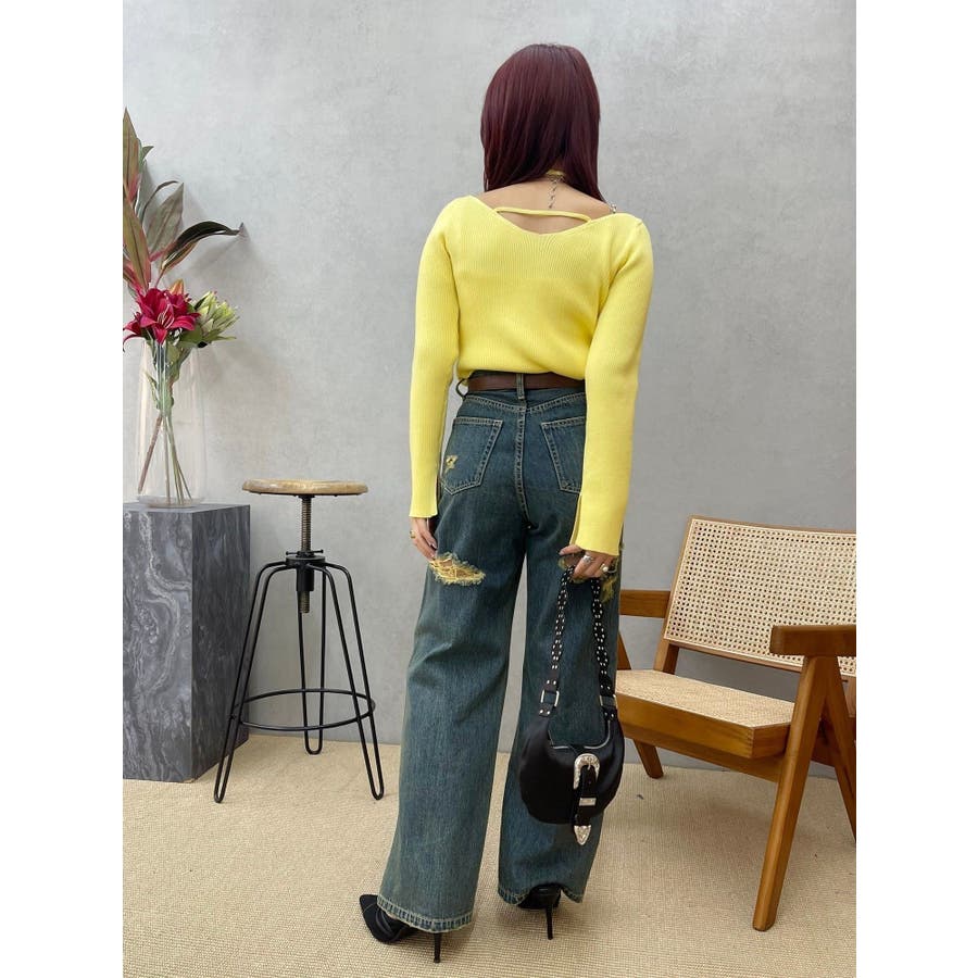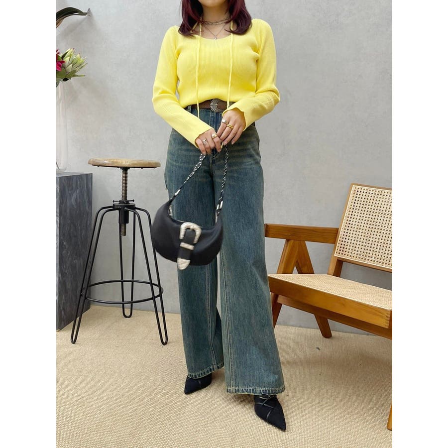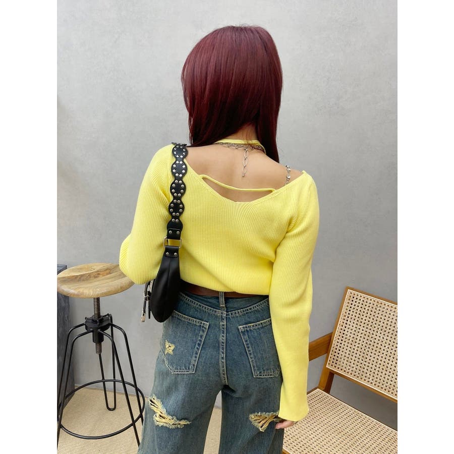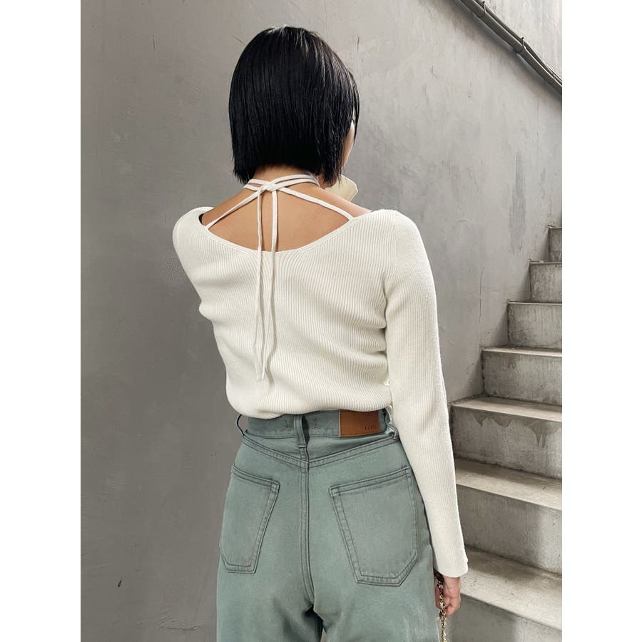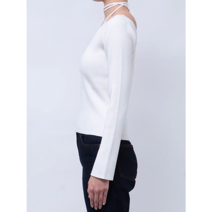 ■デザインアレンジ自在のスピンドルデザインがポイントとなったハイゲージニットトップスです。首の前でクロスしてガーリーな雰囲気で着用しても、首の後ろでリボン結びにして大人っぽく着用しても◎ベーシックカラーに加えて春らしいイエローもご用意。幅広い着こなしが楽しめるデザインです。■スタイリングアウターやジャケット、ワンピースのインナーにもぴったりな程よい厚みです。-------------- 透け感:なし 裏地:なし 生地の厚み:普通伸縮性:あり--------------
