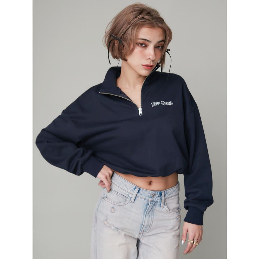 ナンバリングハーフZIPスウェットトップス