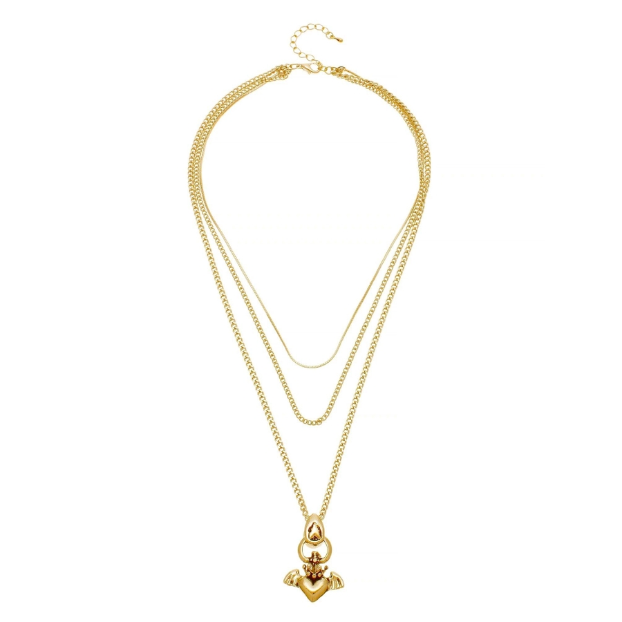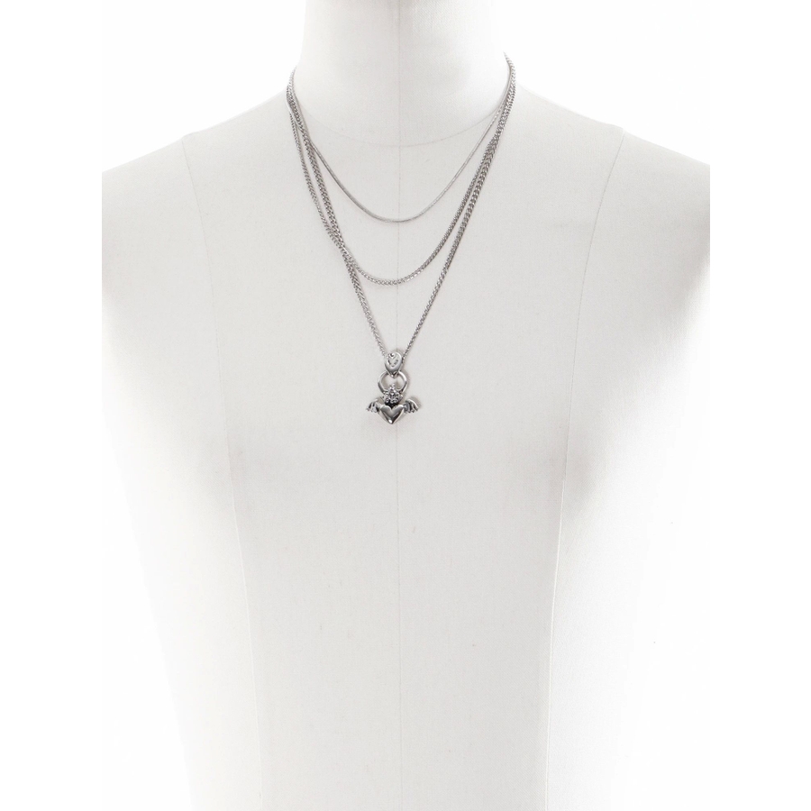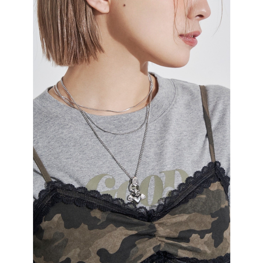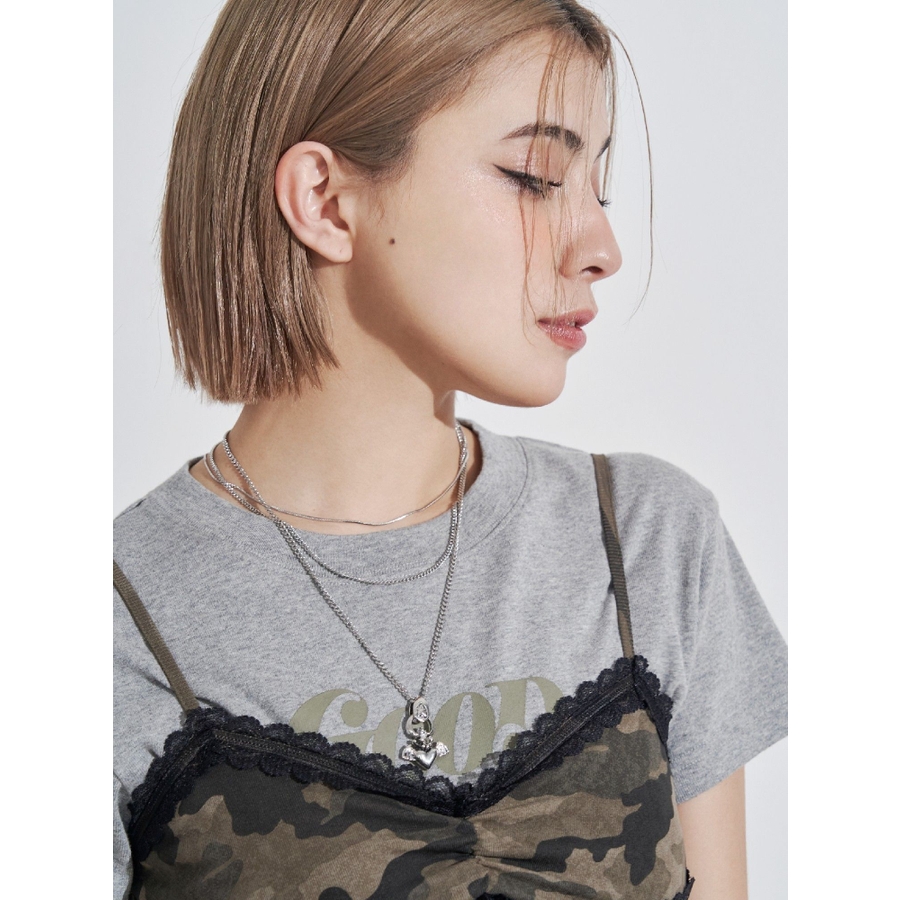 トレンドのY2K感あるモチーフが付いた3連のネックレスです。華奢なパーツに、様々な華奢なチェーンを組み合わせており、合わせやすいネックレスです。