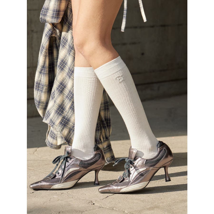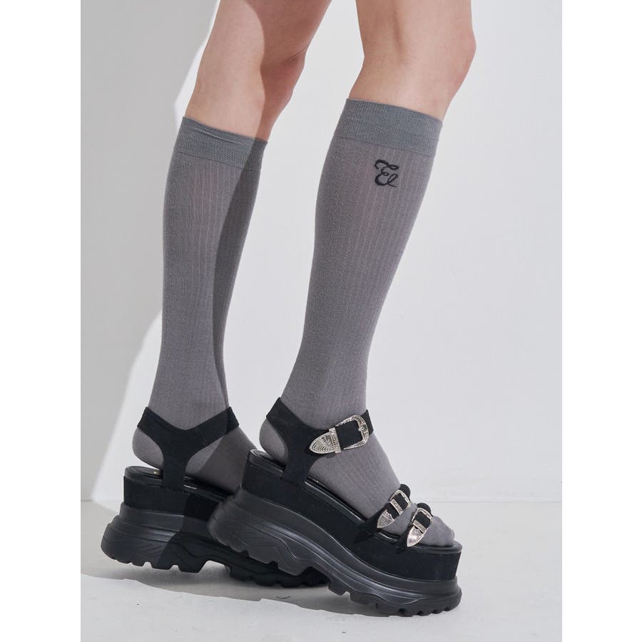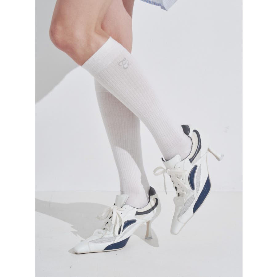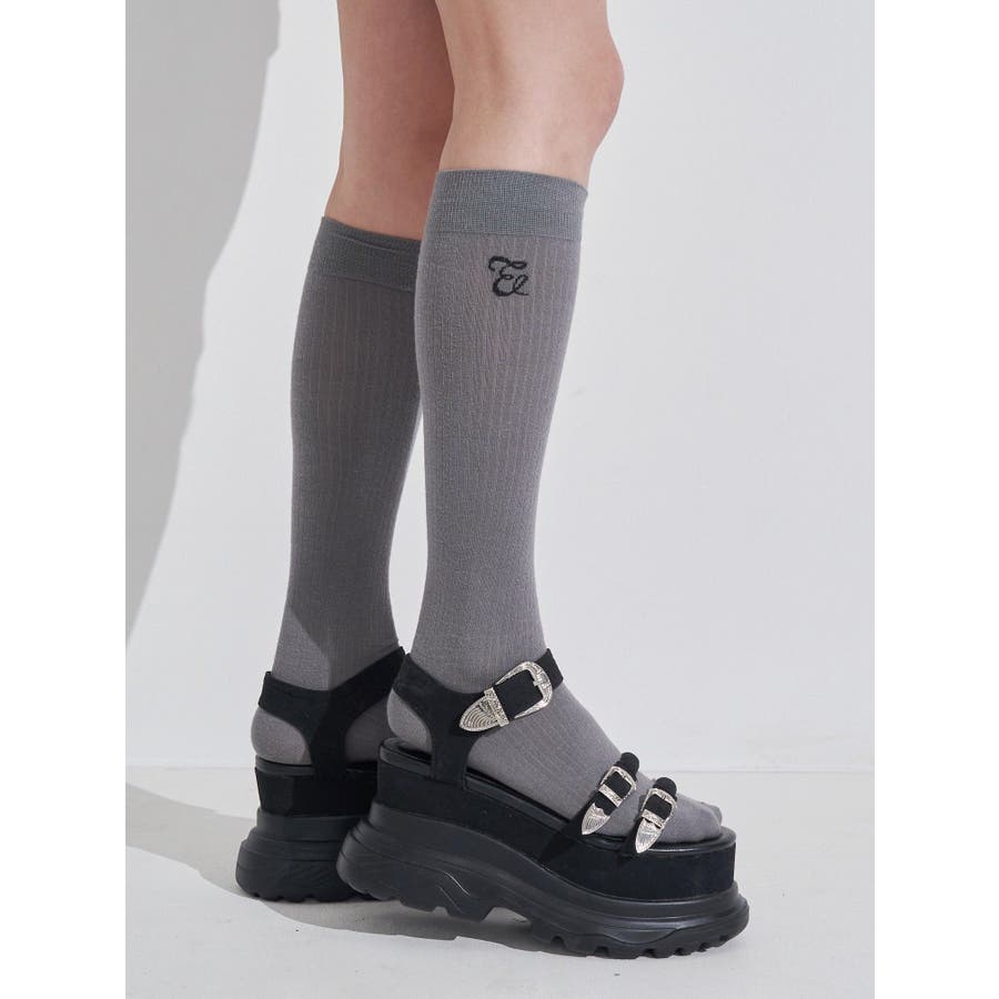 サイドにオリジナルのワンポイントロゴをジャガード編みした膝下丈のソックスです。リブ編みの仕様で脚長効果があります。薄手の素材を使用しシアー感のある見た目で、夏場でも着用しやすい靴下です。足裏にはポップなカラーでEVRISのブランドロゴを入れています。サンダルやスニーカーなどと合わせたミニボトムとのスタイリングがおすすめです。どんなコーディネートにも取り入れやすいWHITE・GRAYの2カラー。