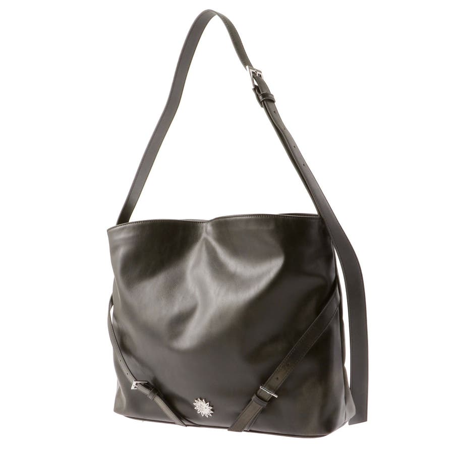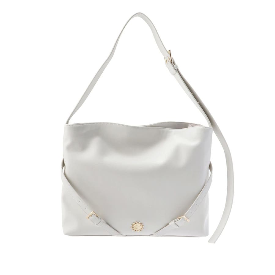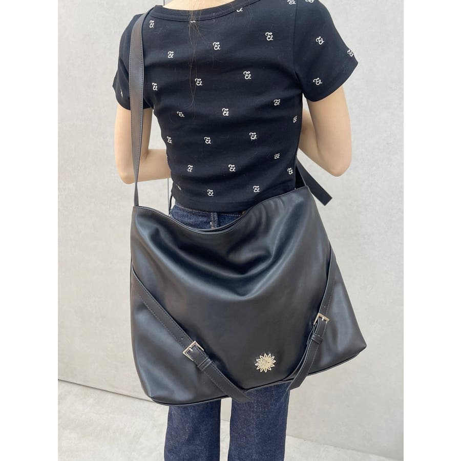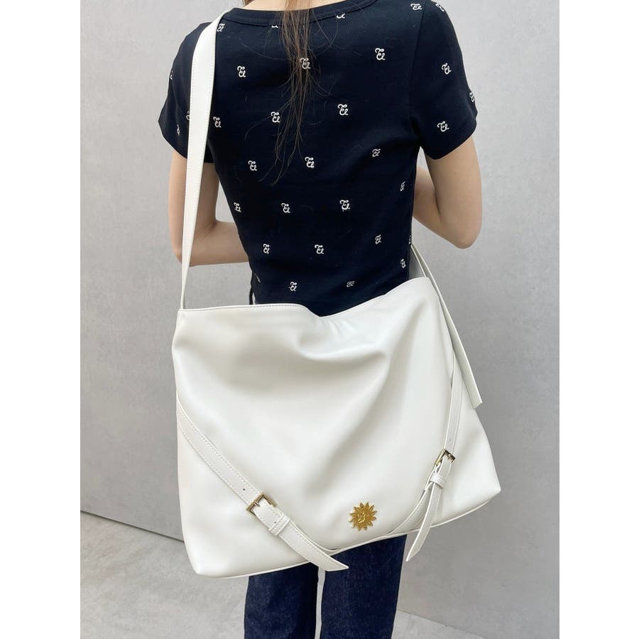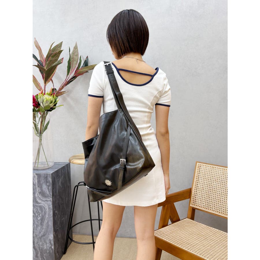 本体とショルダー部分のベルトはポイントです。柔らかい素材を使用しているため、くたっとしたシルエットに仕上がっています。