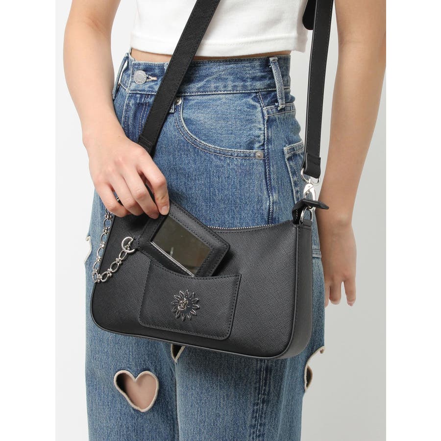 インパクトのあるチェーンを使用したミラー付のショルダーバッグです。表面感のある合成皮革を使用しており、型崩れしにくい高級感のある仕上がりになっていますのでいつものコーディネートもブラッシュアップ。薄めのマチで最低限の荷物が入ります。カジュアルなエコバッグと合わせて2個持ちもトレンド感があっておすすめ。■デザインワンポイントのSUNNY付きでシンプルなデザイン。ミラーはチェーンで繋がっており、取り外しも可能。ミラーを外せば外側のミニポケットに収納可能。ショルダー紐は長さ調節可能で身長や使い勝手に合わせて変更出来ます。■カラーベーシックなホワイト・ブラックに今年トレンドのイエローの3カラー展開。ブラック・イエローはシルバー金具、ホワイトはゴールドの金具です。