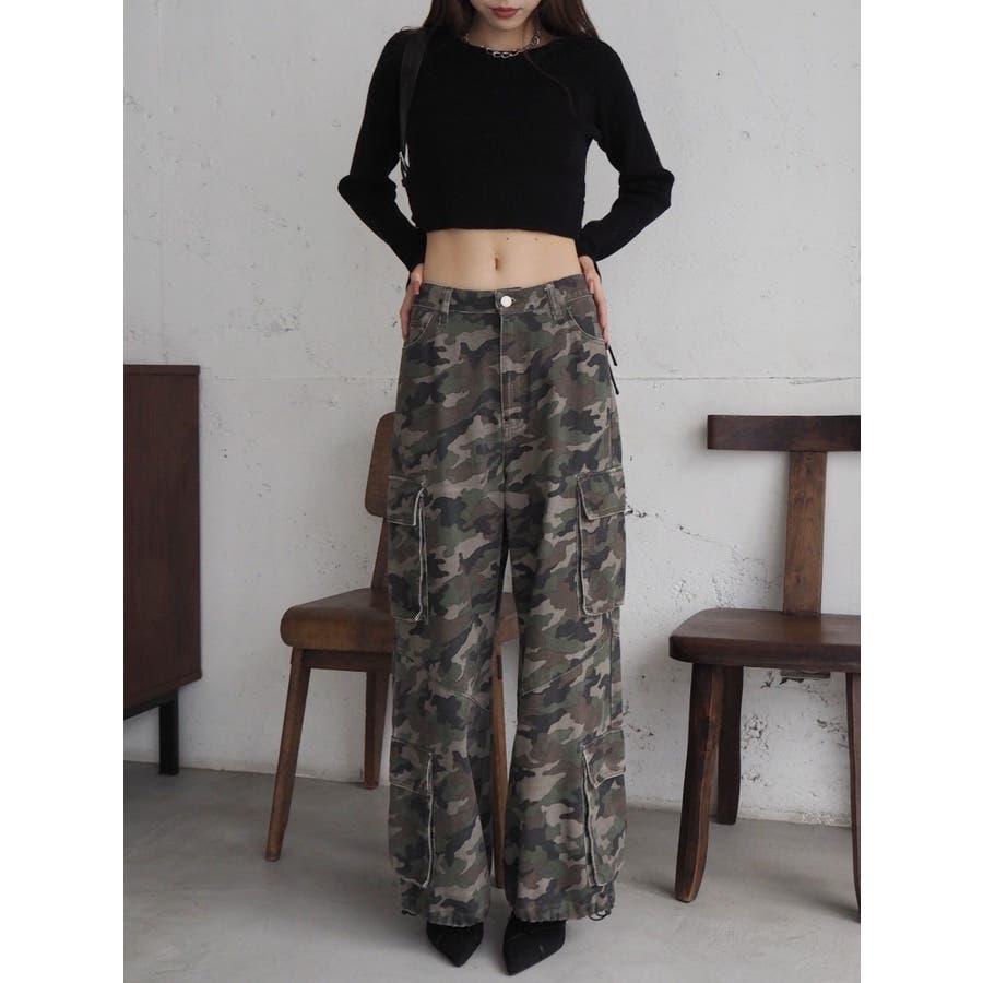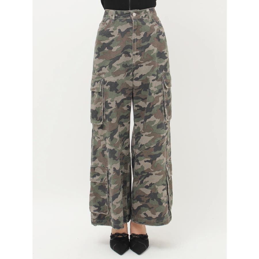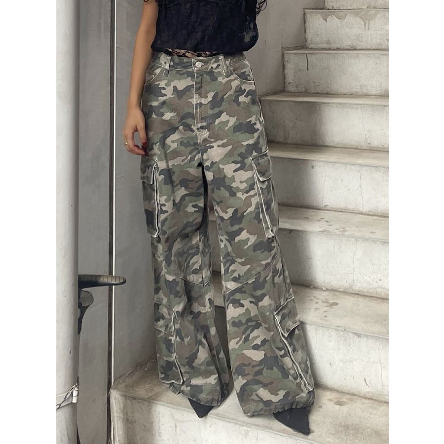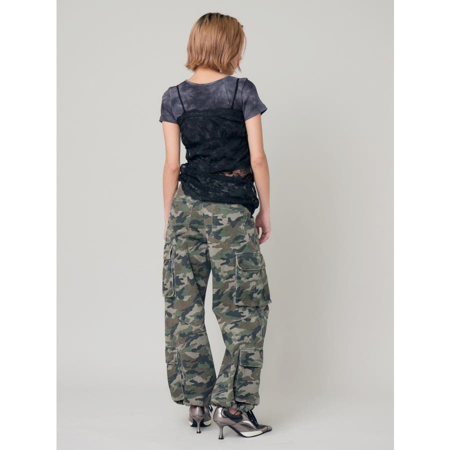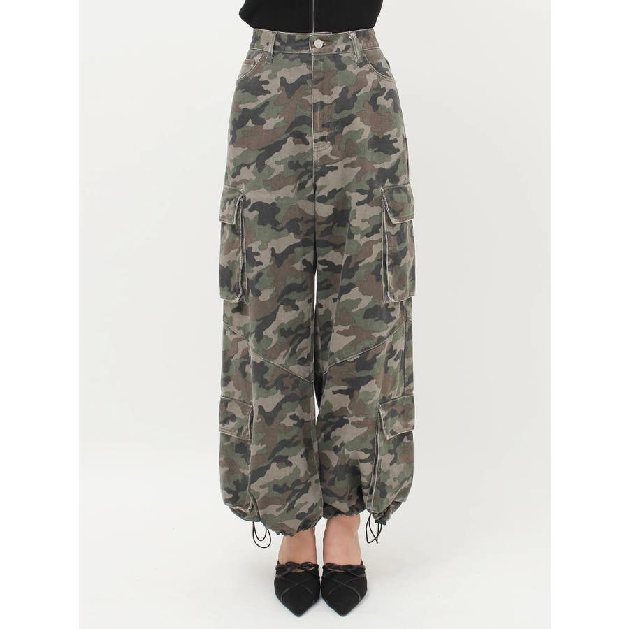 ■スタイリングたっぷりとボリュームを持たせたシルエットがポイントのカーゴパンツです。両サイドの大きなポケットがよりカジュアルな雰囲気を演出。裾にはアジャスターが付いており、シルエットも調節可能。その日の気分によってお好みでスタイリングを楽しめます。カモフラ柄は今年の春は一枚は持っておきたいマストアイテム。■スタイリングボリュームのあるボトムにはコンパクトなトップス合わせがテッパン。ジャケットやレーストップスなどキレイ目なアイテムと合わせるのもおすすめ。-------------- 透け感:なし 裏地:なし 生地の厚み:普通伸縮性:なし --------------