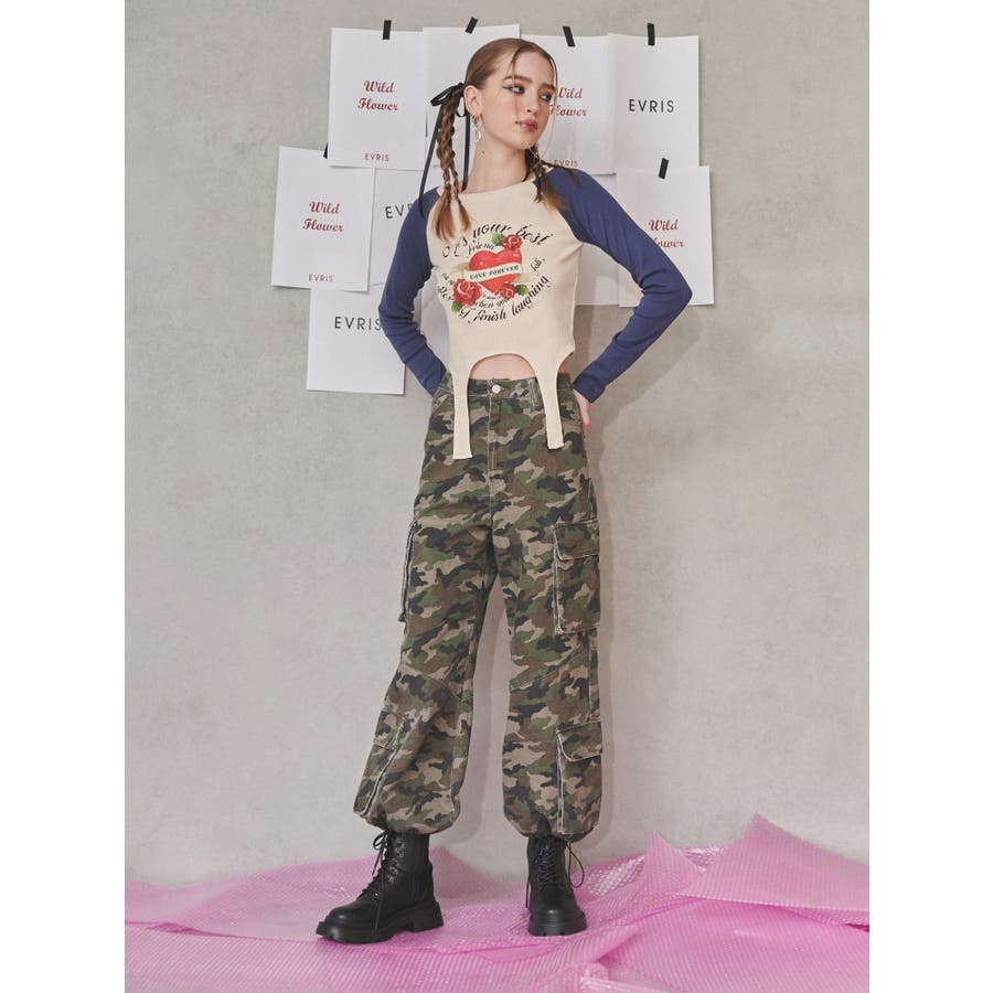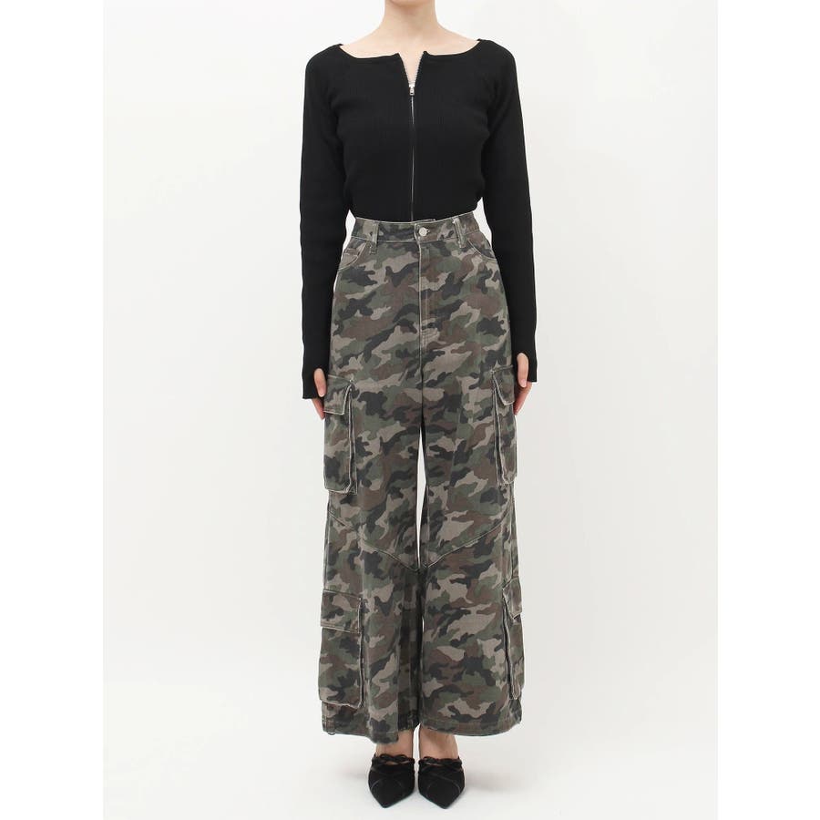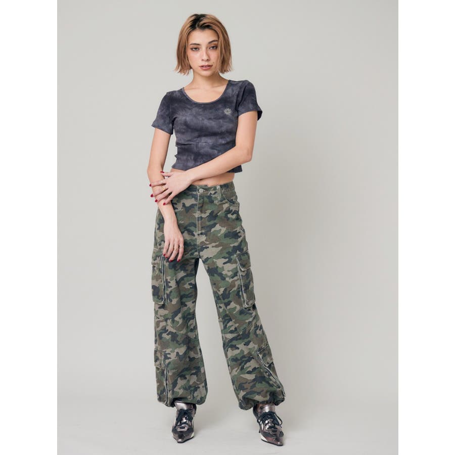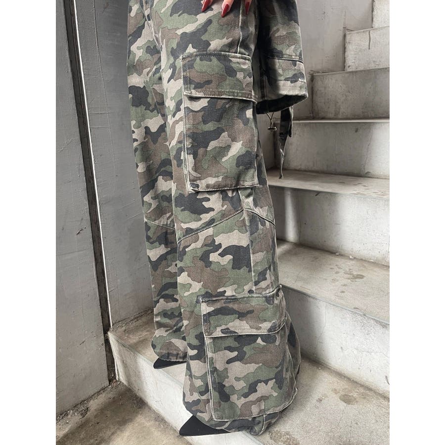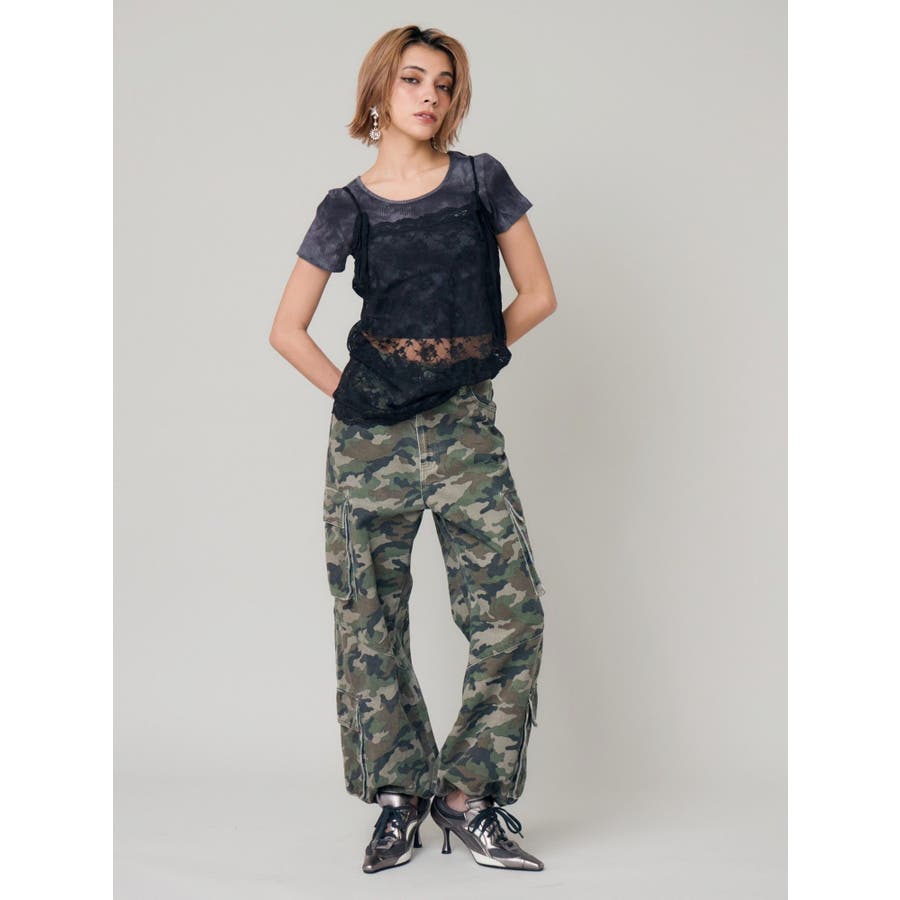 ■スタイリングたっぷりとボリュームを持たせたシルエットがポイントのカーゴパンツです。両サイドの大きなポケットがよりカジュアルな雰囲気を演出。裾にはアジャスターが付いており、シルエットも調節可能。その日の気分によってお好みでスタイリングを楽しめます。カモフラ柄は今年の春は一枚は持っておきたいマストアイテム。■スタイリングボリュームのあるボトムにはコンパクトなトップス合わせがテッパン。ジャケットやレーストップスなどキレイ目なアイテムと合わせるのもおすすめ。-------------- 透け感:なし 裏地:なし 生地の厚み:普通伸縮性:なし --------------