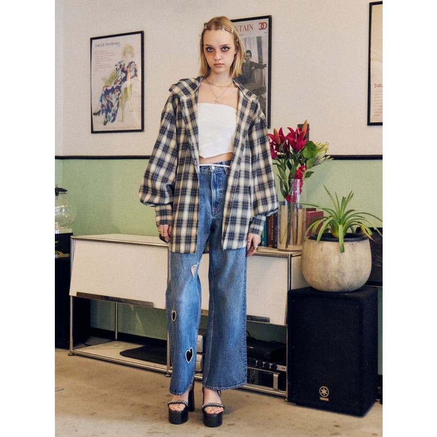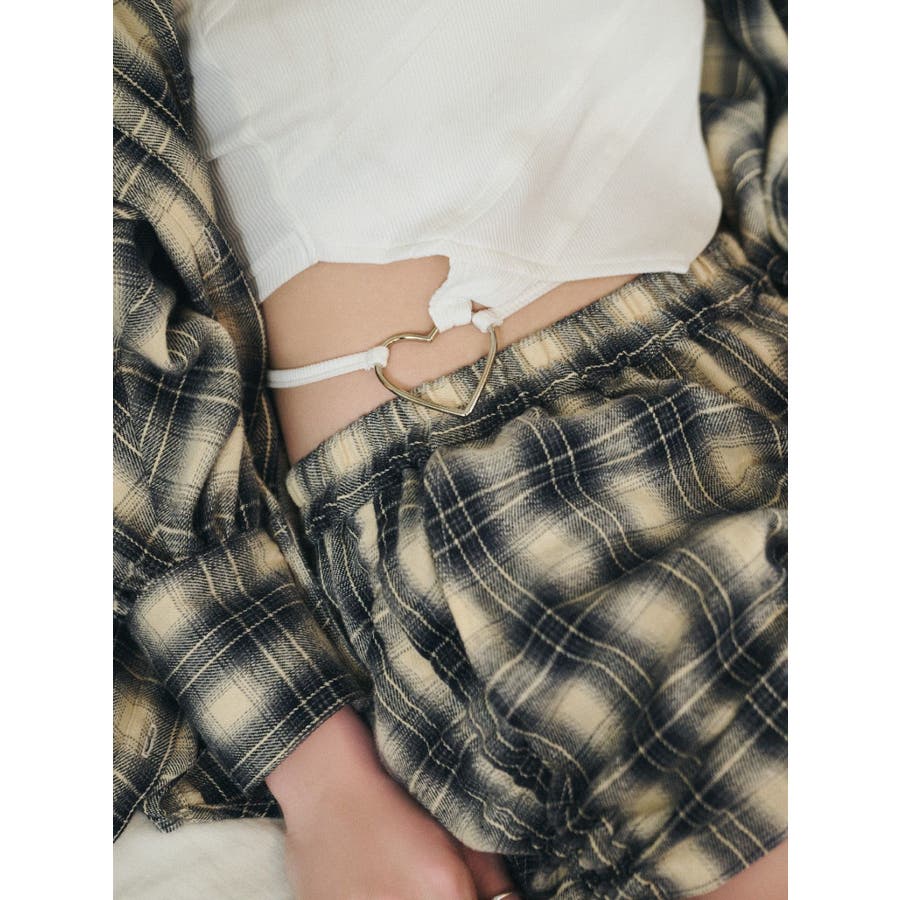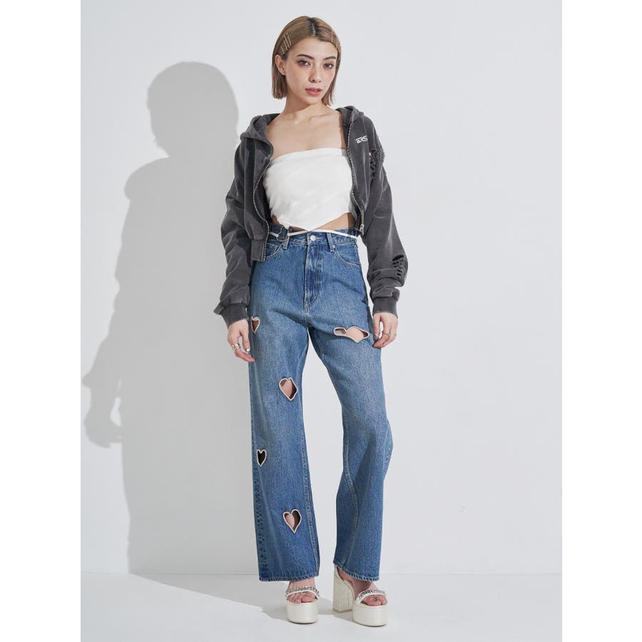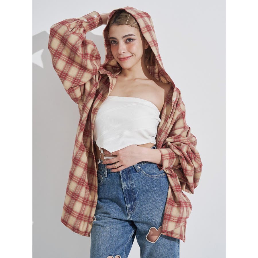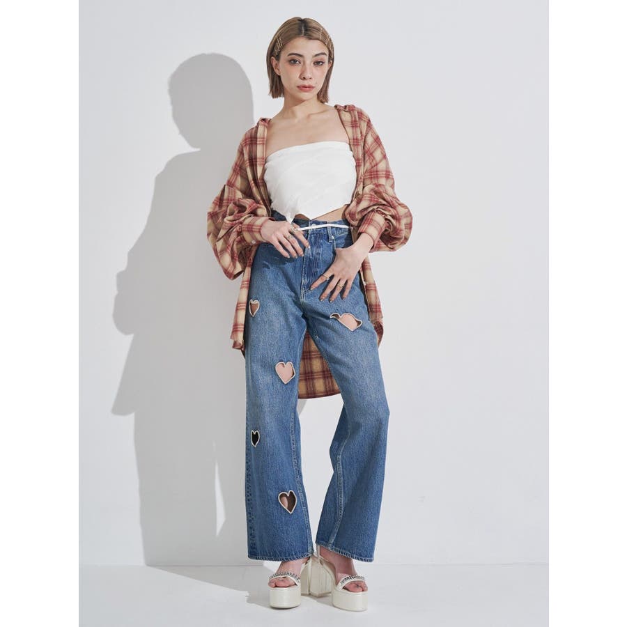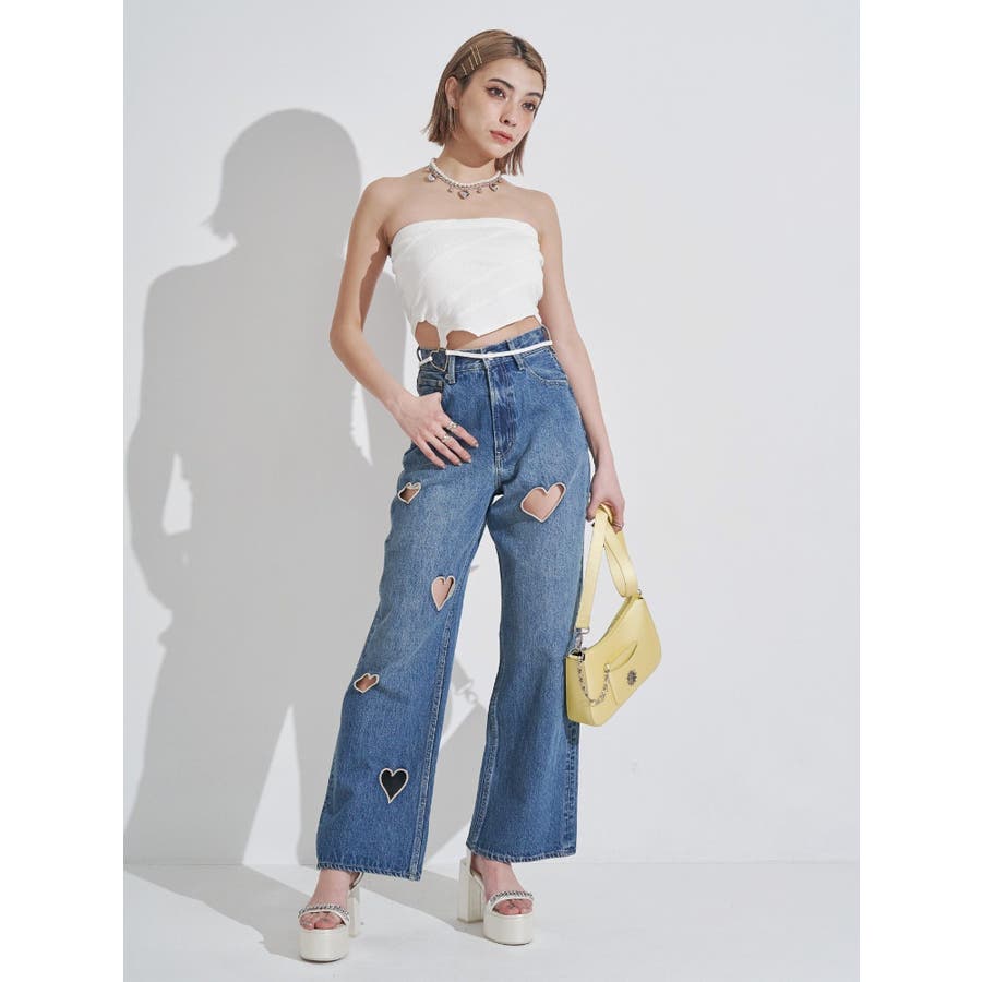 ■デザインハートモチーフがポイントのベアトップスです。パット入りでアンダーバスト部分にもゴムが入っており安心感のある1枚です。羽織モノのインナーとして着回ししやすいアイテムです。■スタイリングワイドなボトムやデニム合わせがおすすめ◎-------------- 透け感:なし 裏地:あり(パッド付き)生地の厚み:普通伸縮性:なし --------------