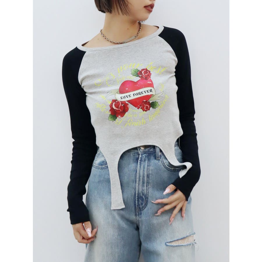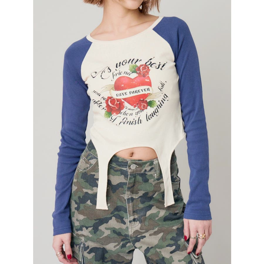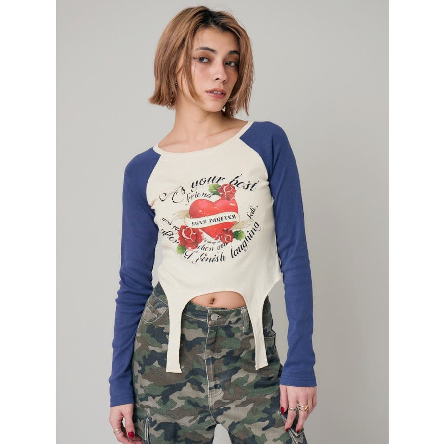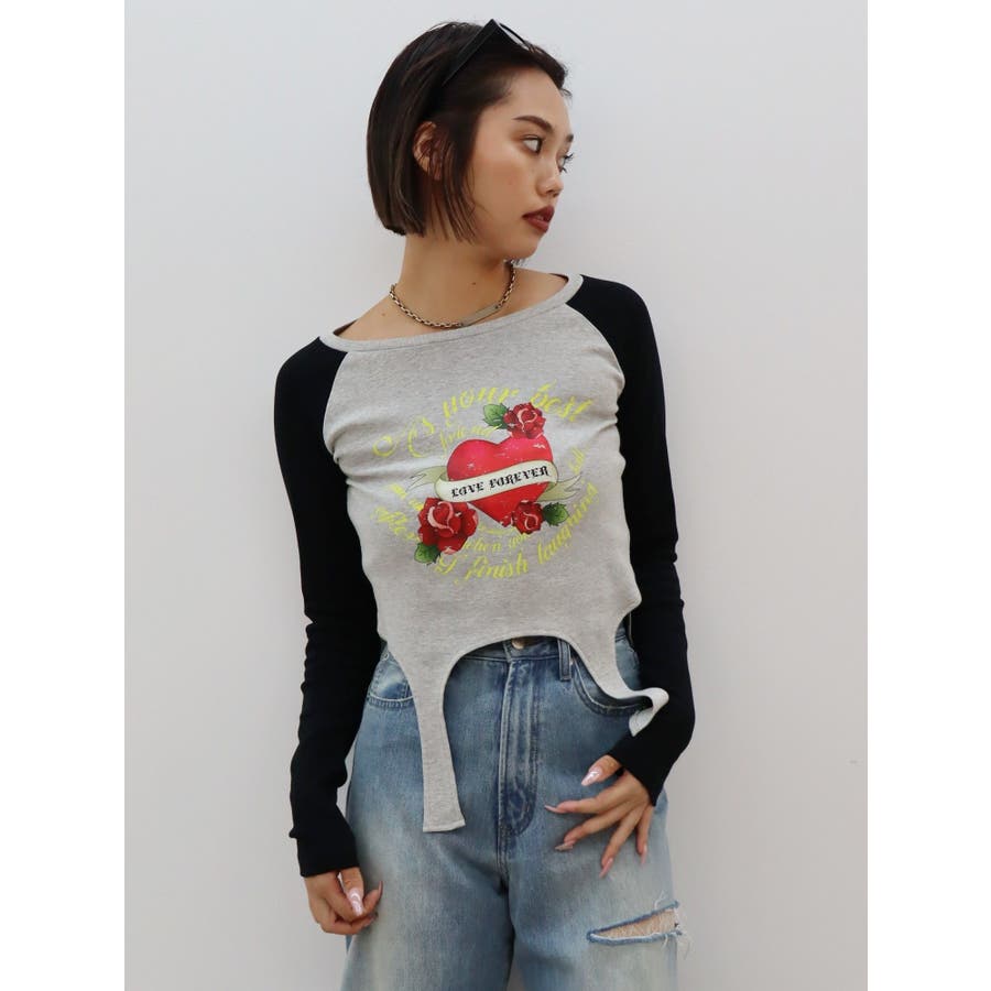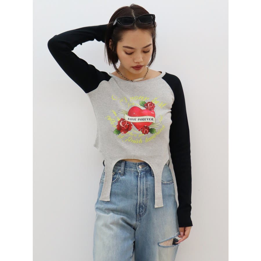 ■デザインフロントにオリジナルのグラフィックをあしらった、ガータートップスです。ちょっぴりクセのあるガーター風デザインや、かすれたような風合いのラグランなどトレンド要素が詰まった一枚。■スタイリング短丈でボトムを選ばず着れるトップス。シンプルなワイドデニムや、カーゴパンツとの合わせがおすすめです。-------------- 透け感:なし 裏地:なし 生地の厚み:普通伸縮性:なし --------------