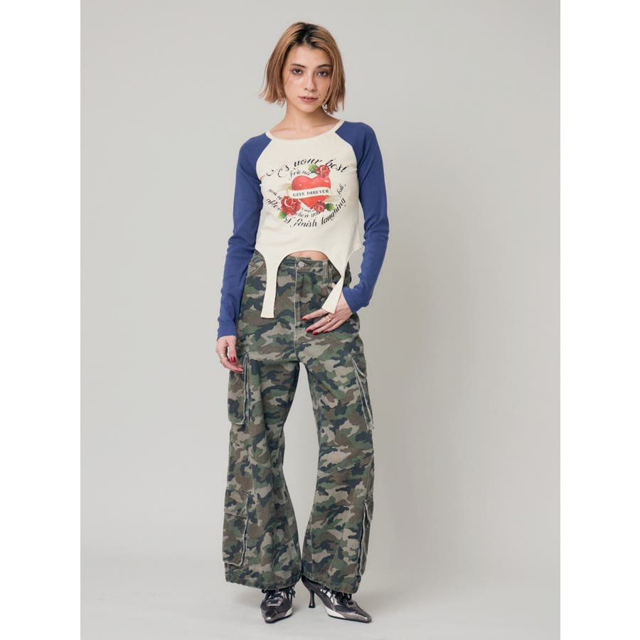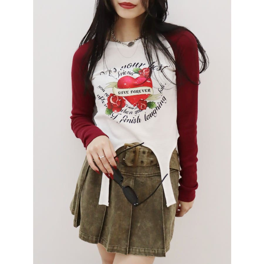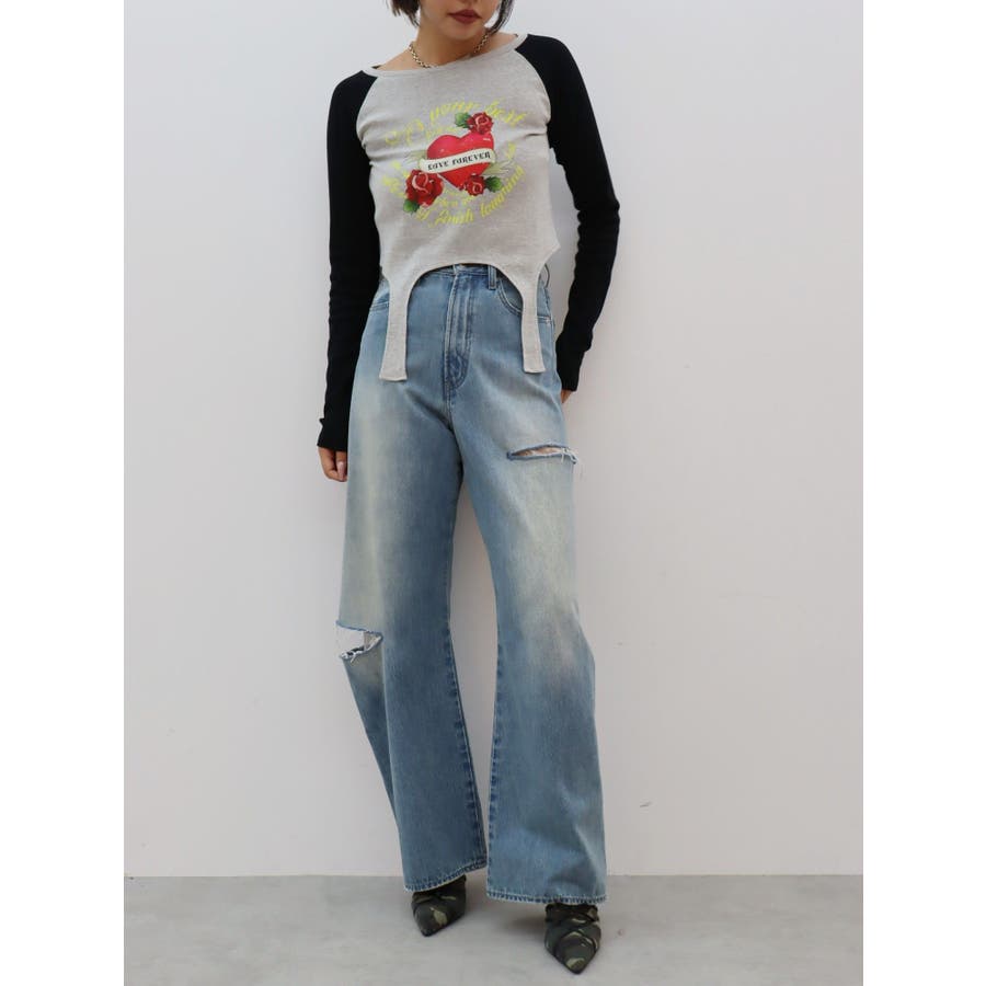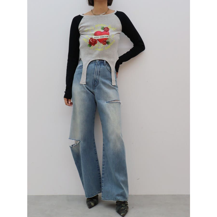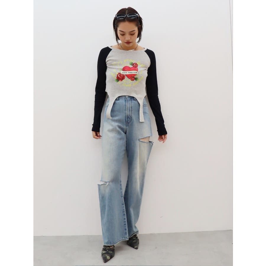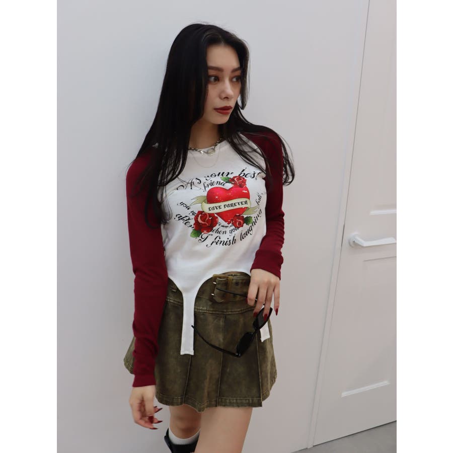 ■デザインフロントにオリジナルのグラフィックをあしらった、ガータートップスです。ちょっぴりクセのあるガーター風デザインや、かすれたような風合いのラグランなどトレンド要素が詰まった一枚。■スタイリング短丈でボトムを選ばず着れるトップス。シンプルなワイドデニムや、カーゴパンツとの合わせがおすすめです。-------------- 透け感:なし 裏地:なし 生地の厚み:普通伸縮性:なし --------------