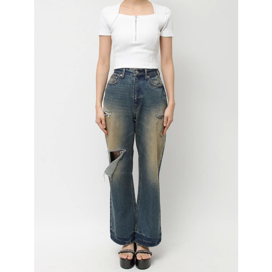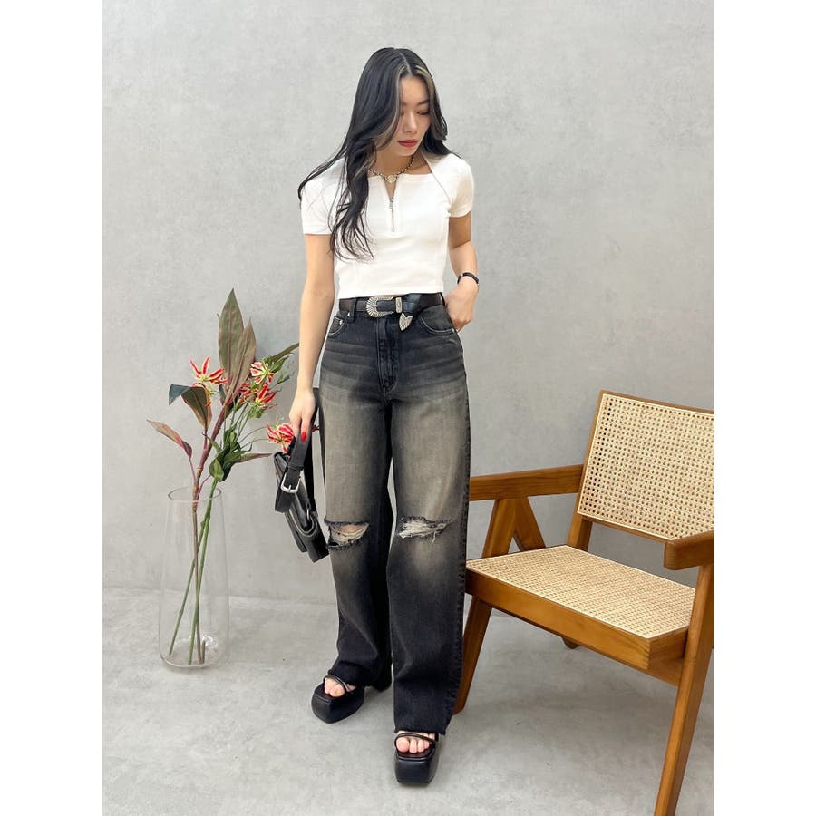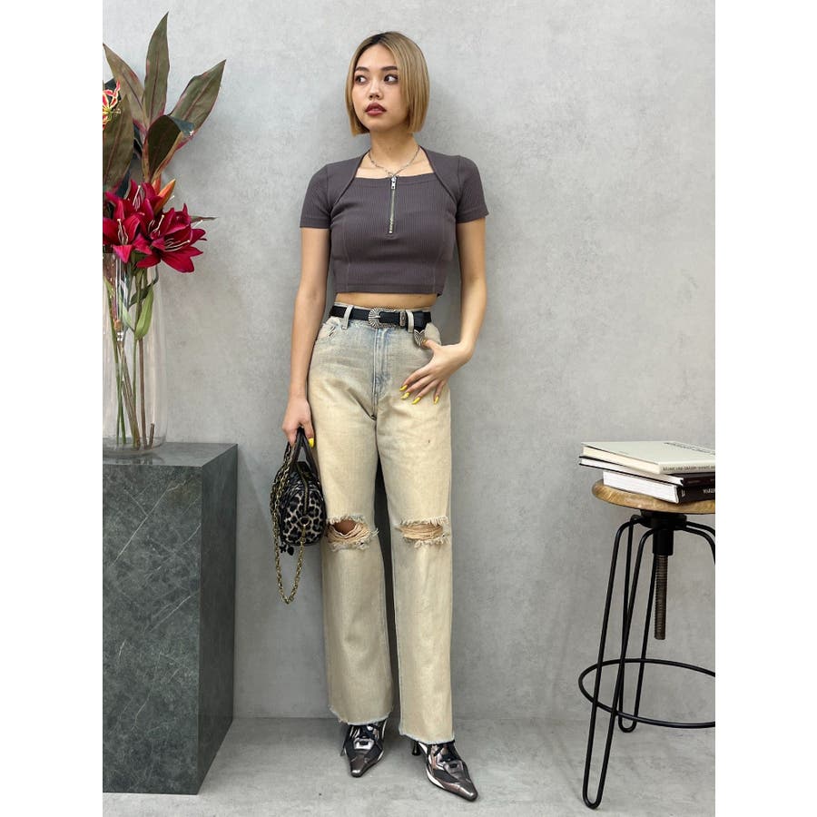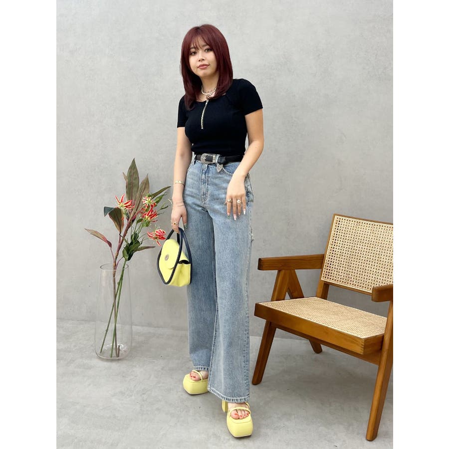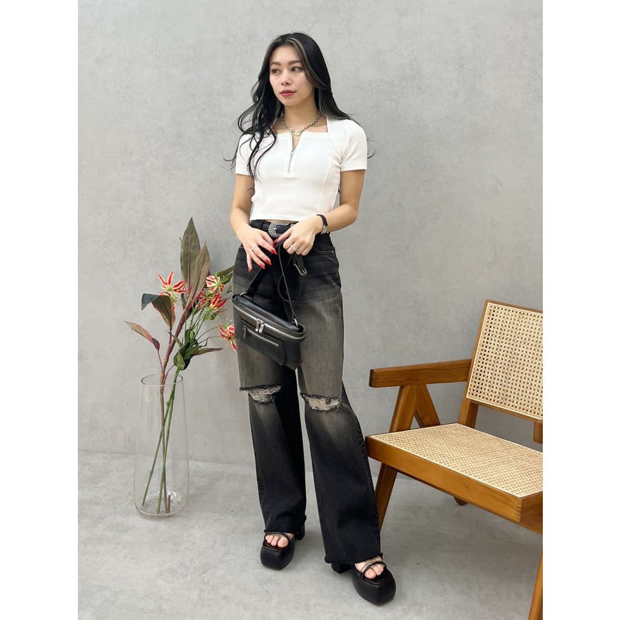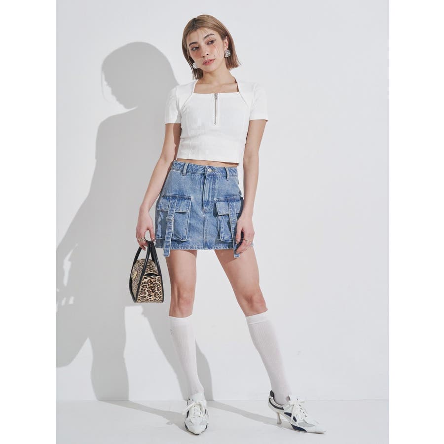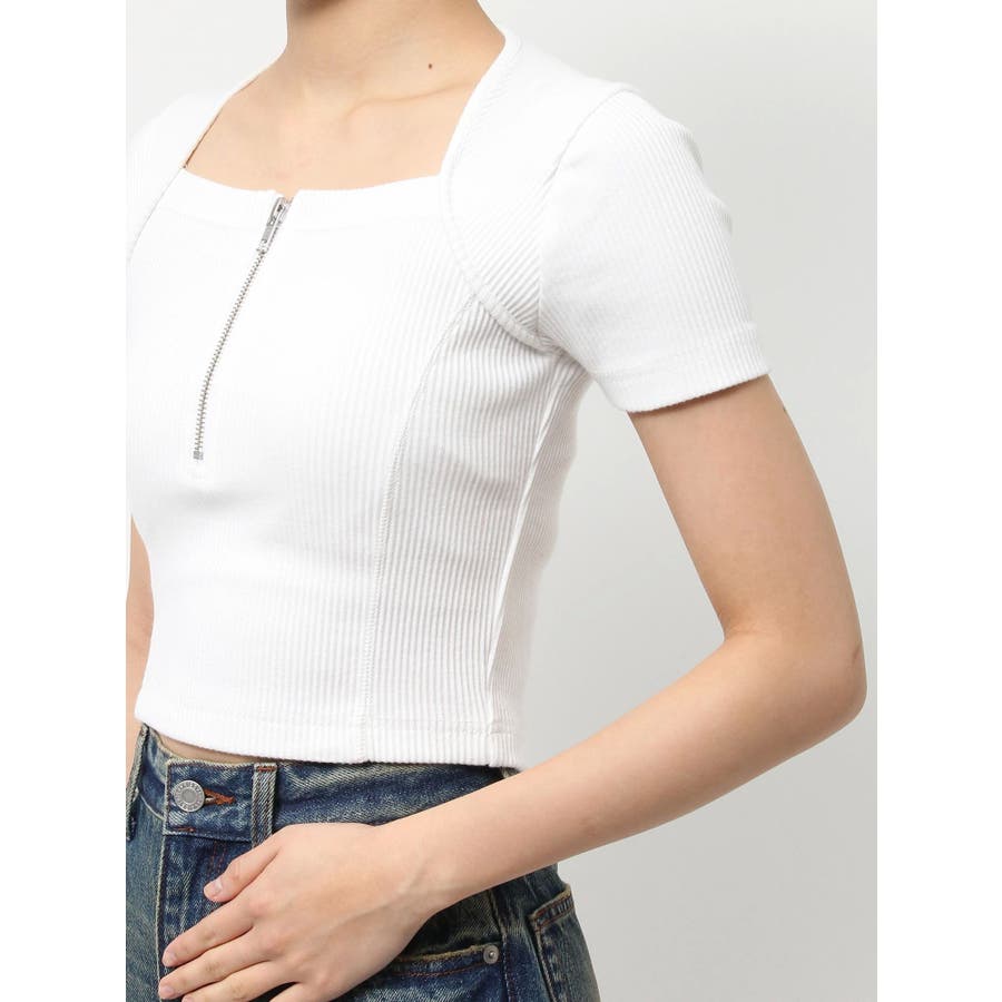 スクエアネックフロントZIPトップス