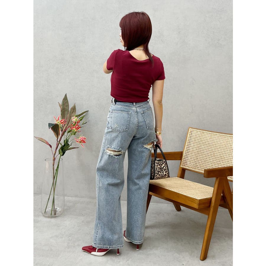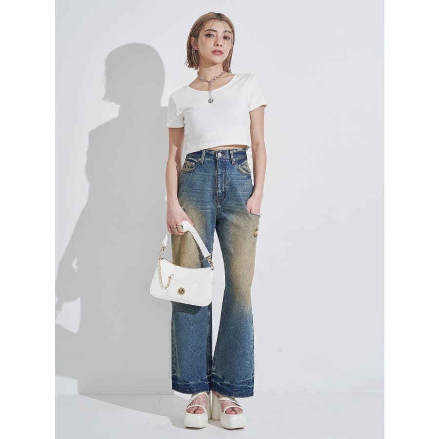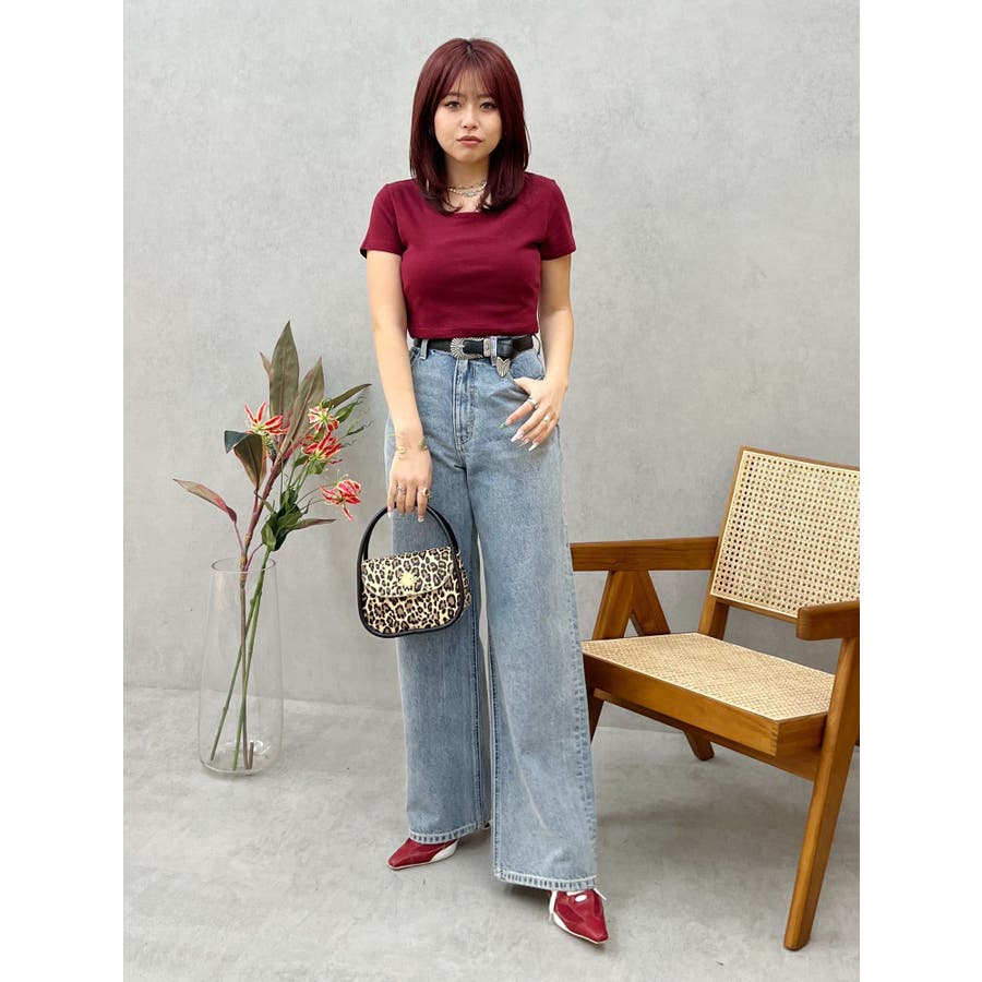 前にも同じのをかって安くなってたのでまた買いましたーシンプルで普通に可愛いです!たけも短いのでハイウェストのデニムと合わせてきてる