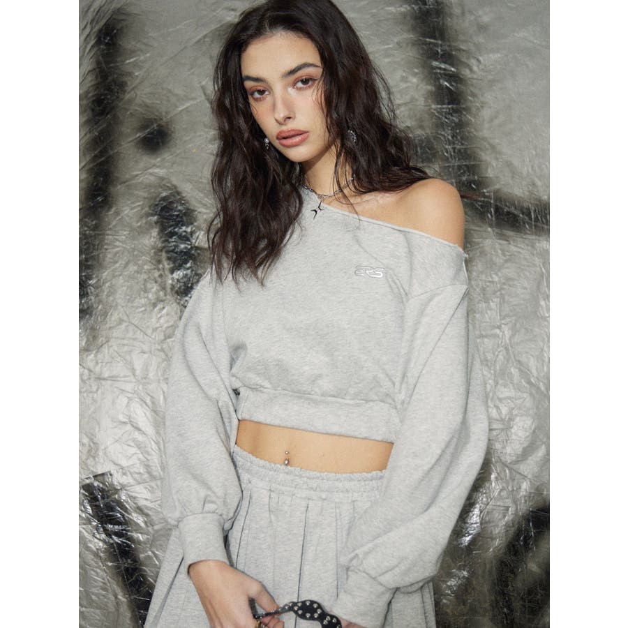 ワンショルダースウェットトップス【セットアップ着用可能】