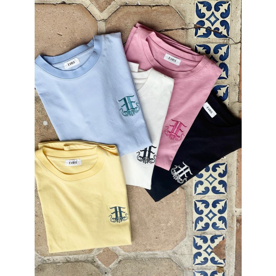 ■デザイン毎年人気のワンポイントTシャツです。今季オリジナルのワンポイントのグラフィックを使用しています。夏らしい鮮やかなカラバリも魅力です。EVRIS定番のBIG Tシャツよりも少し小さめのすっきりとしたサイズ感にしているため、幅広いスタイリングにお使いいただけます。■スタイリング小柄な方ではワンピース風にも。スッキリとしたシルエットでデニムやロングスカートにも綺麗に収まります。--------------透け感:なし裏地:なし生地の厚み:普通伸縮性:なし--------------