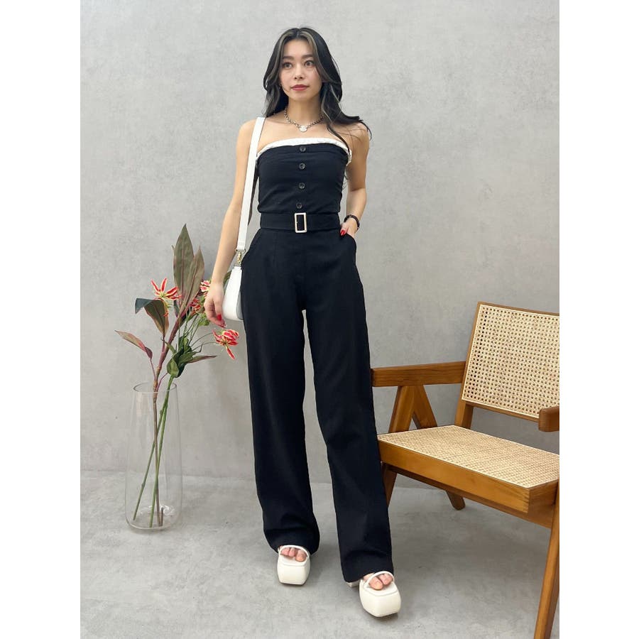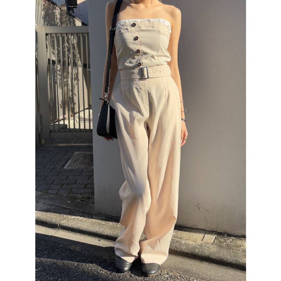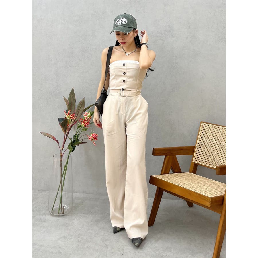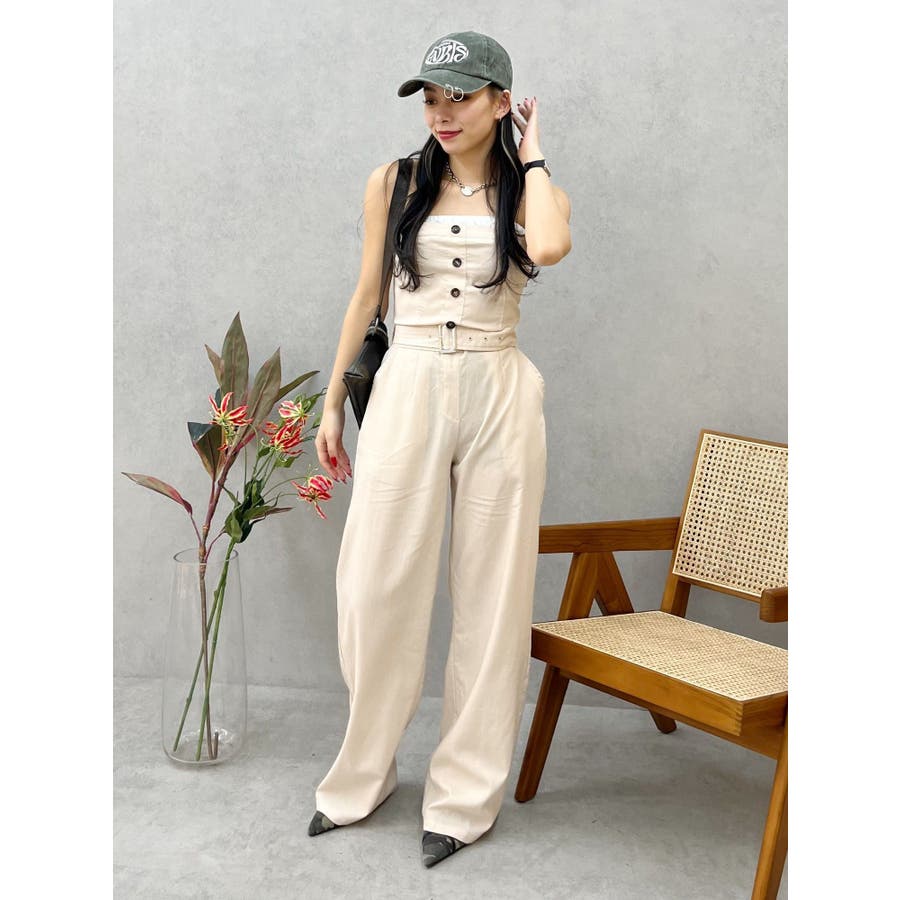腰の位置を高く設定しているため脚長効果抜群。スタイルアップが叶う一枚です。