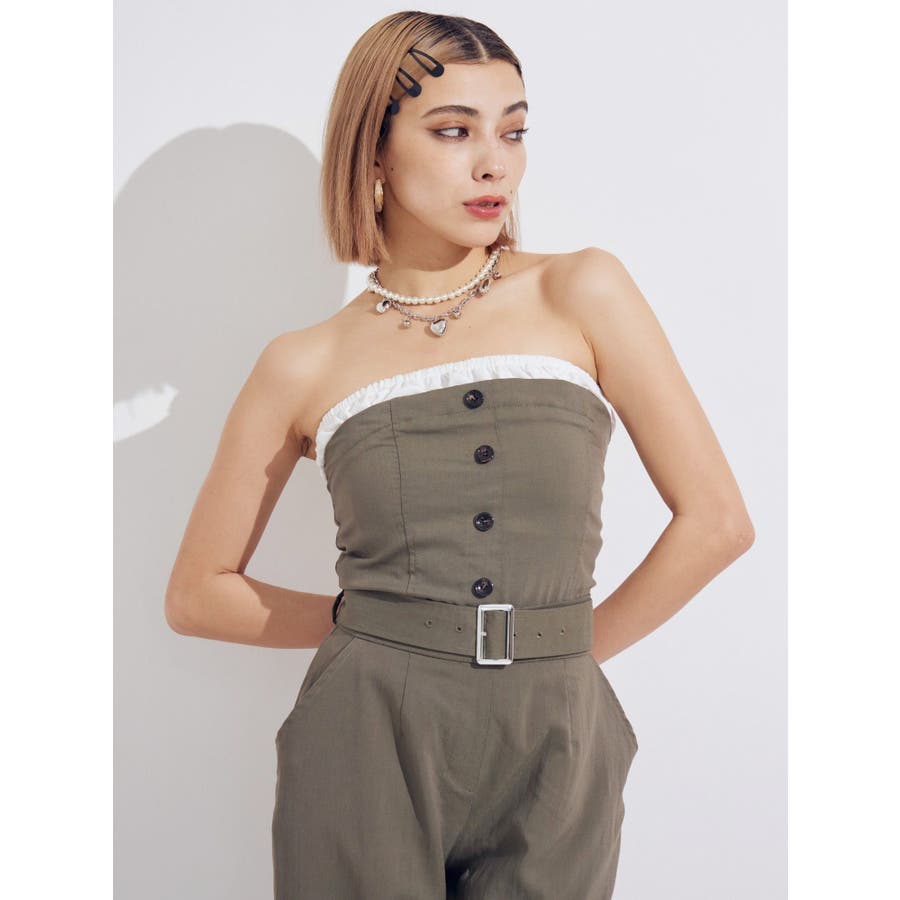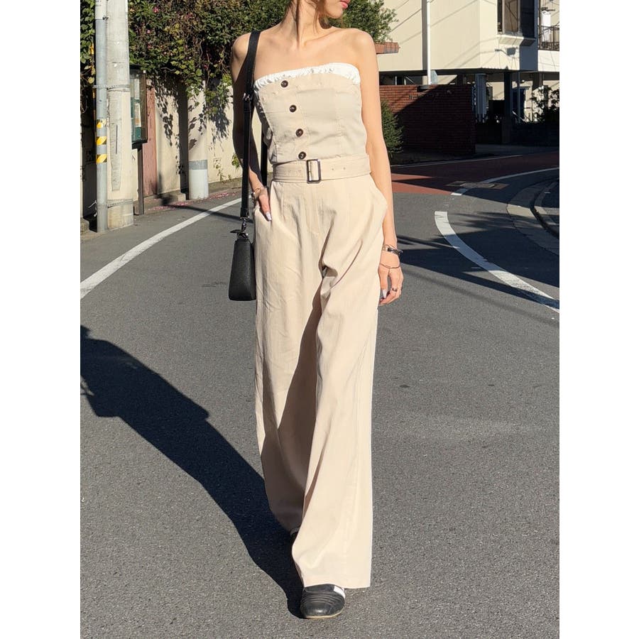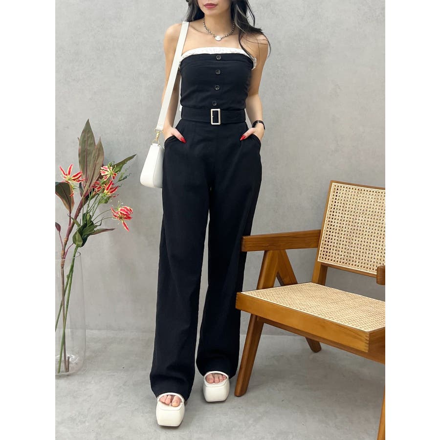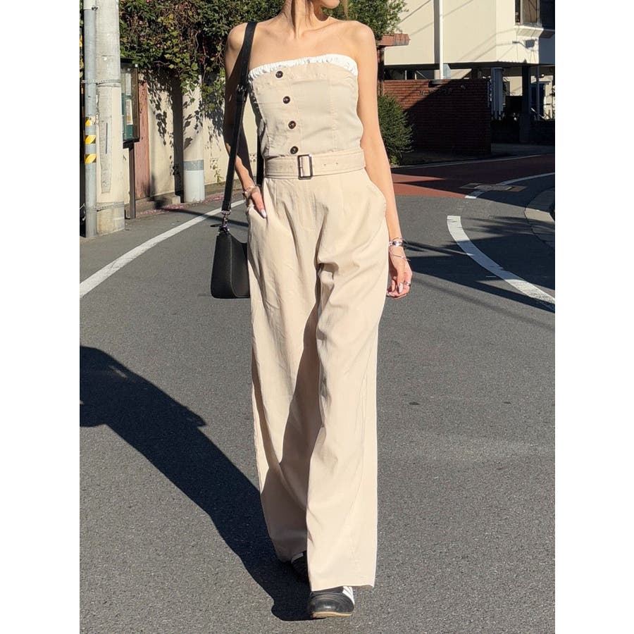 腰の位置を高く設定しているため脚長効果抜群。スタイルアップが叶う一枚です。