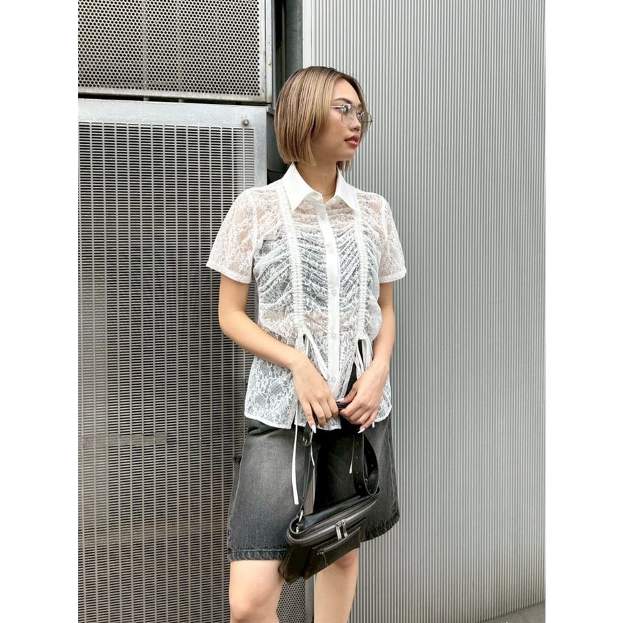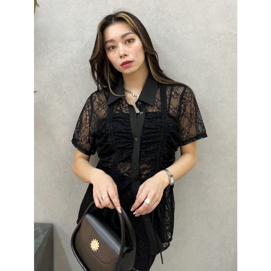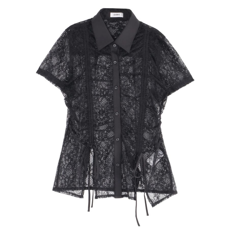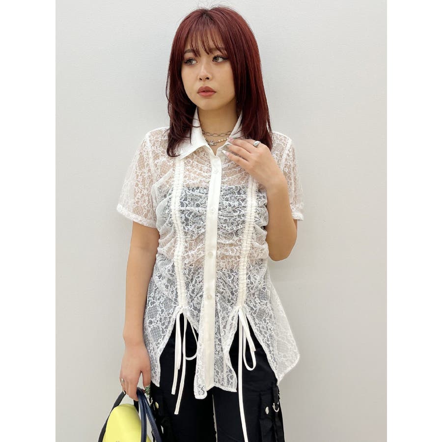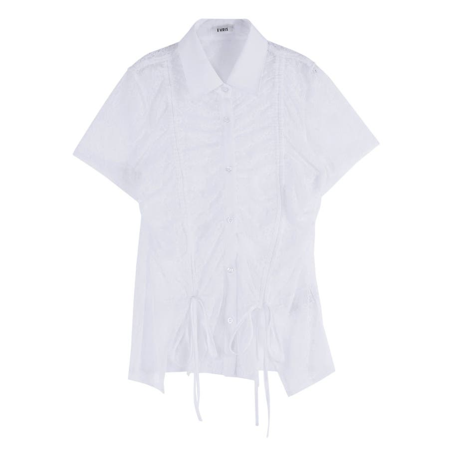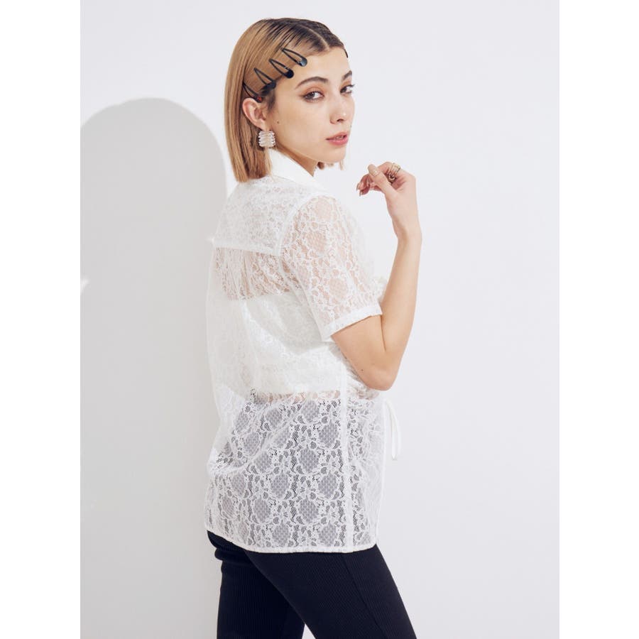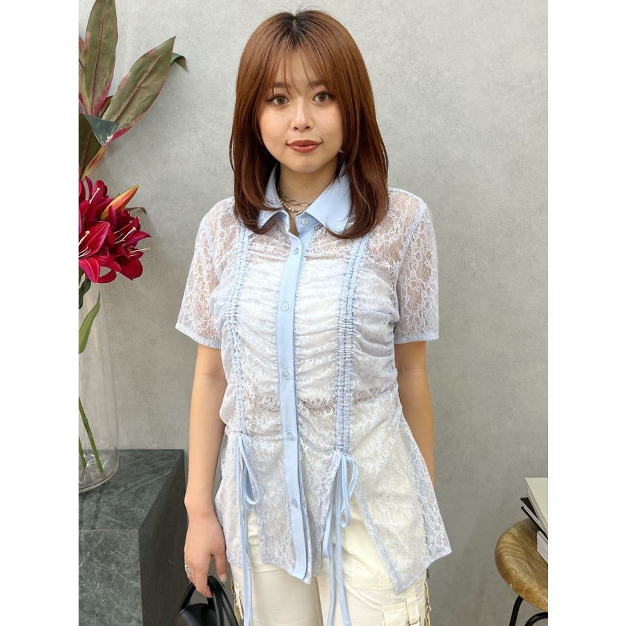 フロントのドロストがポイントのレース生地を使用したシアーシャツ。