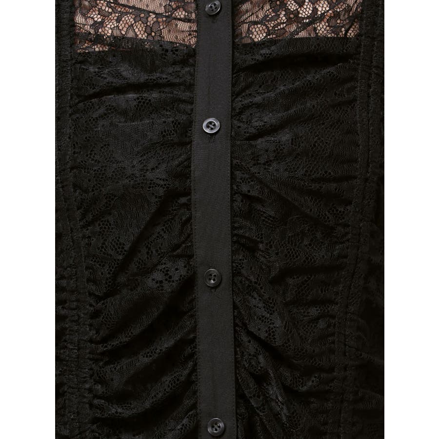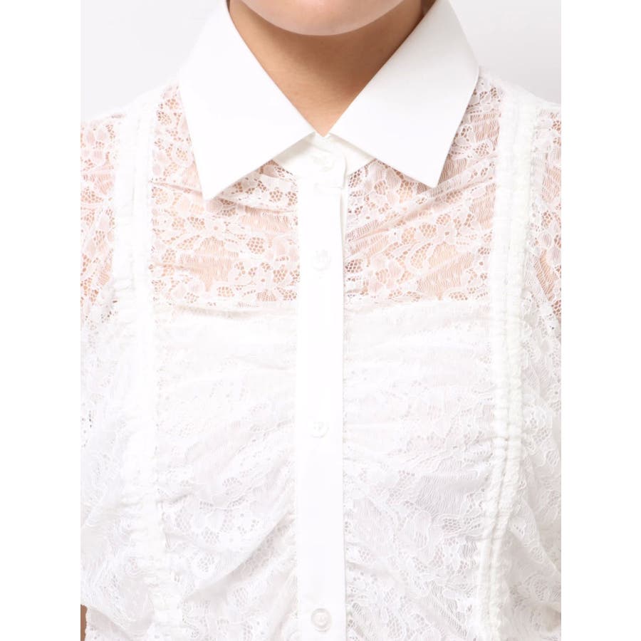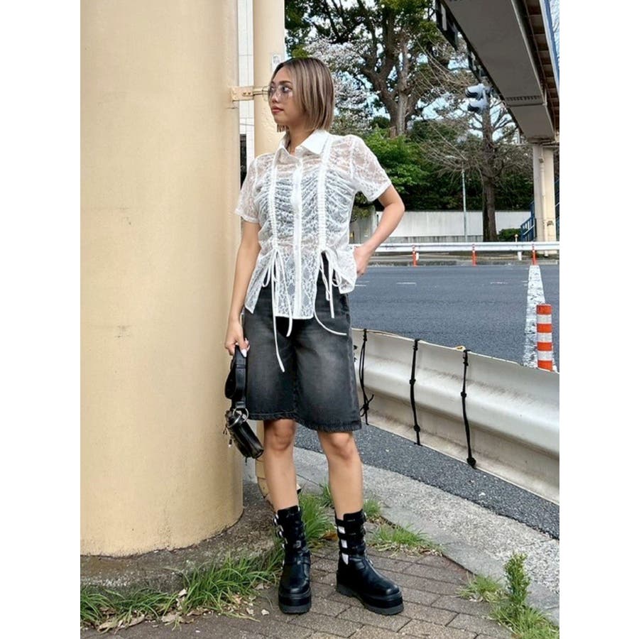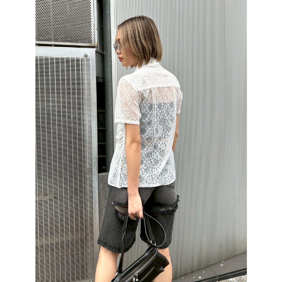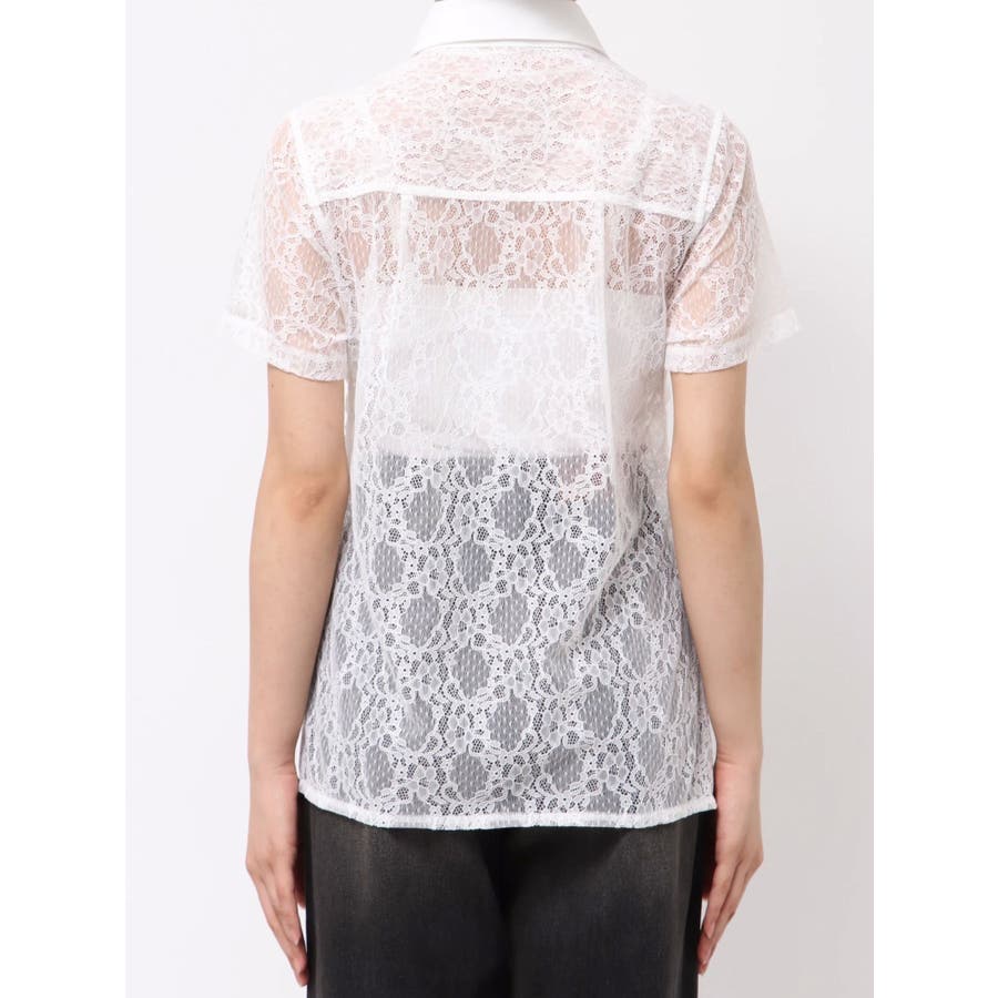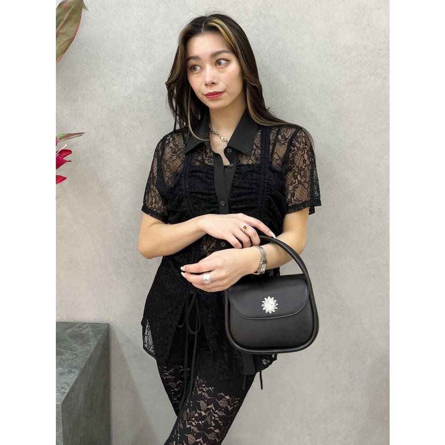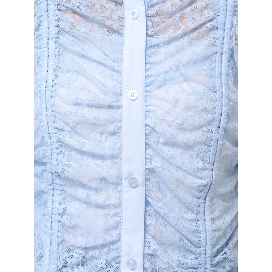 フロントのドロストがポイントのレース生地を使用したシアーシャツ。
