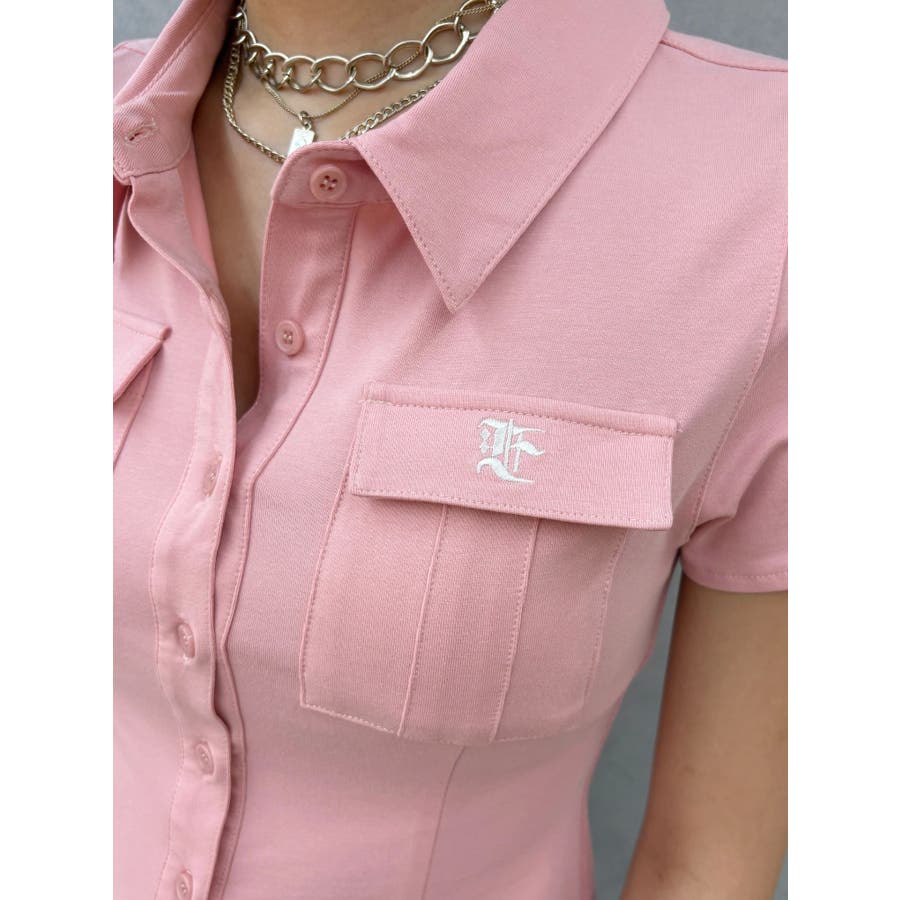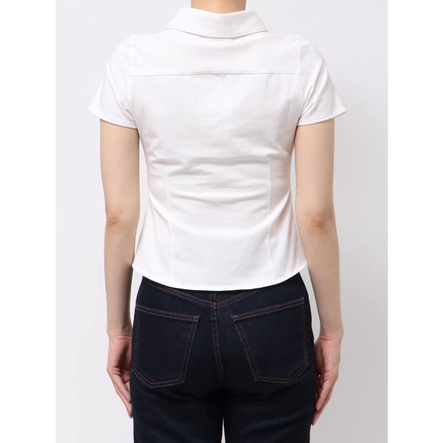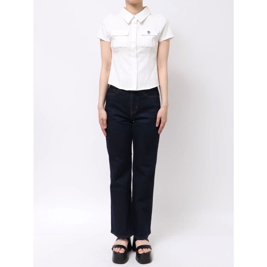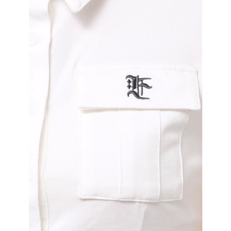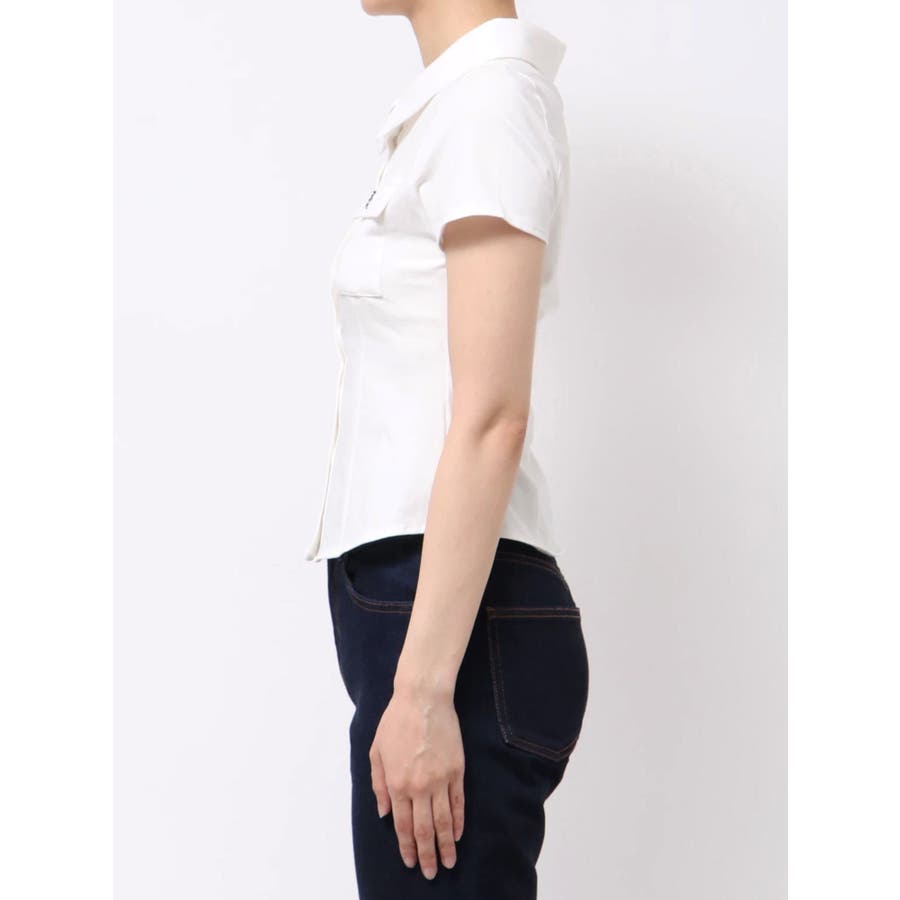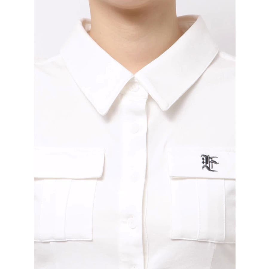 ■デザイン ウエストをシェイプさせたデザインがポイントのカットソーです。 タイトなシルエットですがカットソー生地を使用しているためストレッチ性があり着心地の良い一枚です。 ポケットのフラップ部分にはオリジナルの刺繍を施しています。 ■スタイリング タイトながら裾がやや広がっているシルエットなのでストレートパンツや、フレアパンツなどとの合わせがおすすめです。 -------------- 透け感:なし 裏地:なし 生地の厚み:普通 伸縮性:あり --------------