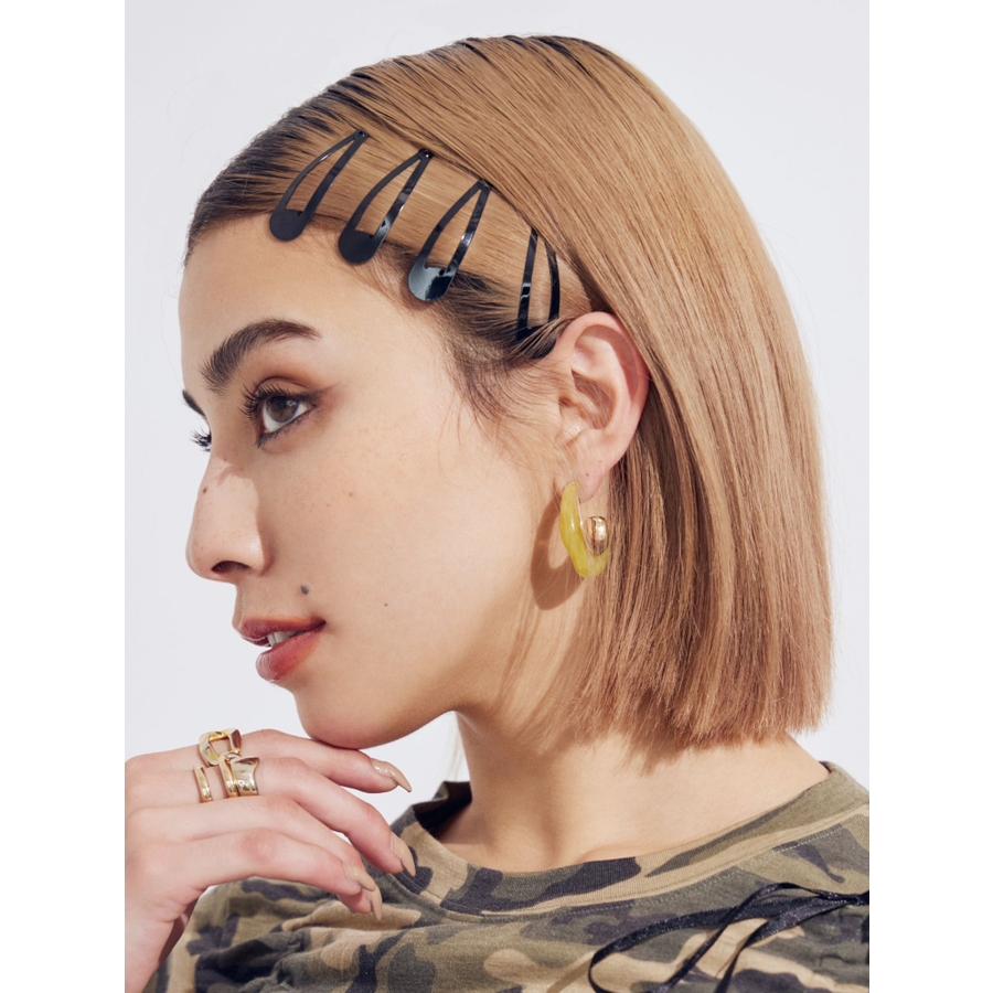 カラーシェルがポイントのピアスです。華奢なサイズ感なので、どんなコーデにも合わせやすく、カラーシャルが夏らしい印象を与えてくれます。