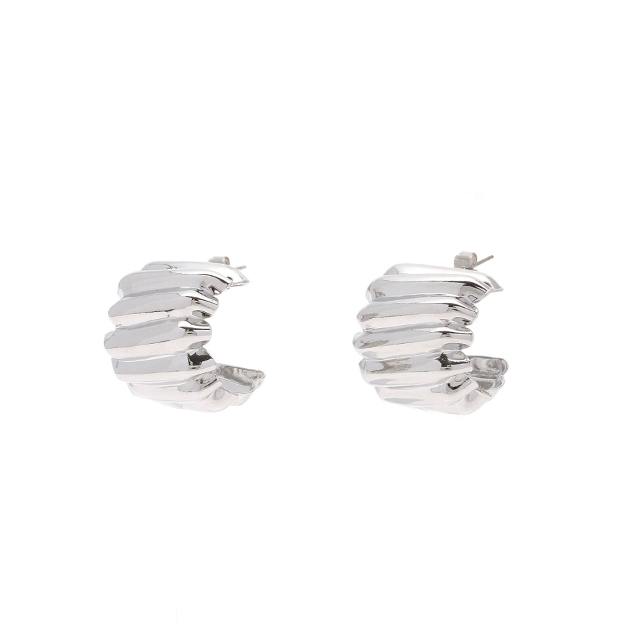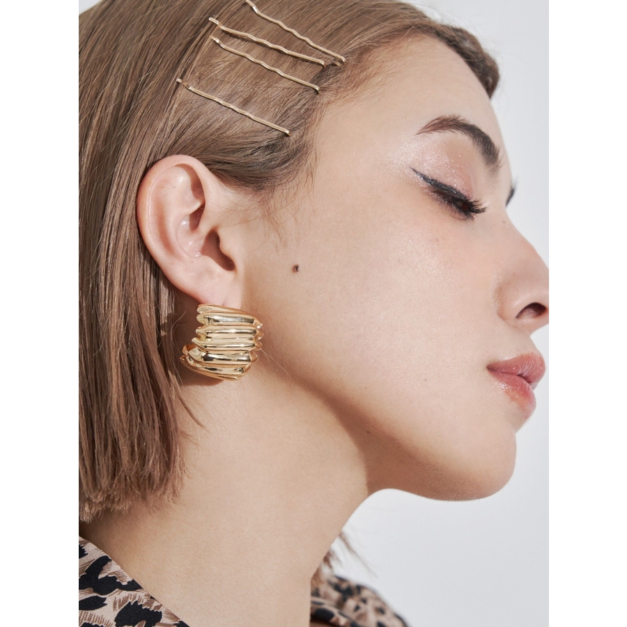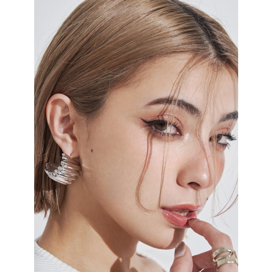 表面感がウェーブがかったデザインがインパクトのあるピアスです。光沢感もあり存在感のあるピアスで、耳元を華やかにしてくれます。