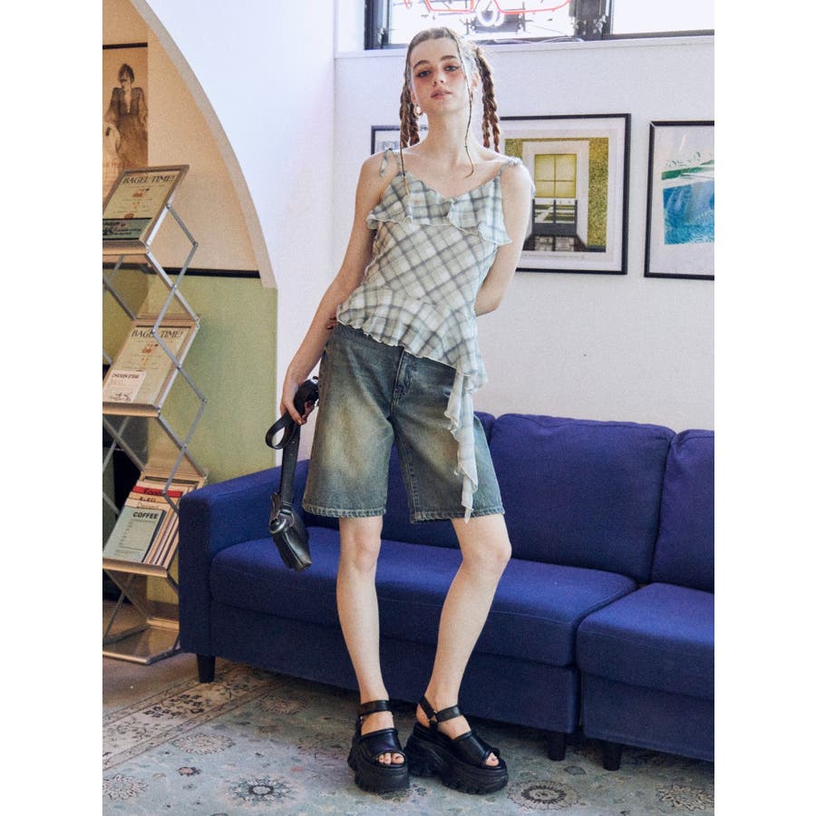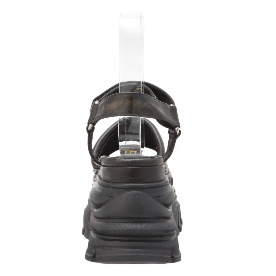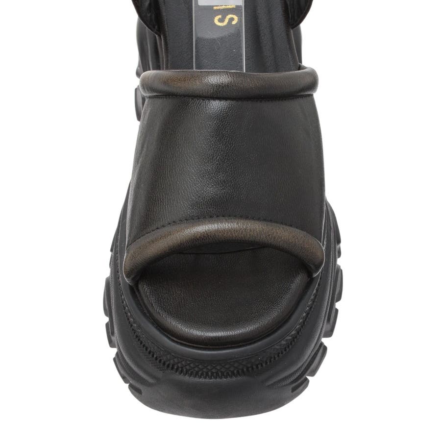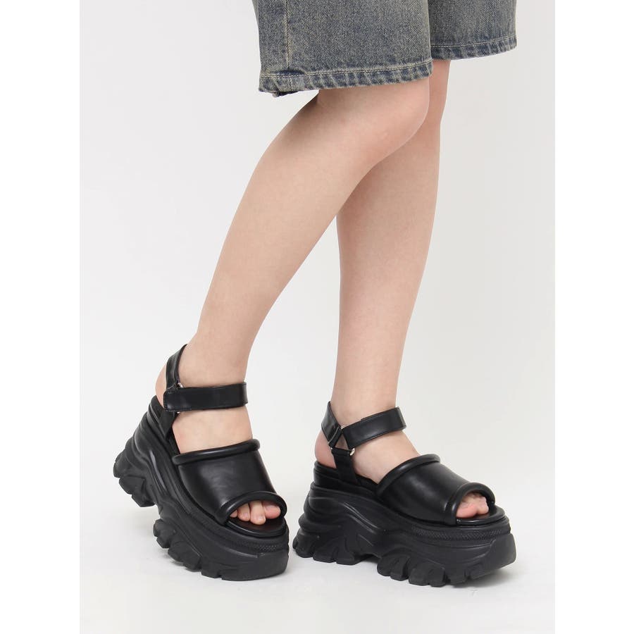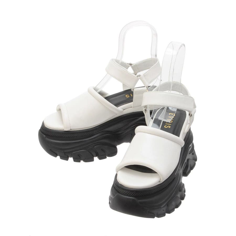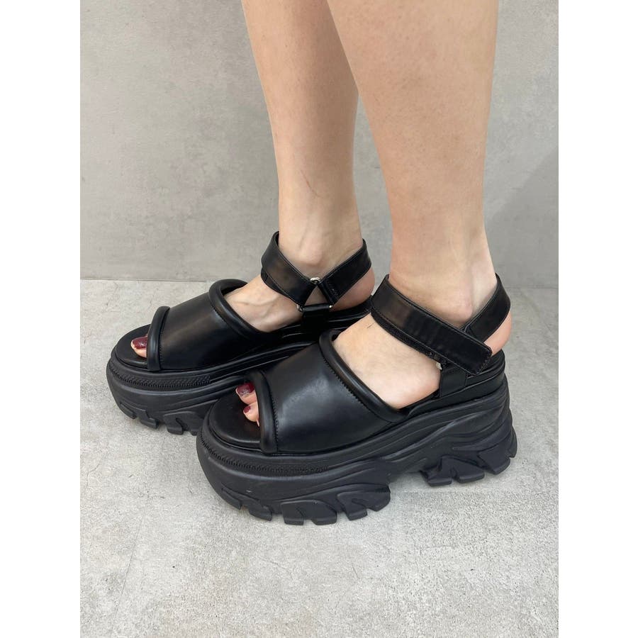 EVRIS(エヴリス)らしいしっかりと厚みのあるスニーカーソールを使用したサンダルです。前後の高低差があまりないため、高さはありますが履き心地が良いです。ブラウンはヴィンテージ感のある加工を施し、あえて色ムラを出しています。