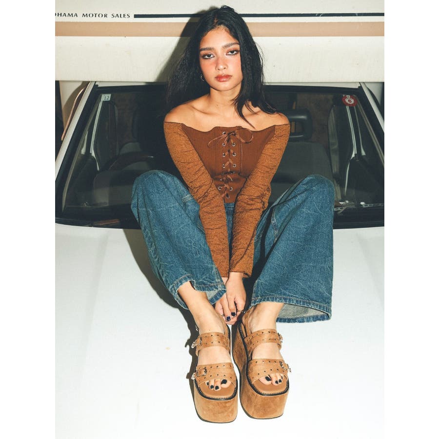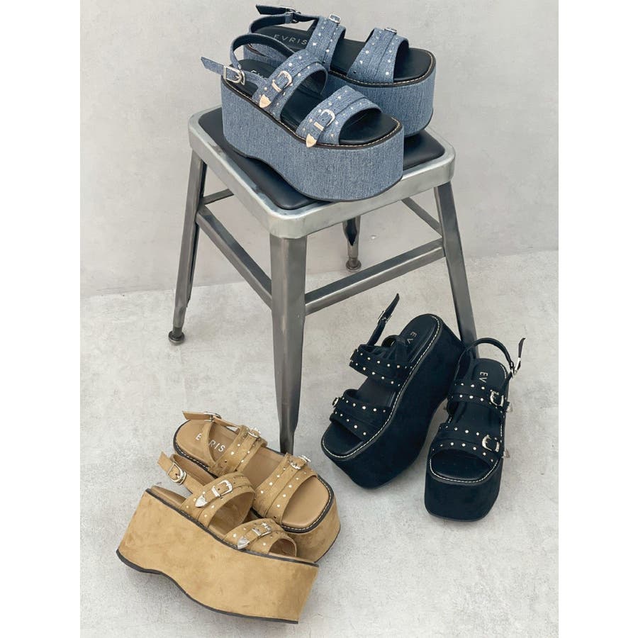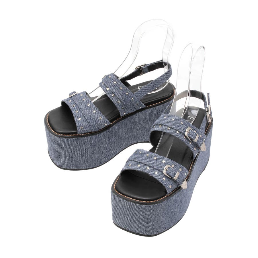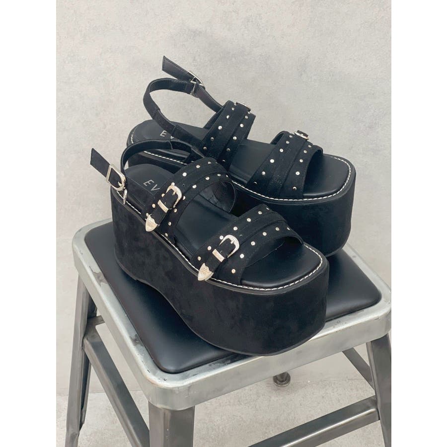 スタッズとバックルデザインがポイントの厚底サンダルです。