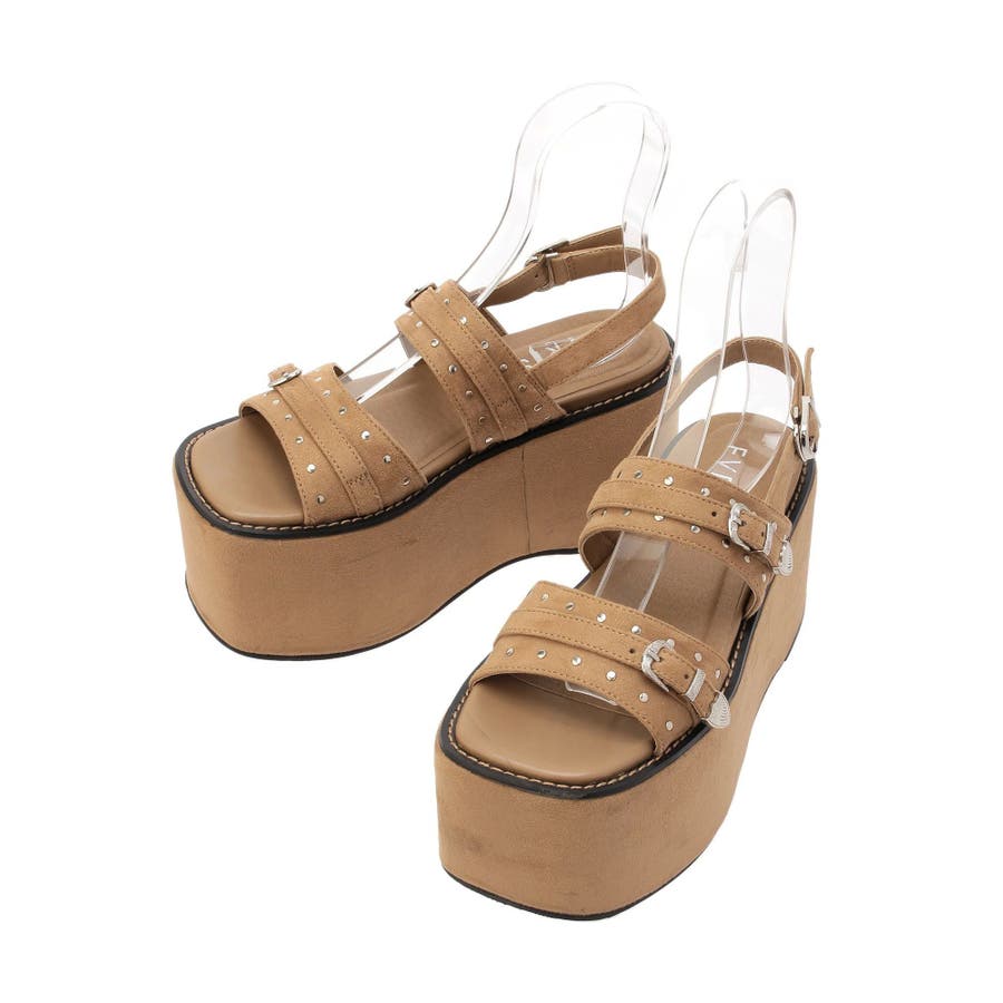 厚底スタッズモチーフプラットフォームサンダル