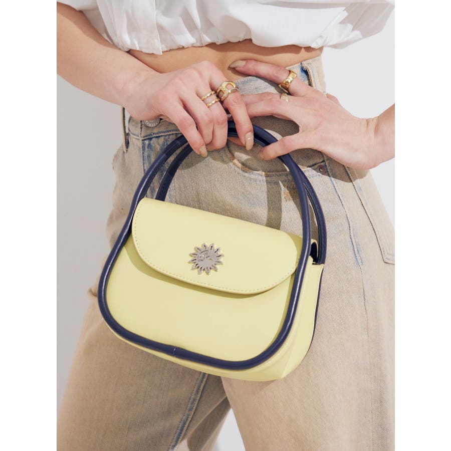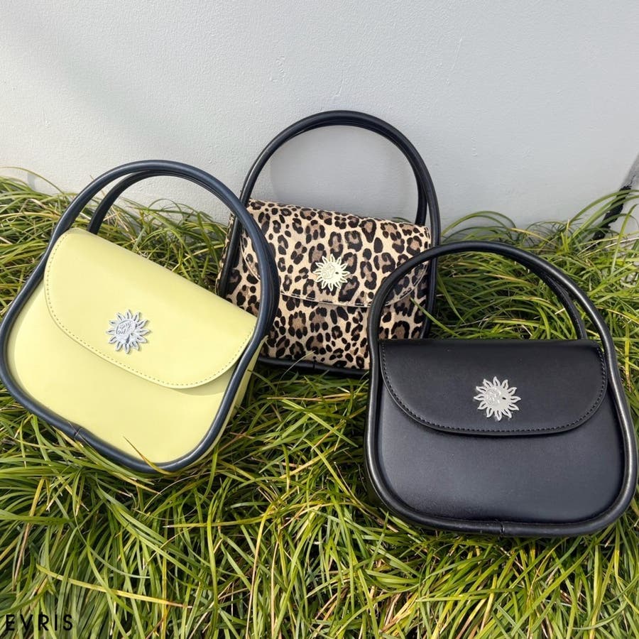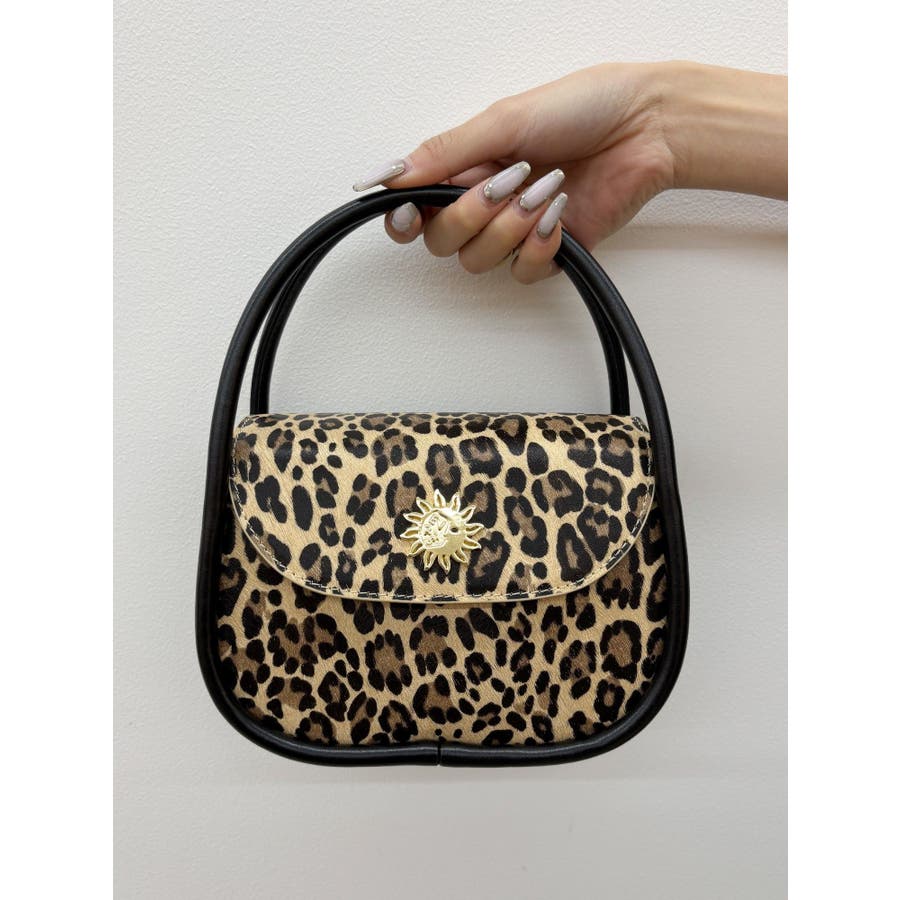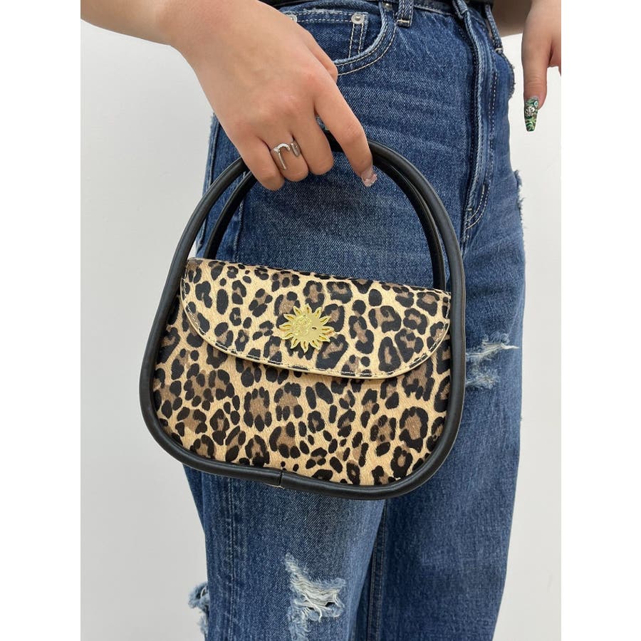 10代 20代 ハンドバッグ コンパクト オケージョン シンプル レオパード ヒョウ柄 ワンポイント トレンドカラー バターイエロー