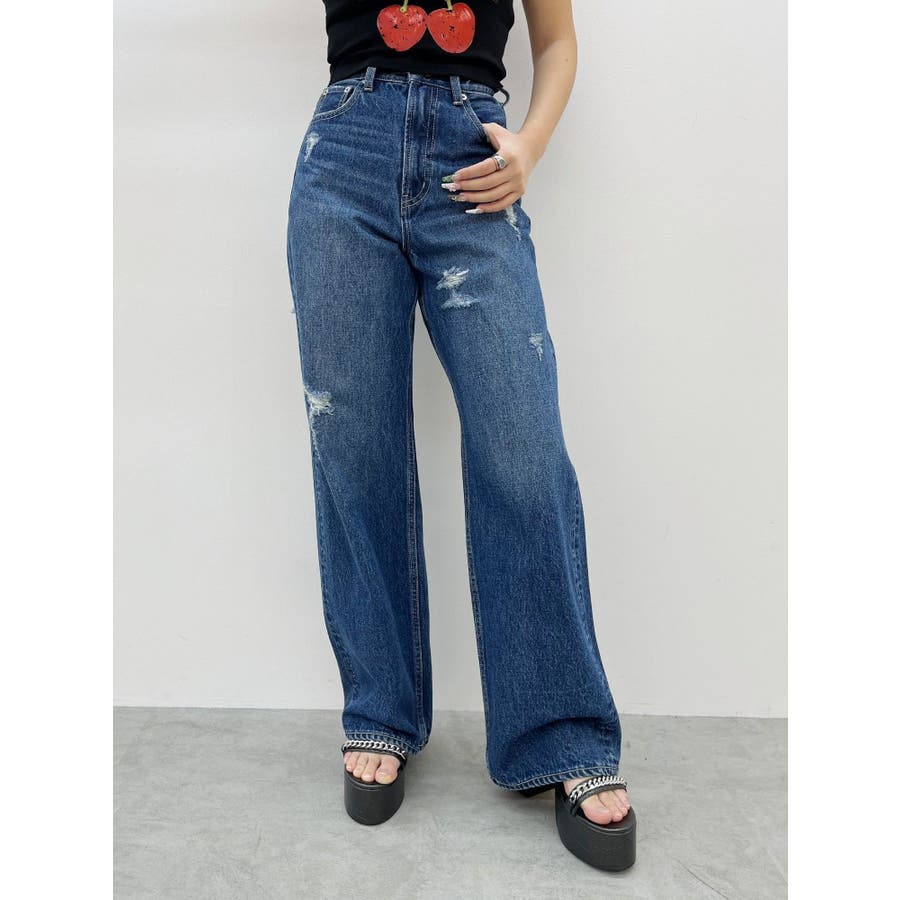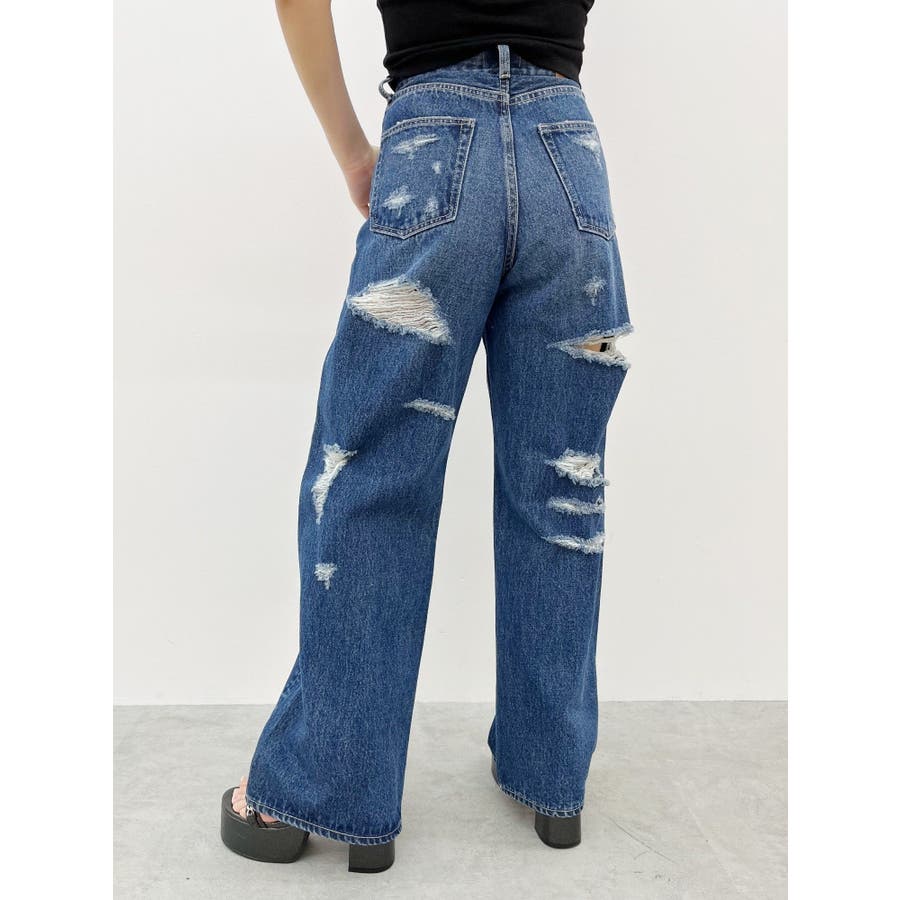 【ブルー】オーバークラッシュワイドデニムパンツ