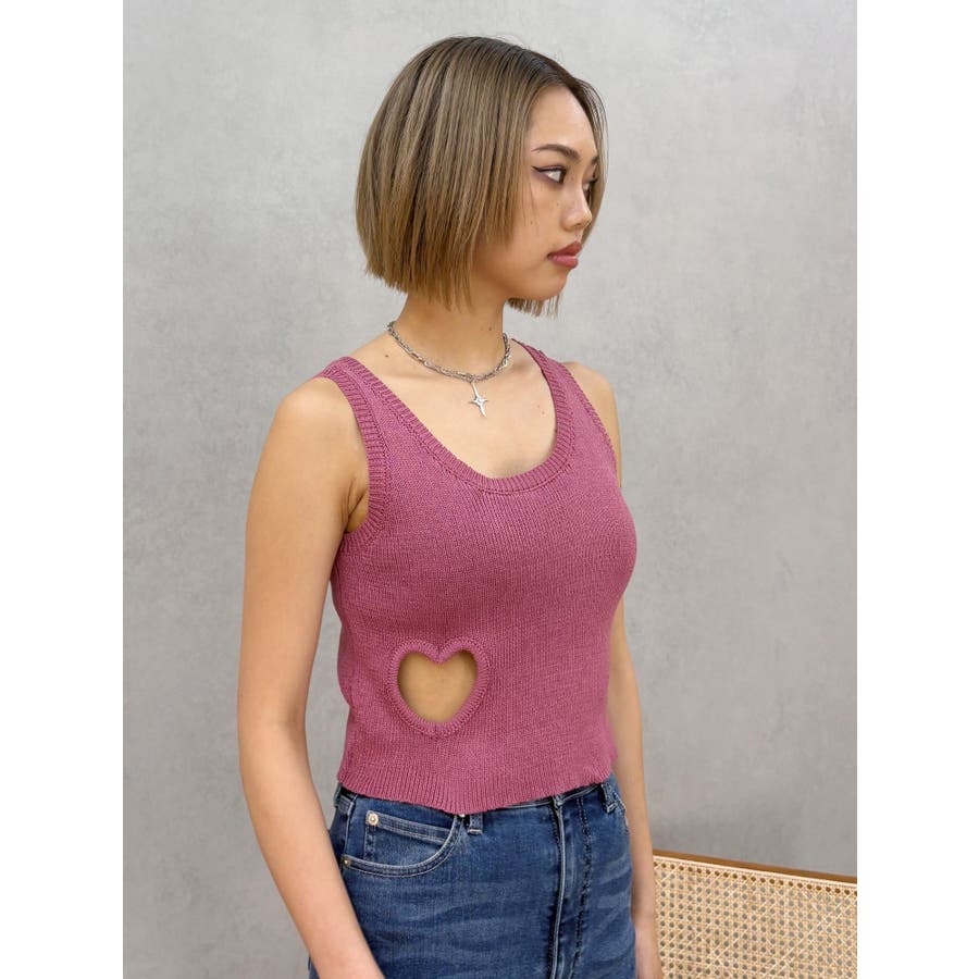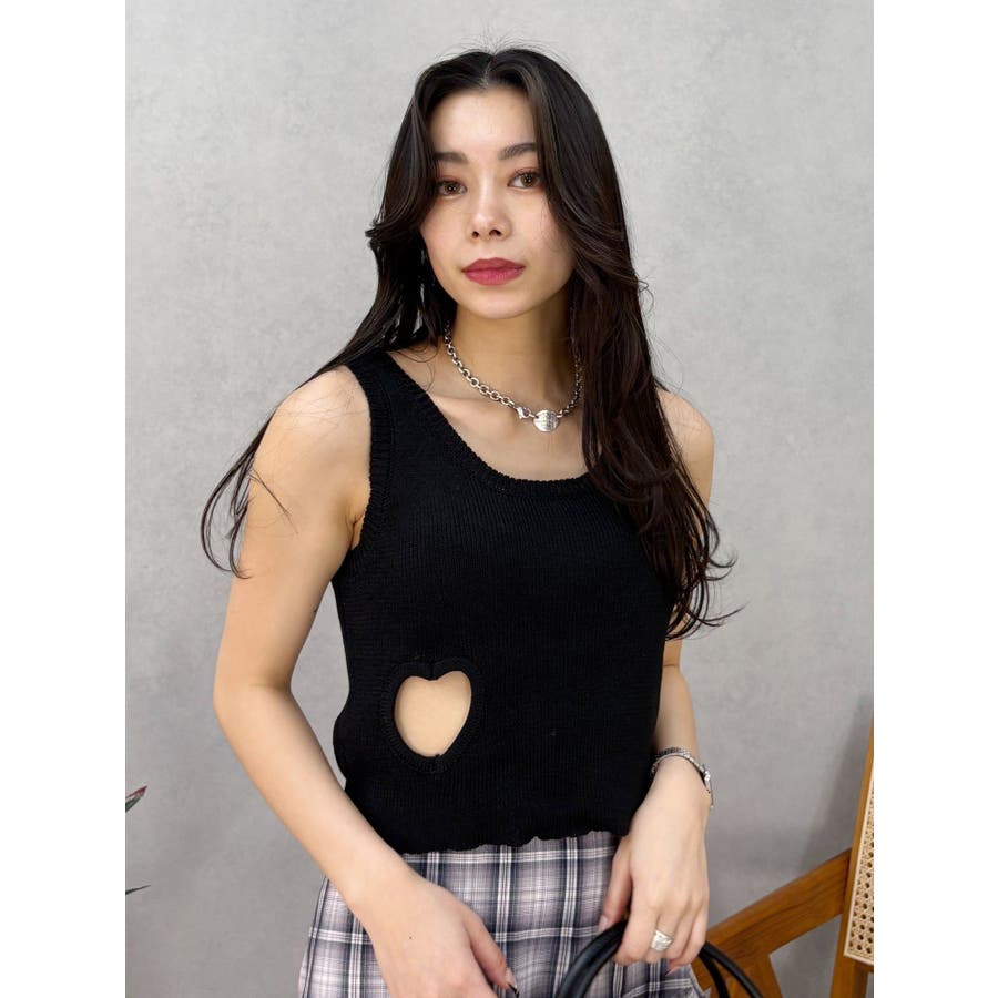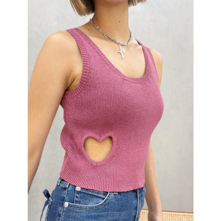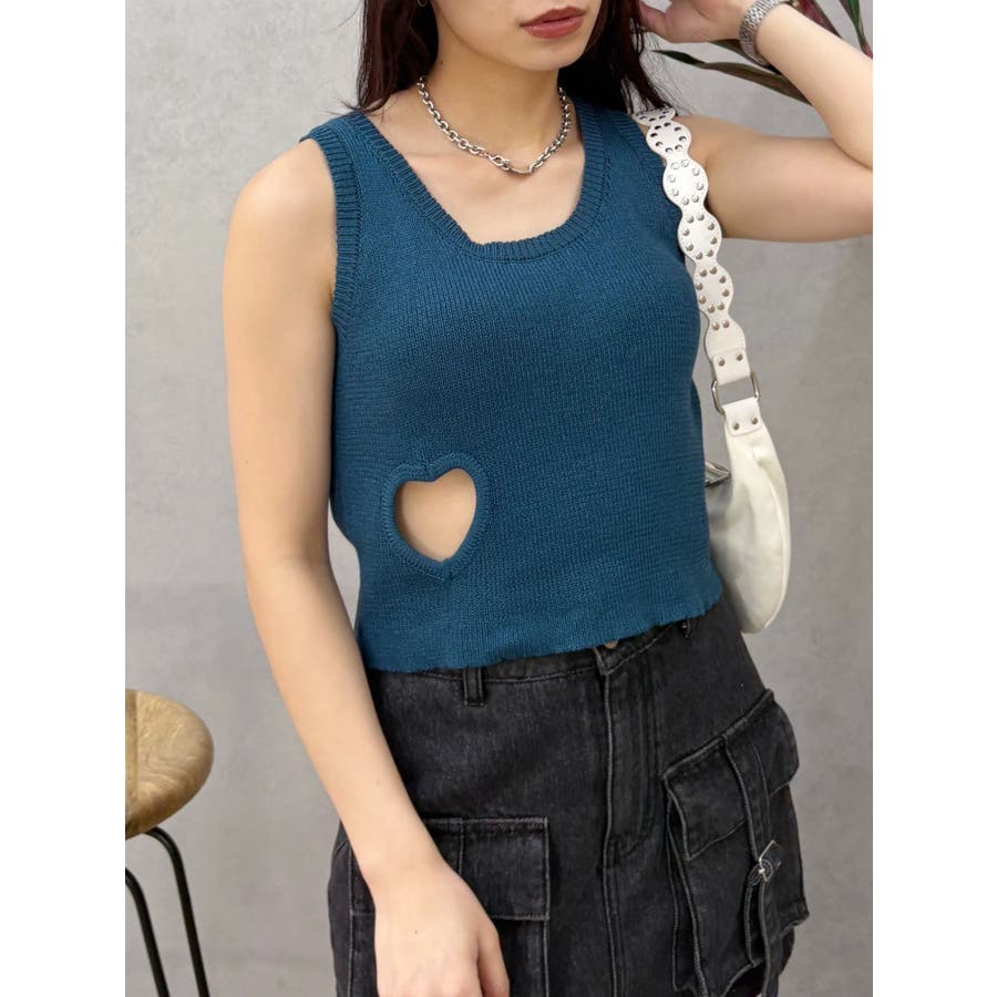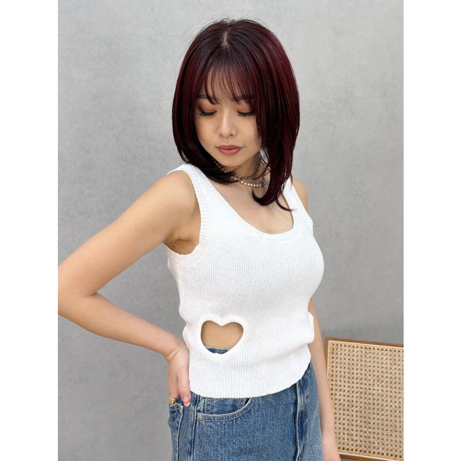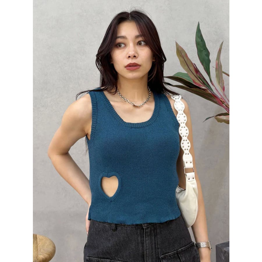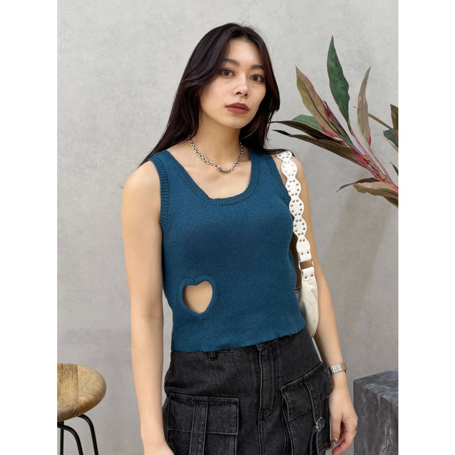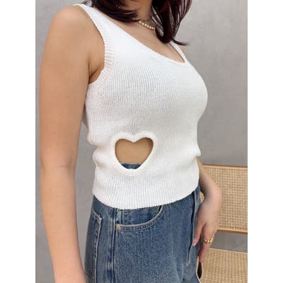 ■デザインウエスト部分にハートカッティングデザインの入ったニットタンクトップ。レイヤードしてインナー見せしても可愛いデザインがポイント。さらっとした生地感でサマーニット、スプリングニットとして着用頂けます◎■スタイリングニットタンク、クロップド丈で、カジュアルなデニムはもちろんスカートや様々なボトムスとの相性が抜群◎--------------透け感:なし裏地:なし生地の厚み:普通伸縮性:あり--------------