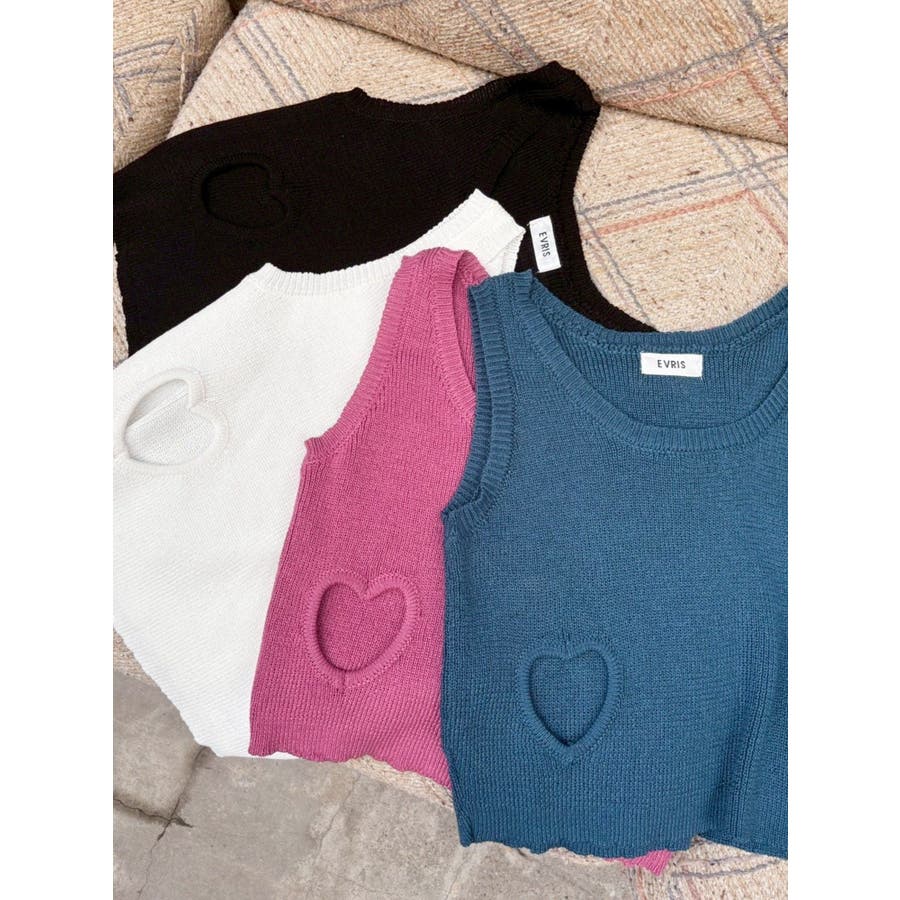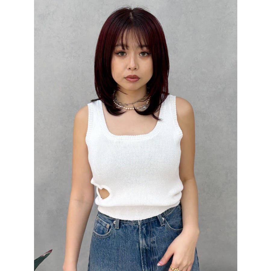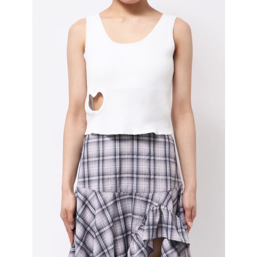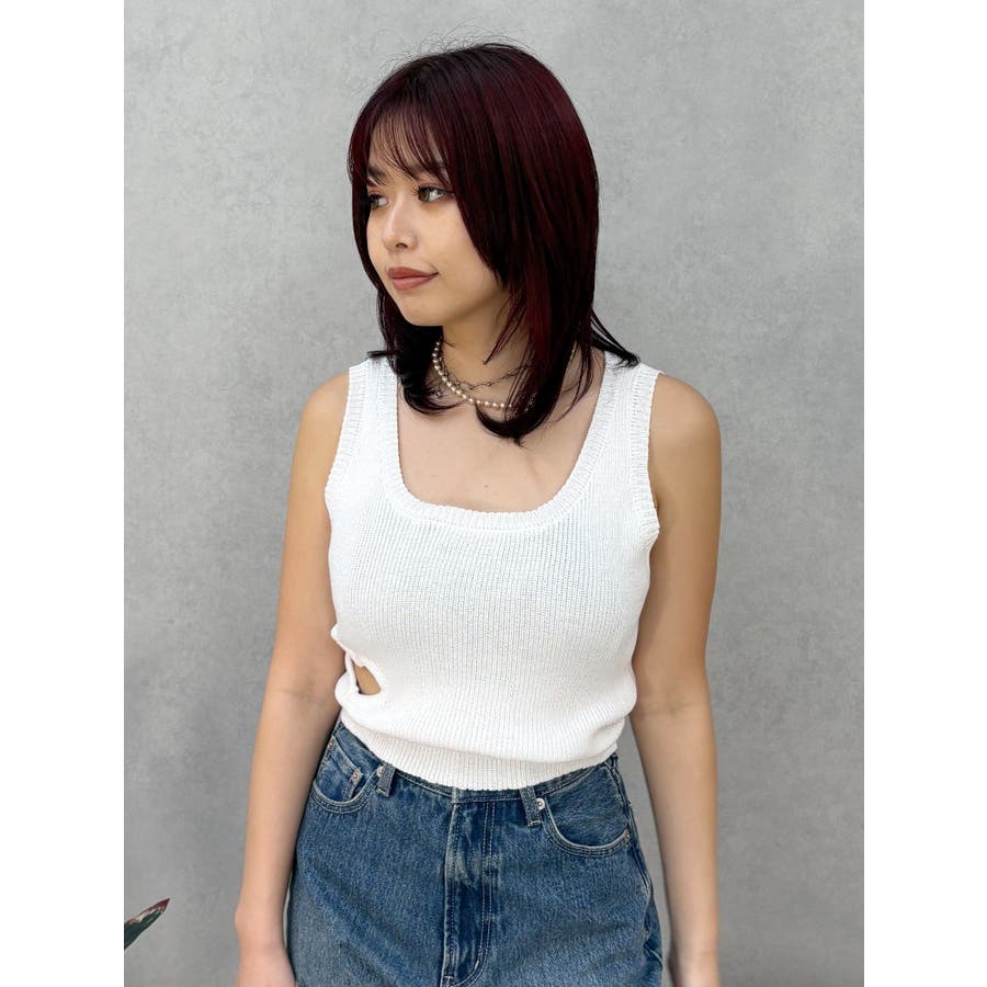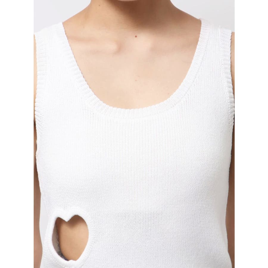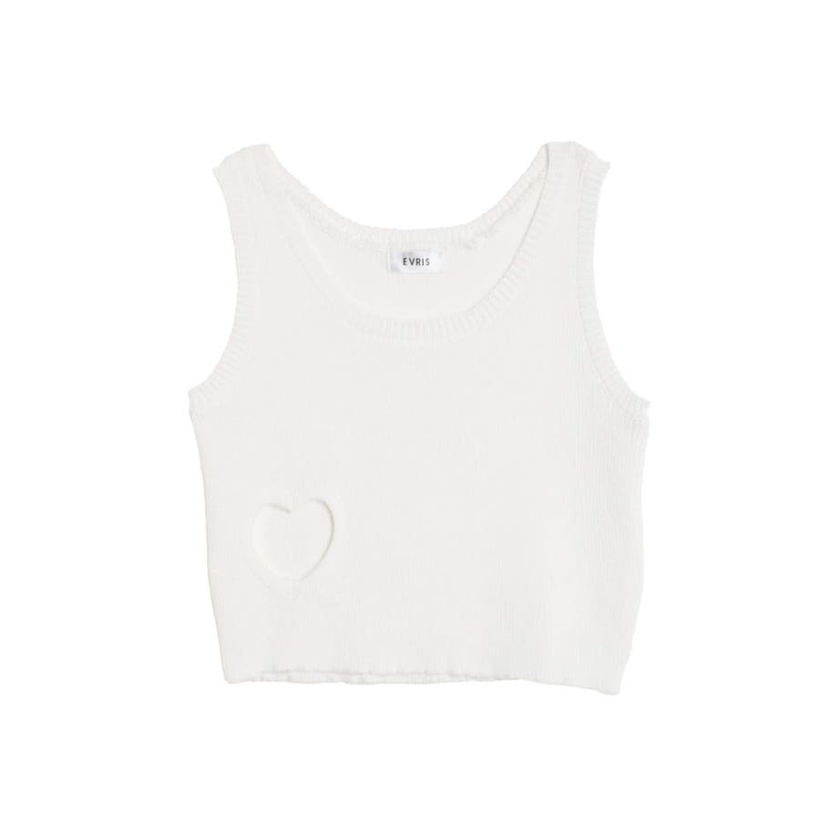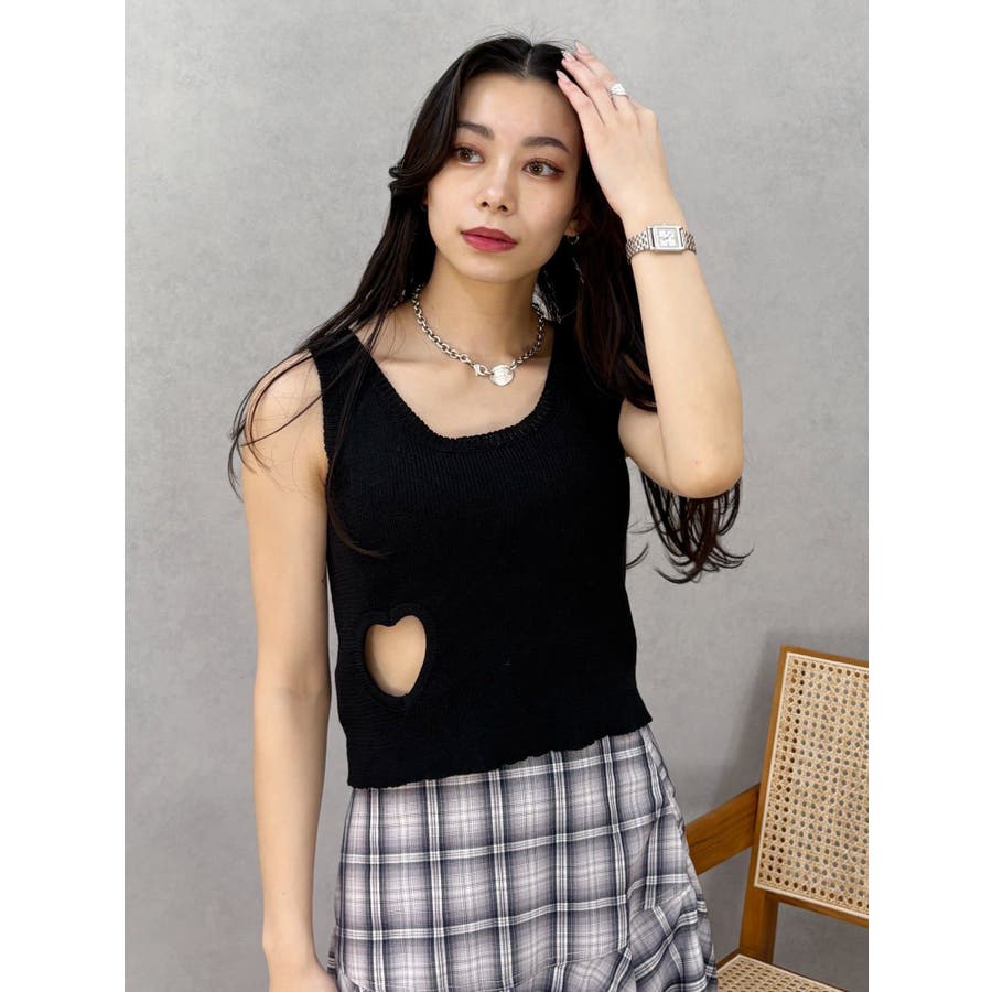 ■デザインウエスト部分にハートカッティングデザインの入ったニットタンクトップ。レイヤードしてインナー見せしても可愛いデザインがポイント。さらっとした生地感でサマーニット、スプリングニットとして着用頂けます◎■スタイリングニットタンク、クロップド丈で、カジュアルなデニムはもちろんスカートや様々なボトムスとの相性が抜群◎--------------透け感:なし裏地:なし生地の厚み:普通伸縮性:あり--------------