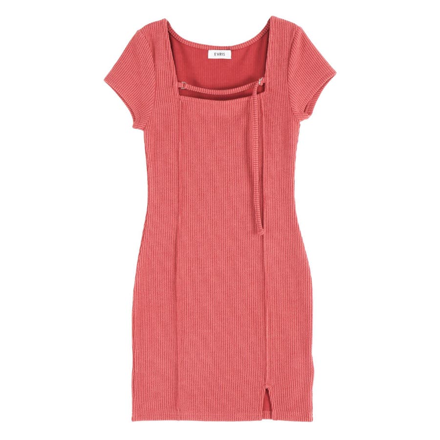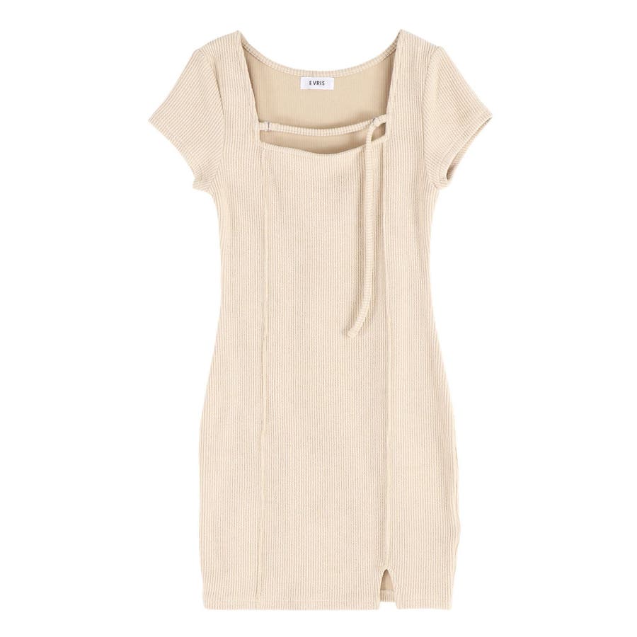 EVRISで人気のカットミニワンピースの半袖バージョンです。二の腕がスッキリ見えるようにフレンチスリーブにしており、ボディはピッタリとしたサイズ感でスタイルアップ効果のあるミニワンピースです。生地がしっかりしているので下着ラインを拾わずにさらっと着用していただけます。