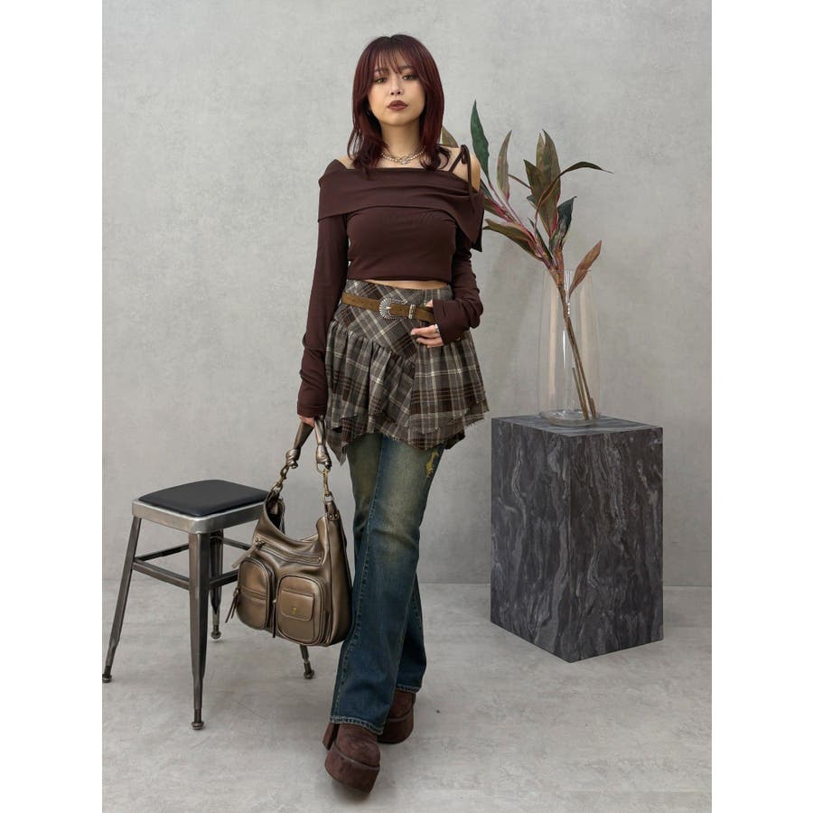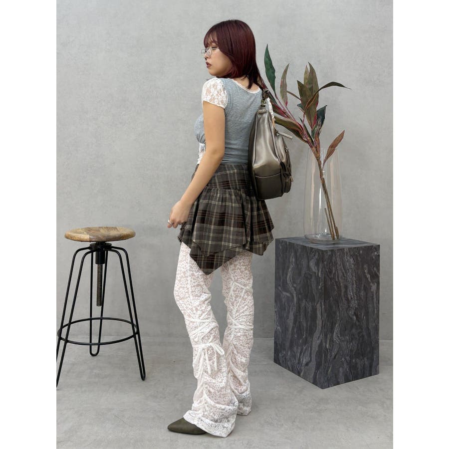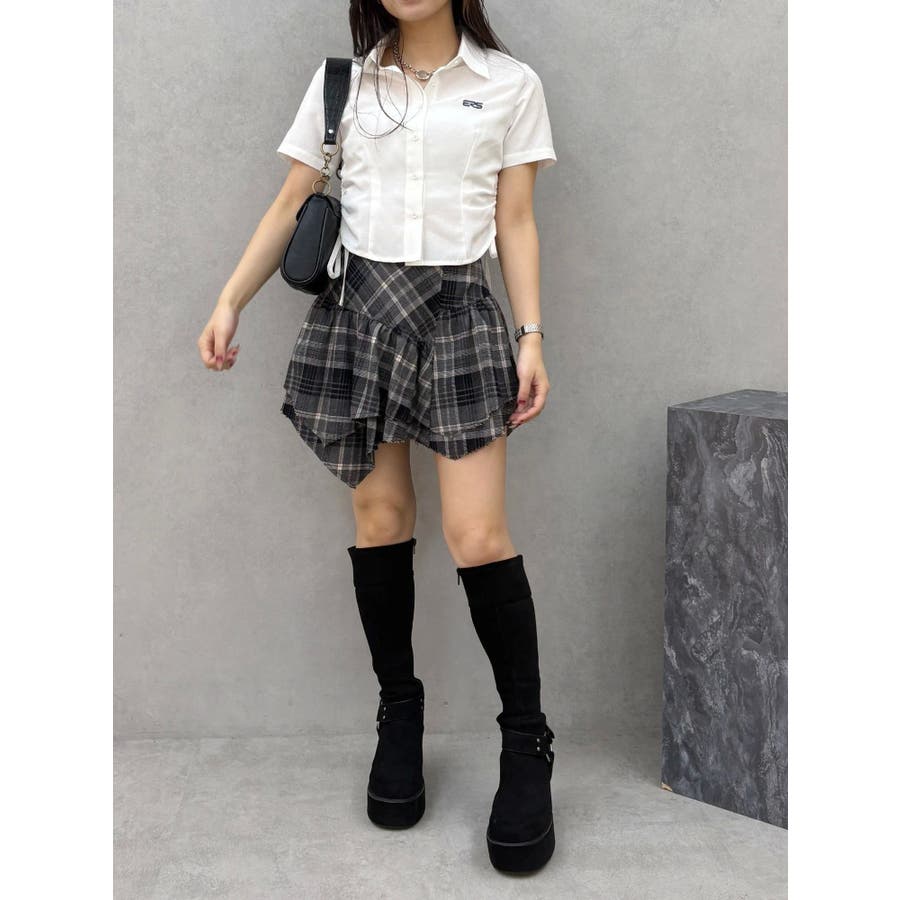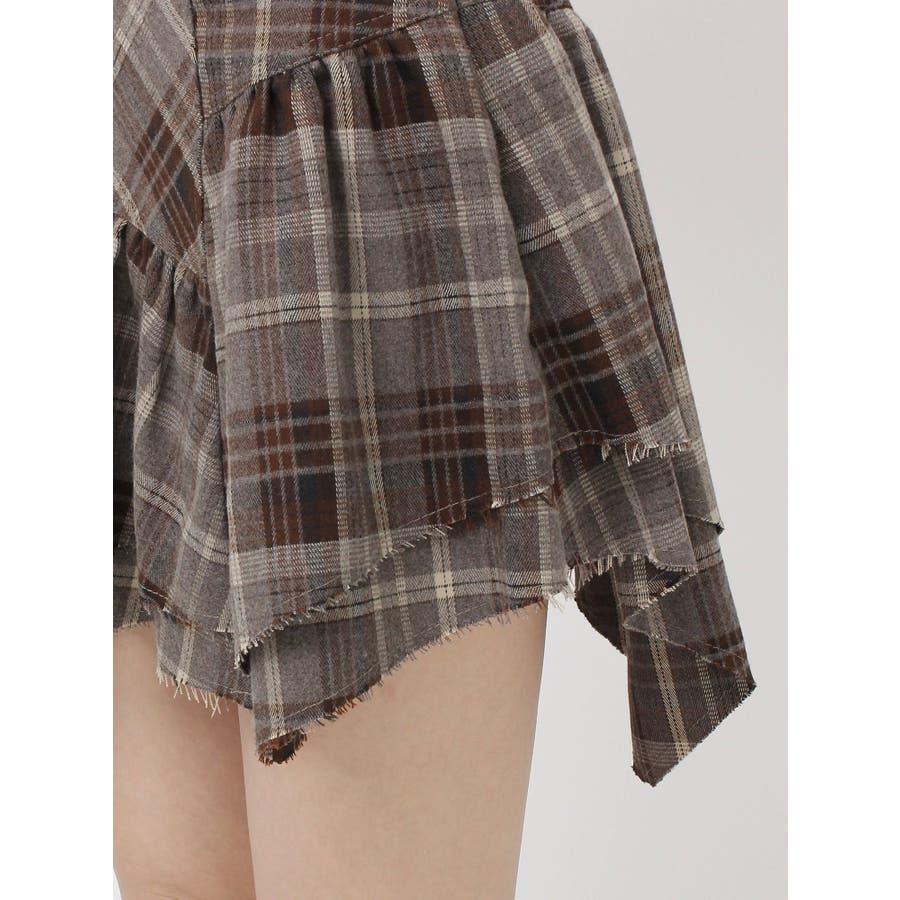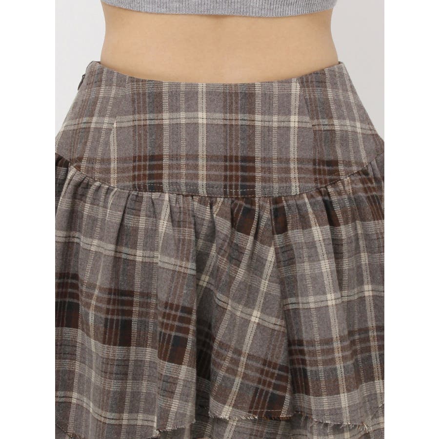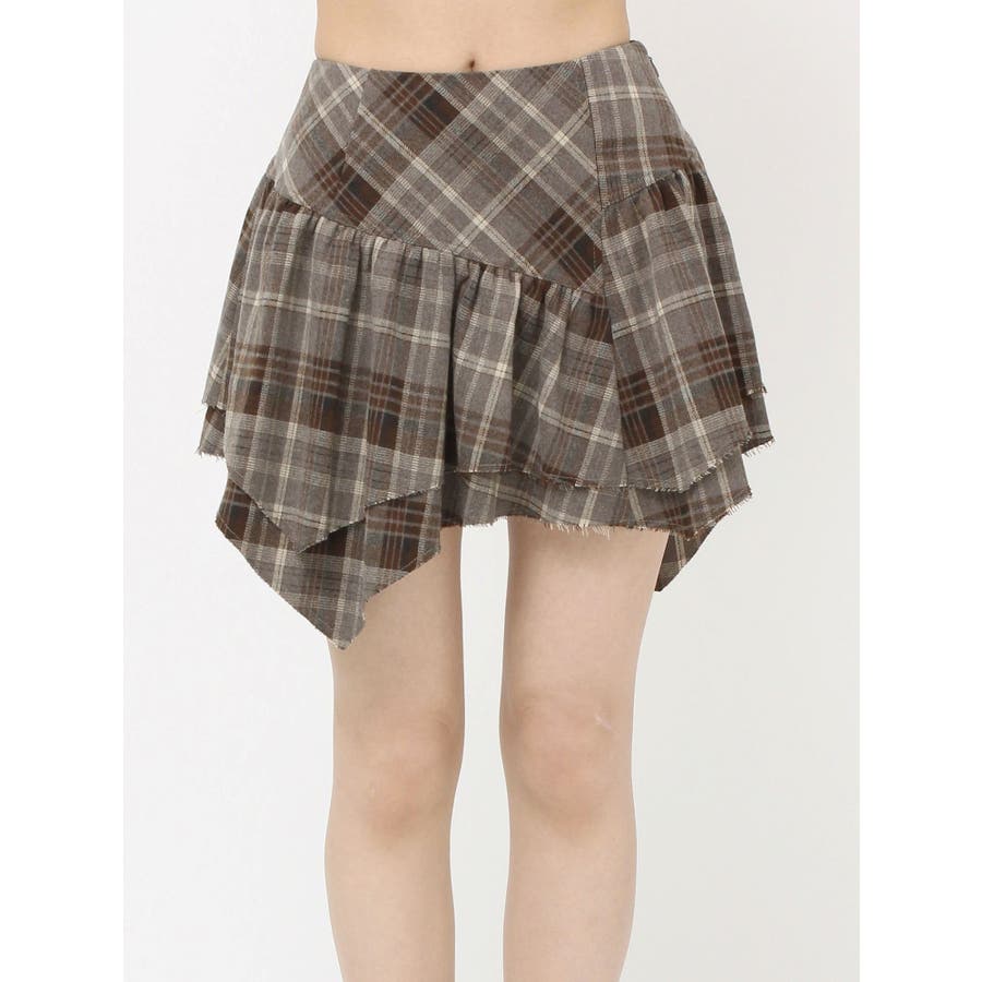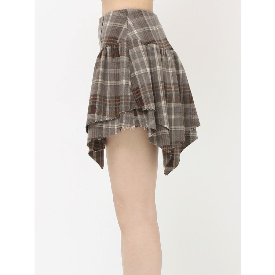 ■デザイン少し起毛感のあるチェック素材を使用したミニスカートです。裾のデザインはランダム感のあるバイヤス使いをしており、ボリューム感もかわいい一枚です。■スタイリングデニムにレイヤードするスタイリングが今季のトレンド感がありオススメです。インナーのショートパンツを付けていないことで、レイヤードにも使いやすくさまざまなスタイリングをお楽しみいただけます。-------------- 透け感:なし 裏地:なし 生地の厚み:普通伸縮性:なし --------------