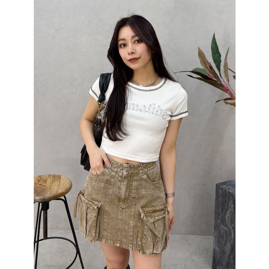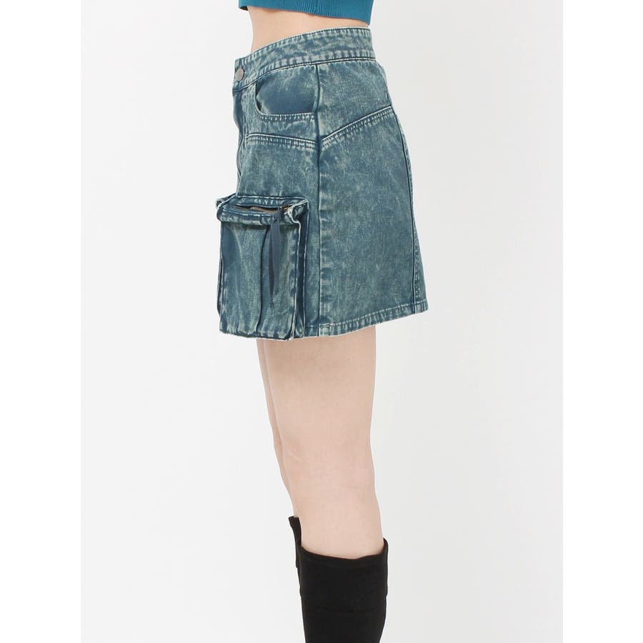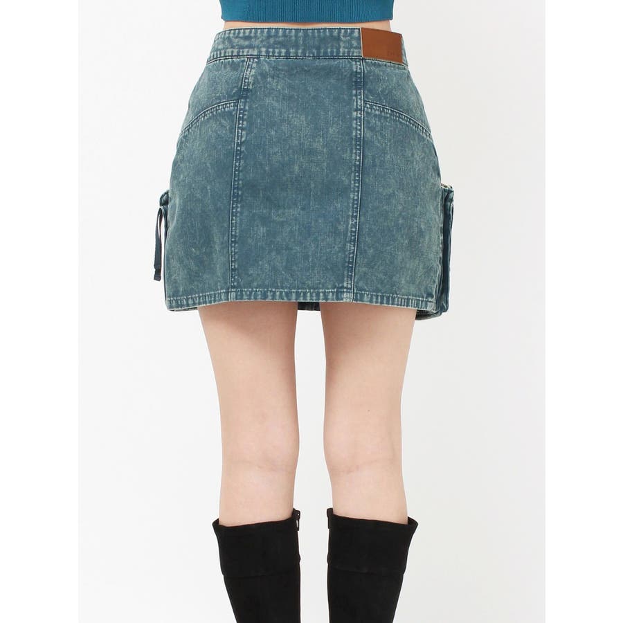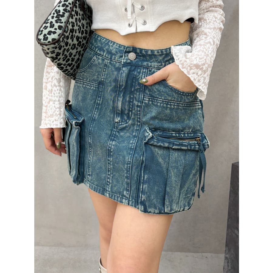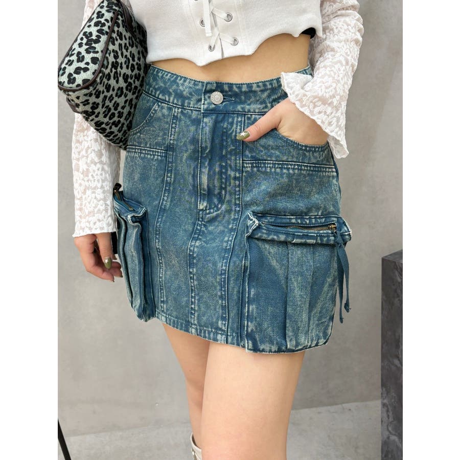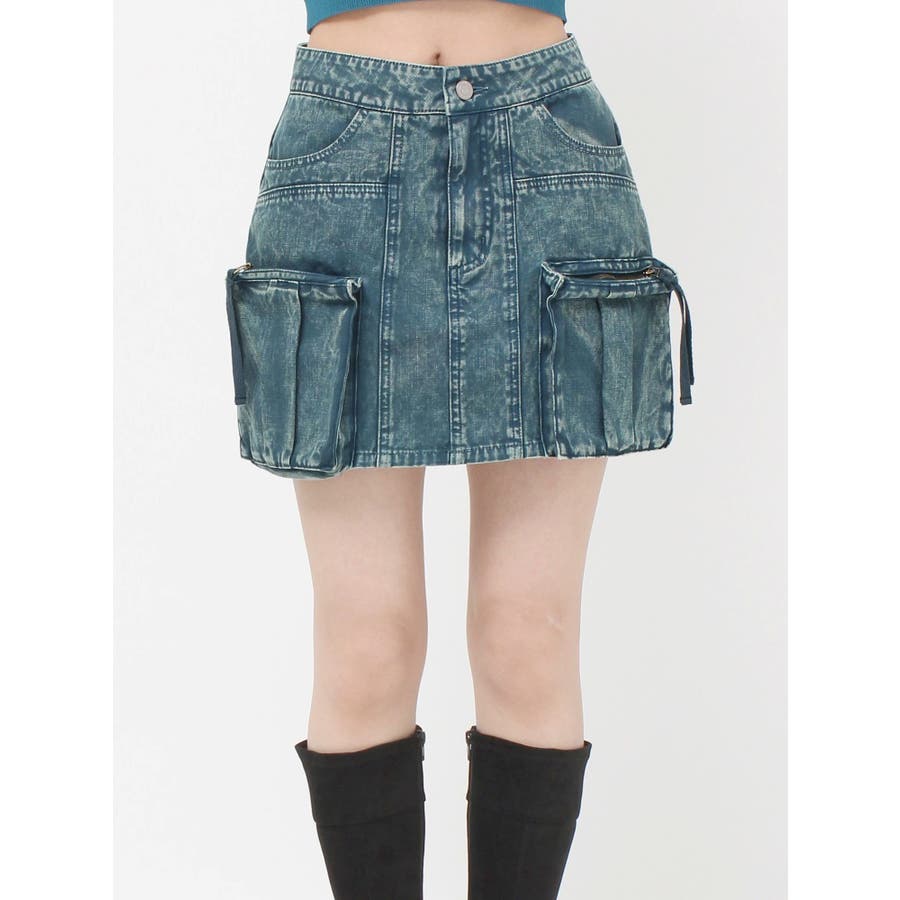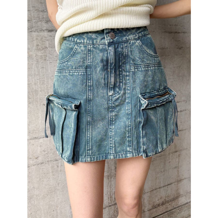 ■デザイントレンドのカーゴデザインでボリュームのあるポケットがポイントのミニスカートです。ポケットの引手も長めにしており、デザインポイントになっています。ケミカル風のムラのある加工を施し、シンプルながらもEVRIS(エヴリス)らしくエッジを効かせた一枚に仕上げました。■スタイリング今季はあえて少しながめのトップス >>オフショルニットチュニック や >>タイトグラフィックTシャツ などと合わせるのがおすすめです。-------------- 透け感:なし 裏地:なし 生地の厚み:普通伸縮性:なし --------------