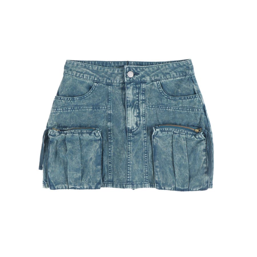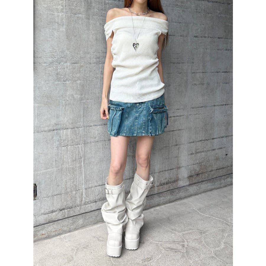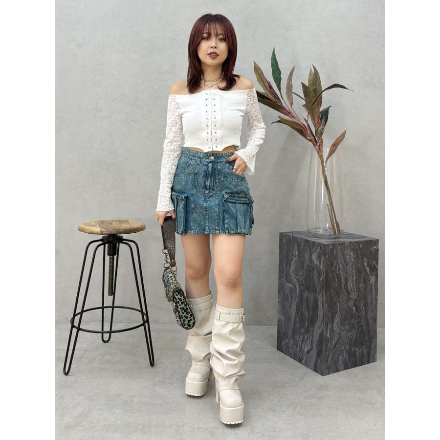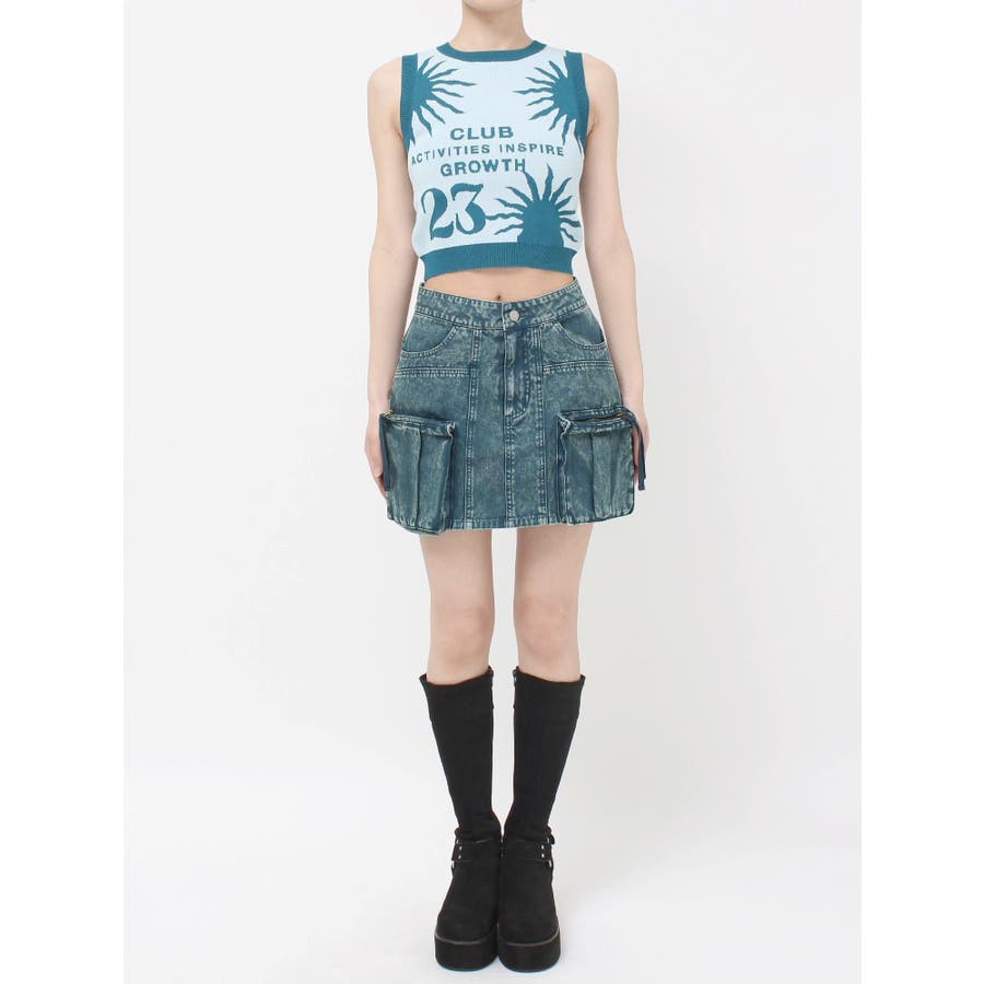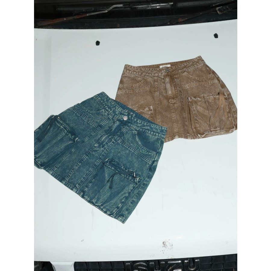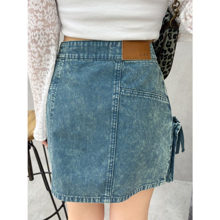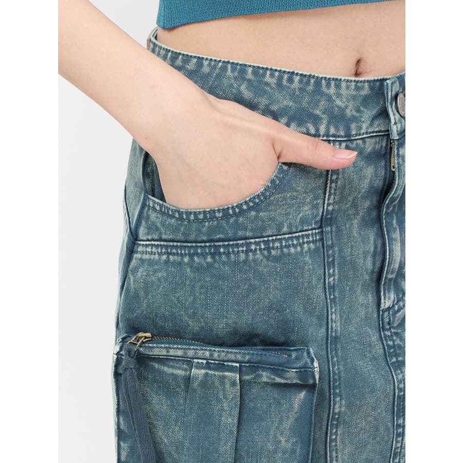 ■デザイントレンドのカーゴデザインでボリュームのあるポケットがポイントのミニスカートです。ポケットの引手も長めにしており、デザインポイントになっています。ケミカル風のムラのある加工を施し、シンプルながらもEVRIS(エヴリス)らしくエッジを効かせた一枚に仕上げました。■スタイリング今季はあえて少しながめのトップス >>オフショルニットチュニック や >>タイトグラフィックTシャツ などと合わせるのがおすすめです。-------------- 透け感:なし 裏地:なし 生地の厚み:普通伸縮性:なし --------------