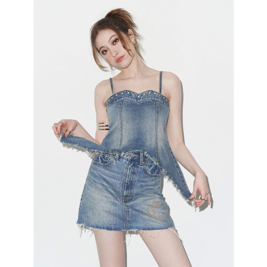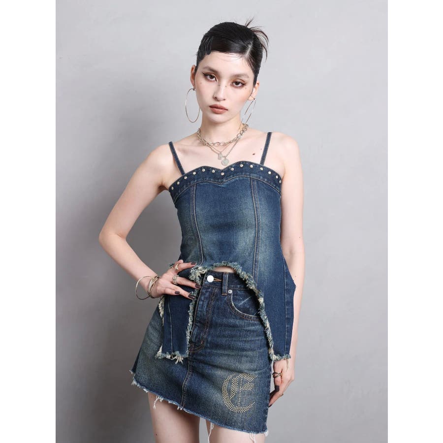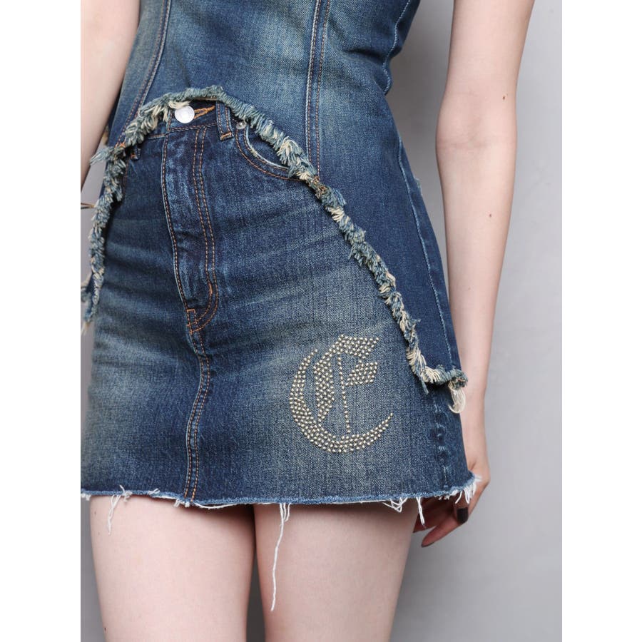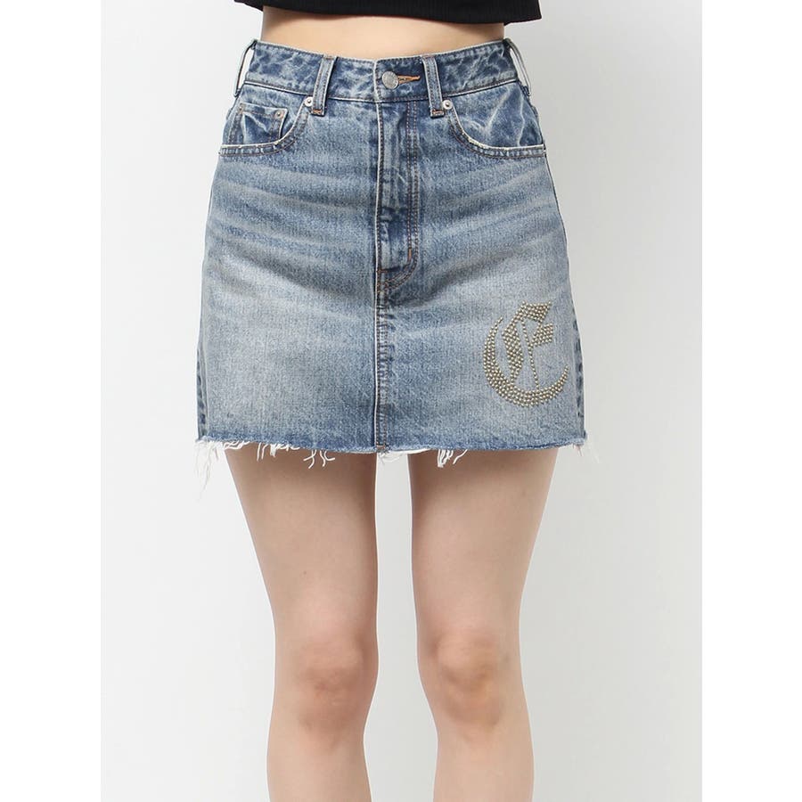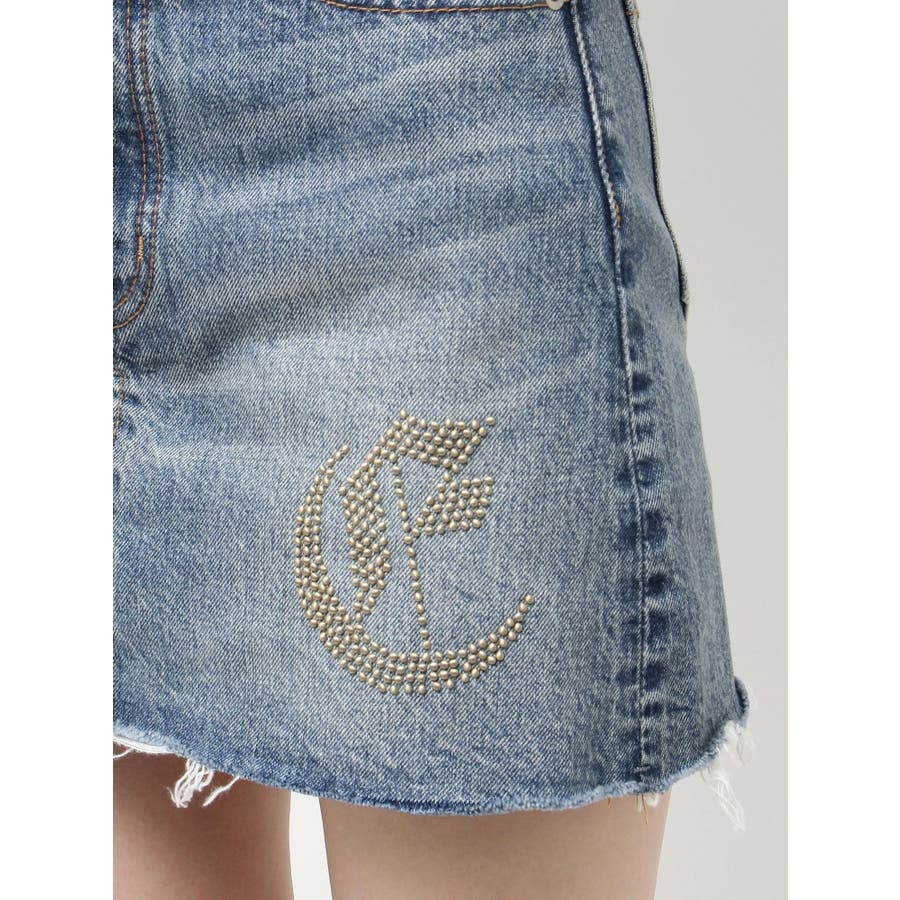 ワンポイントスタッズデニムミニスカート【セットアップ着用可能】