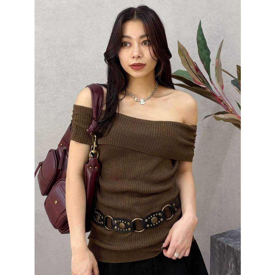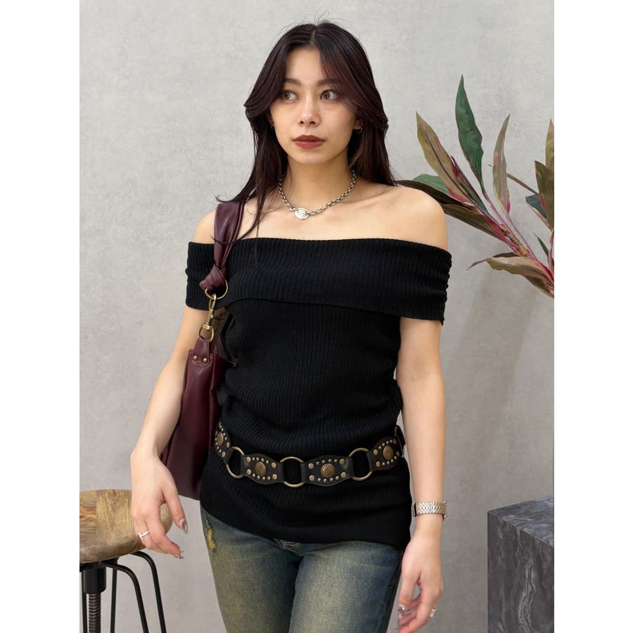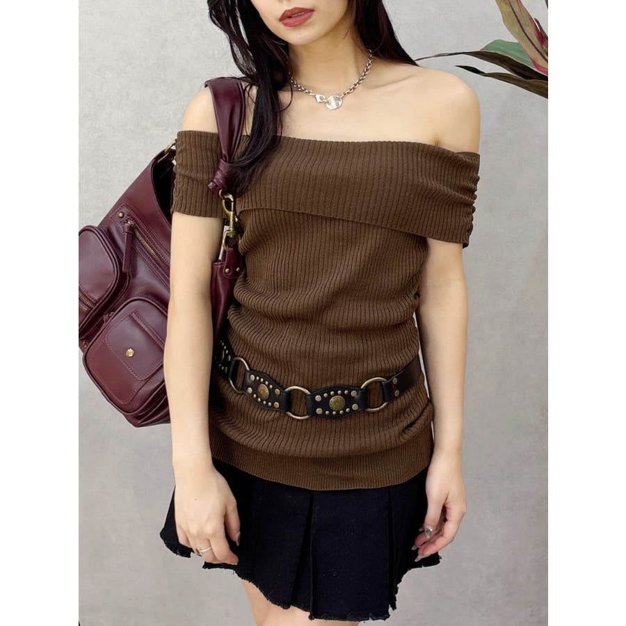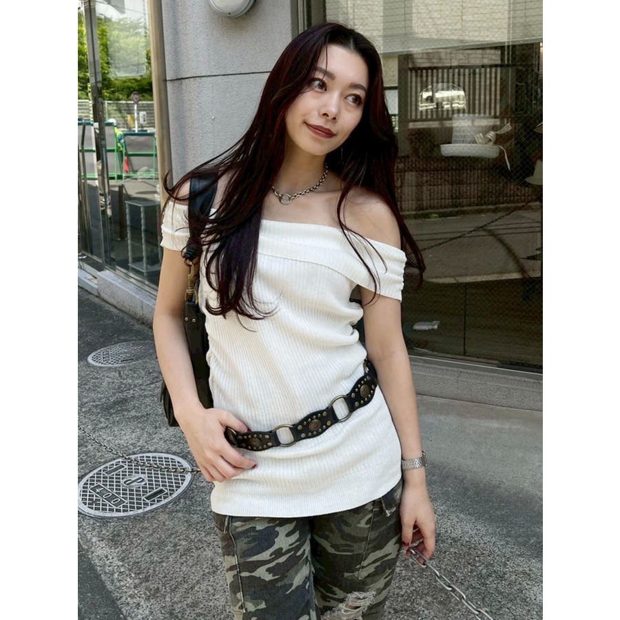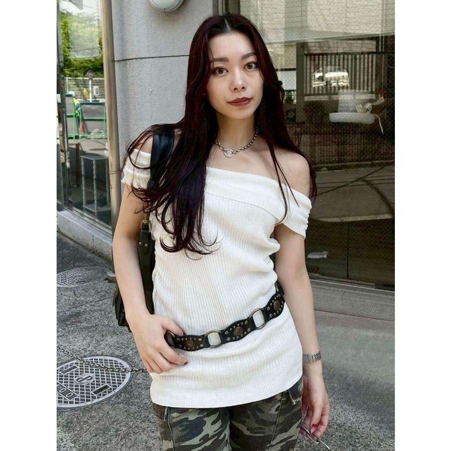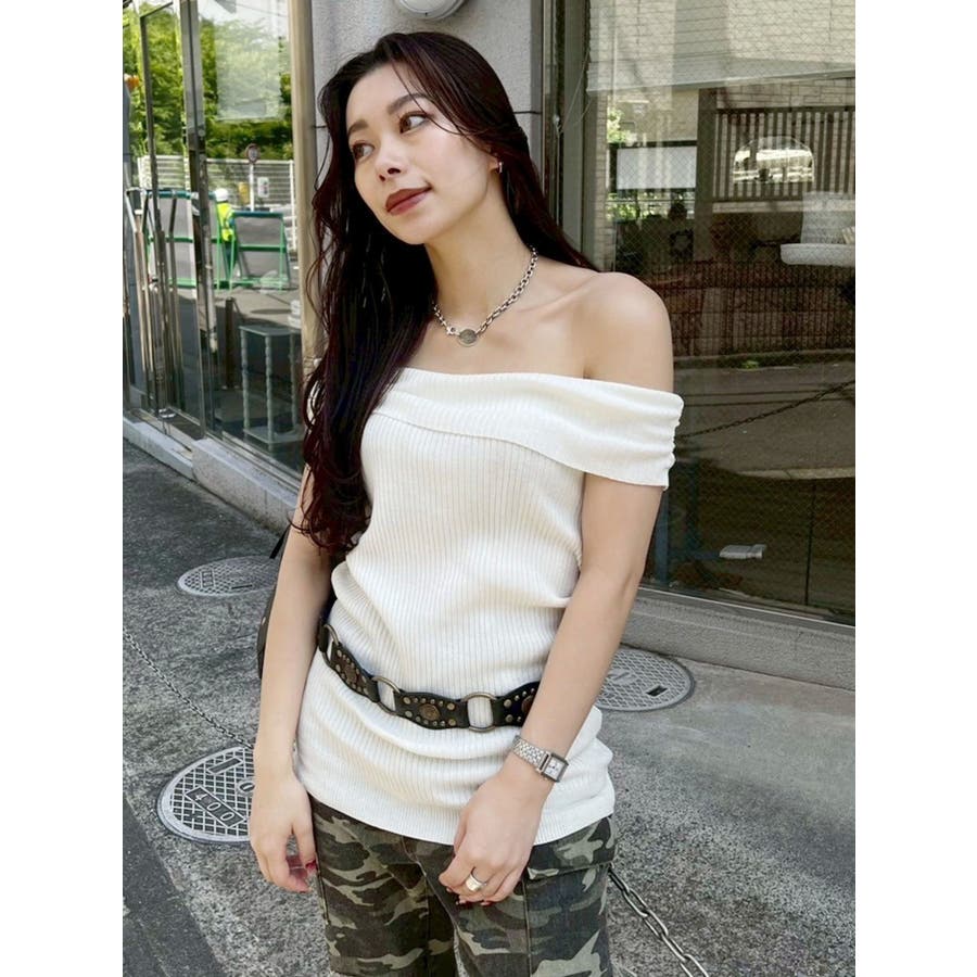 ■デザイントレンドのオフショルデザインのニットトップスです。シャリ感のある素材で夏でも着用しやすいサマーニットです。ウエスト部分にはシャーリングを入れておりスタイルアップ効果があります。 ■スタイリングヒップまで隠れるチュニック丈で、上からベルトを付けたスタイリングが90年代ギャル風に着こなせておすすめです。ボトムはワイドやフレアデニム、ミニボトム、どんなアイテムとも合わせやすいです。--------------裏地:なし 生地の厚み:やや薄手伸縮性:あり--------------