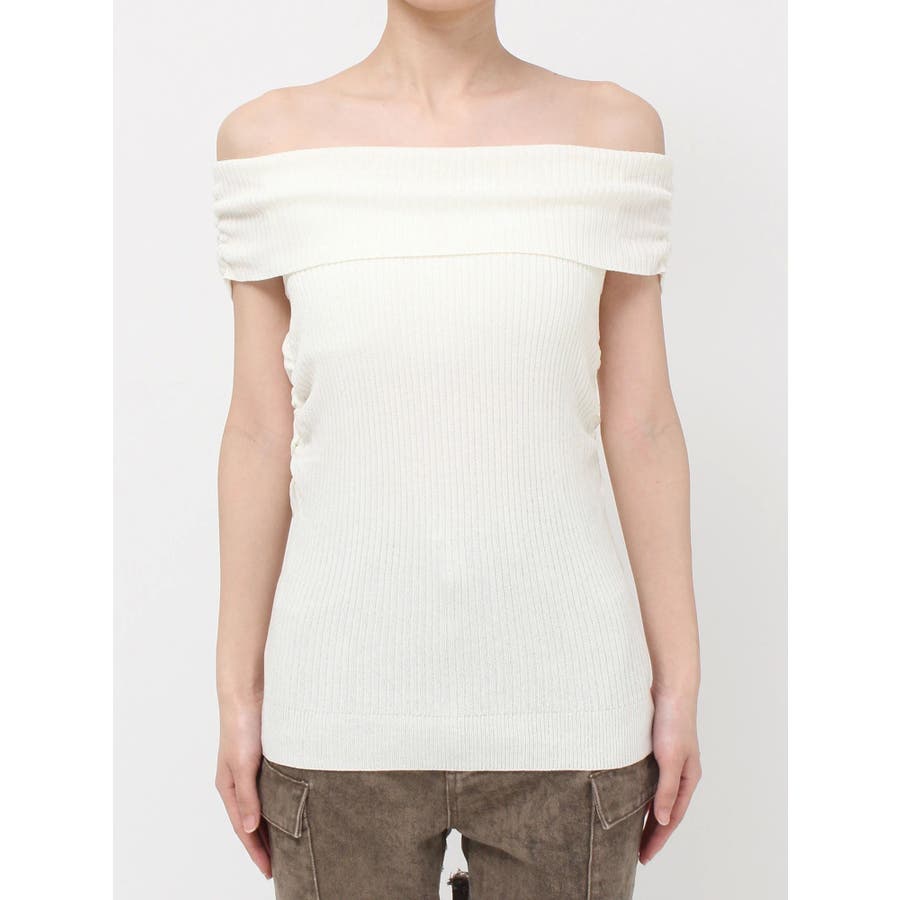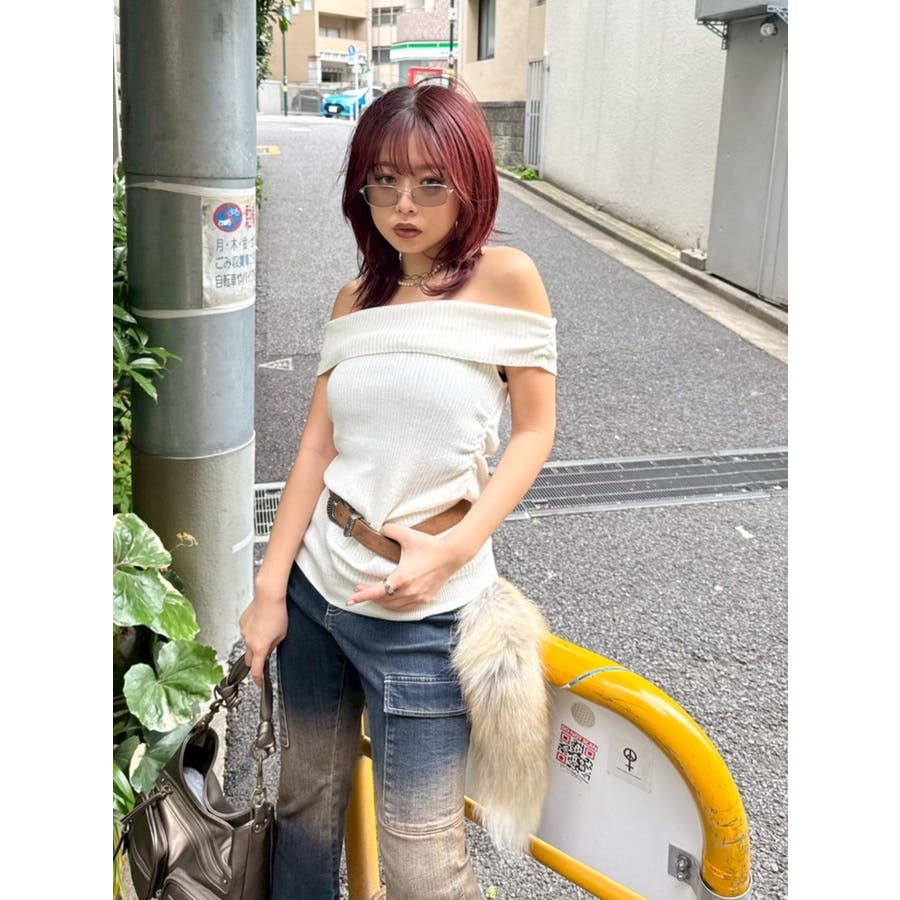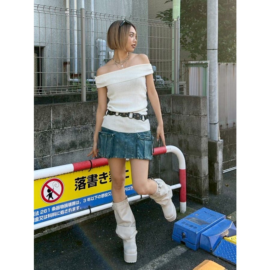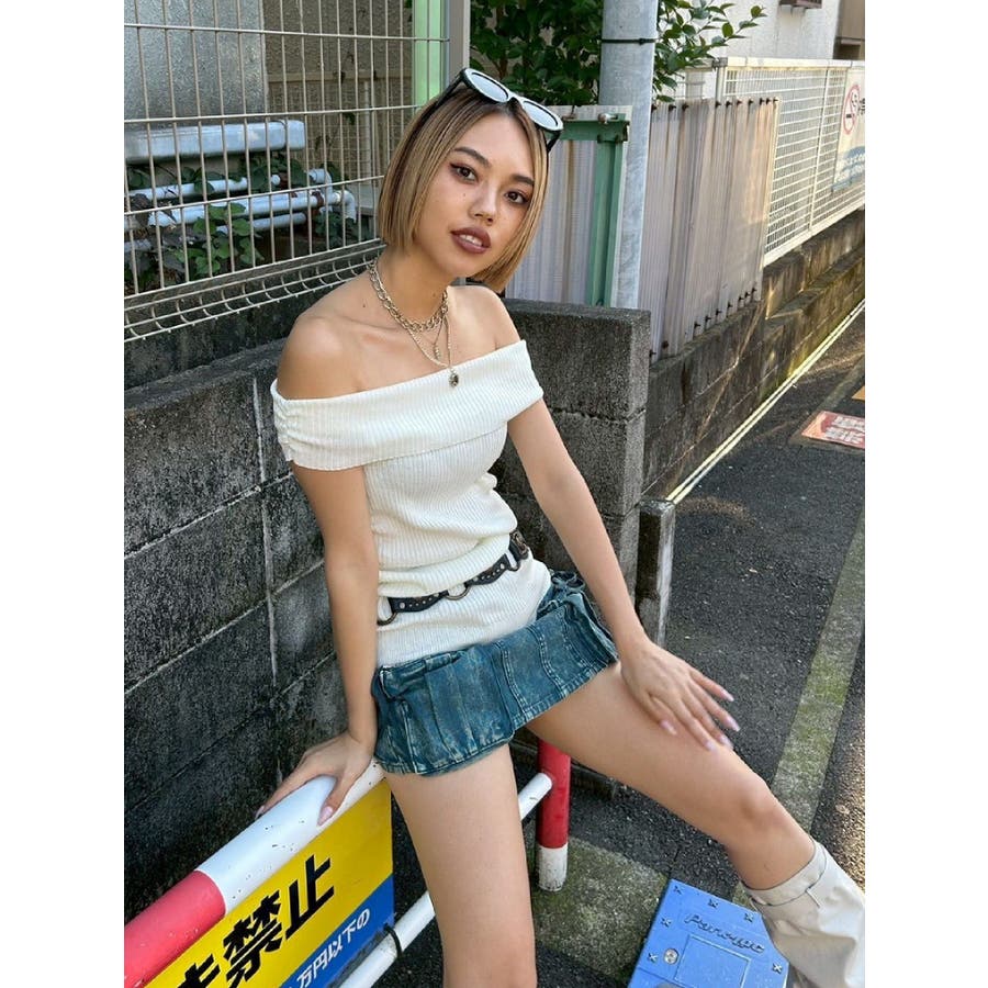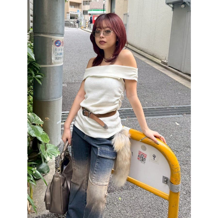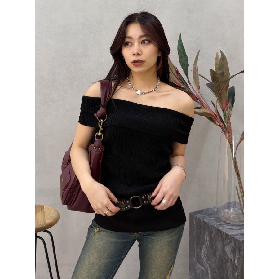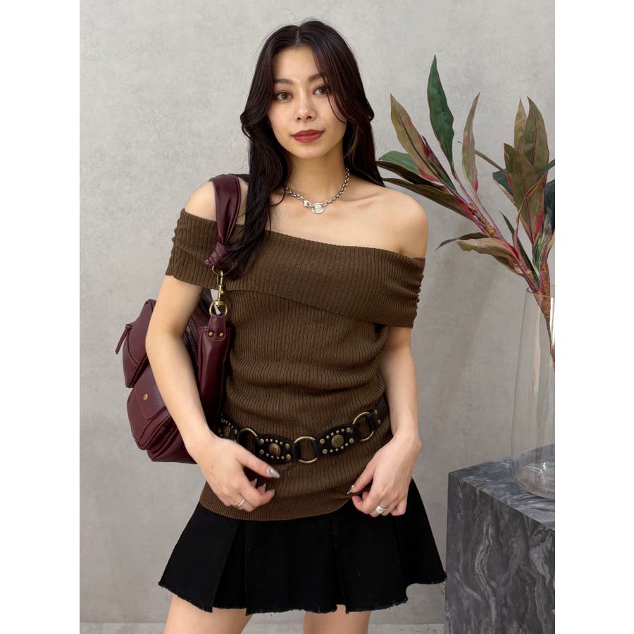 ■デザイントレンドのオフショルデザインのニットトップスです。シャリ感のある素材で夏でも着用しやすいサマーニットです。ウエスト部分にはシャーリングを入れておりスタイルアップ効果があります。 ■スタイリングヒップまで隠れるチュニック丈で、上からベルトを付けたスタイリングが90年代ギャル風に着こなせておすすめです。ボトムはワイドやフレアデニム、ミニボトム、どんなアイテムとも合わせやすいです。--------------裏地:なし 生地の厚み:やや薄手伸縮性:あり--------------