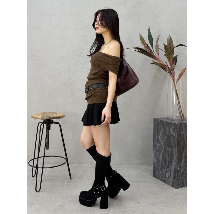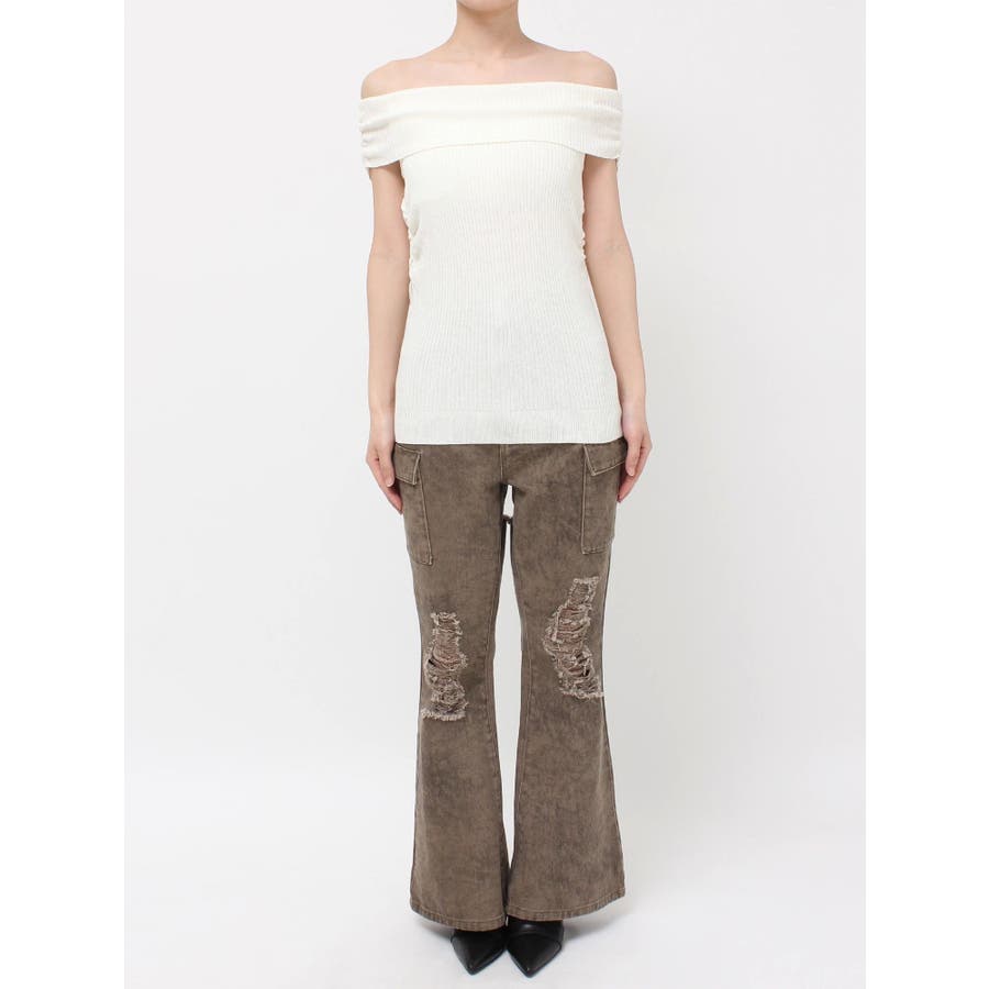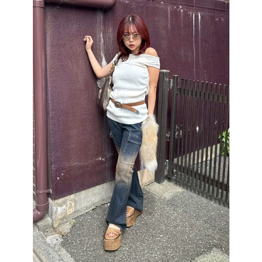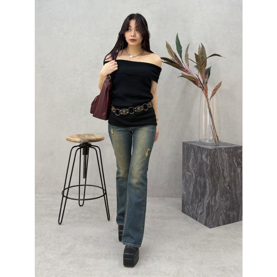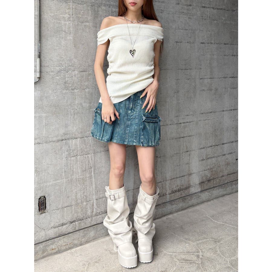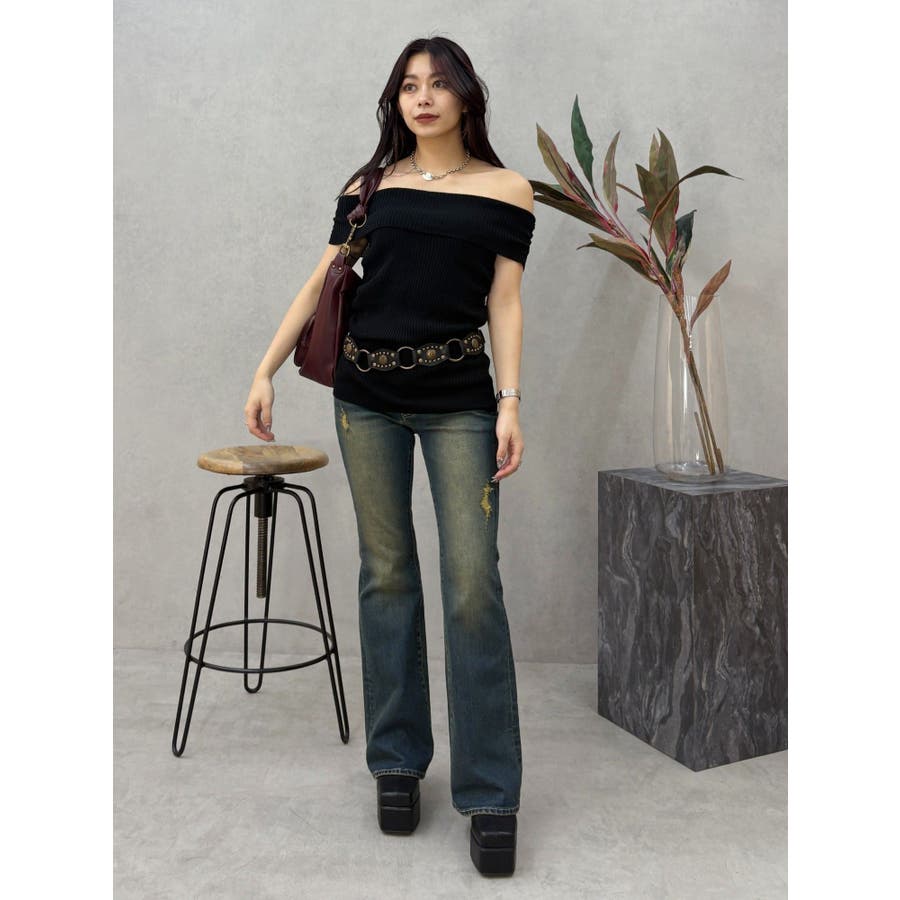 ■デザイントレンドのオフショルデザインのニットトップスです。シャリ感のある素材で夏でも着用しやすいサマーニットです。ウエスト部分にはシャーリングを入れておりスタイルアップ効果があります。 ■スタイリングヒップまで隠れるチュニック丈で、上からベルトを付けたスタイリングが90年代ギャル風に着こなせておすすめです。ボトムはワイドやフレアデニム、ミニボトム、どんなアイテムとも合わせやすいです。--------------裏地:なし 生地の厚み:やや薄手伸縮性:あり--------------