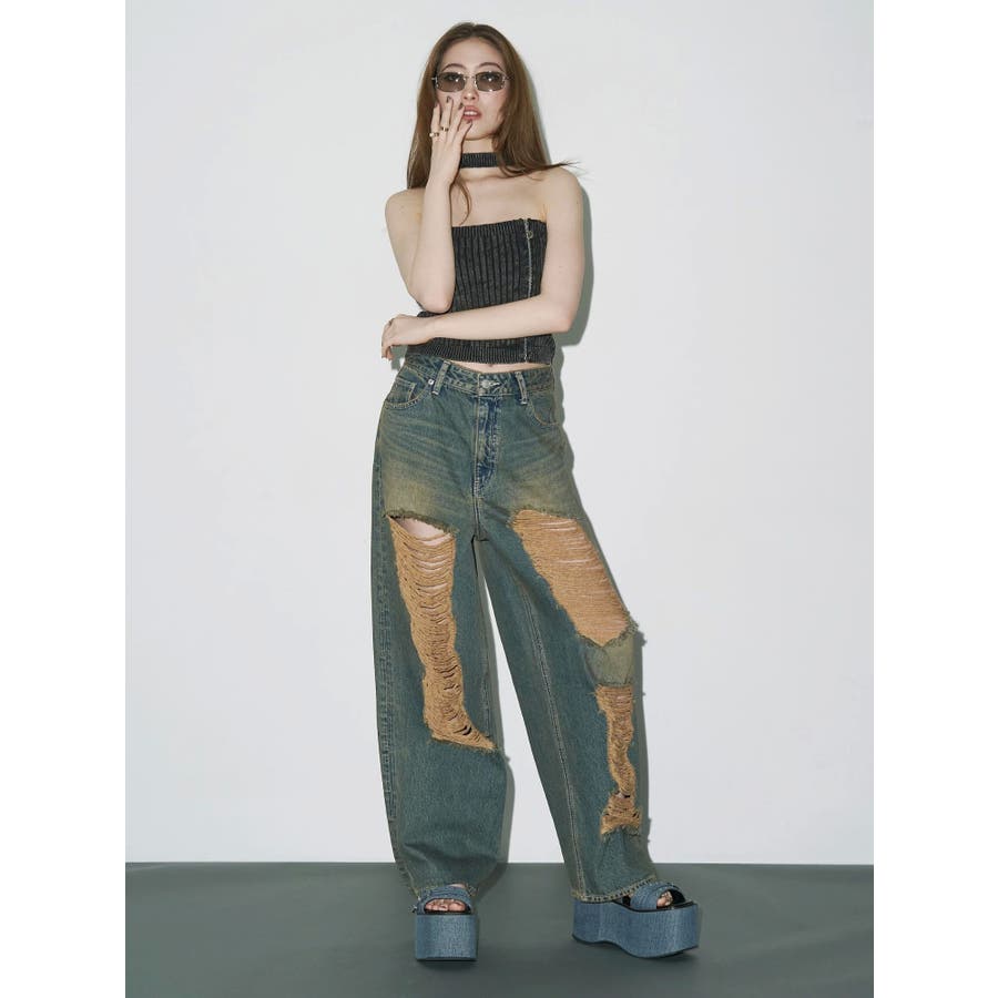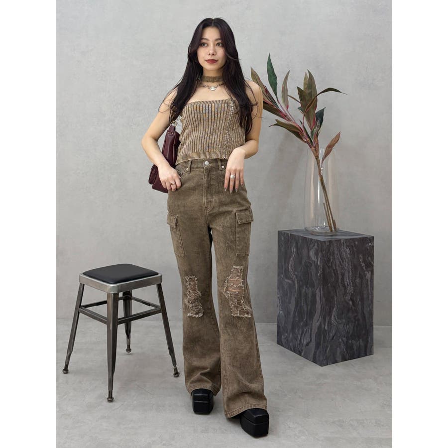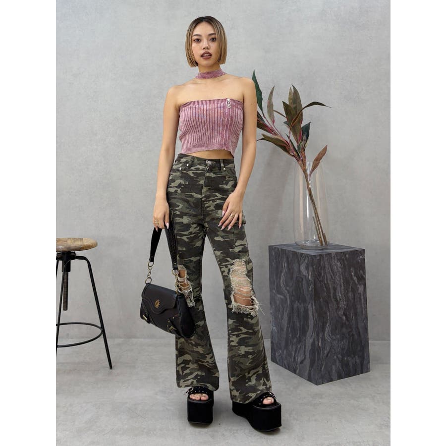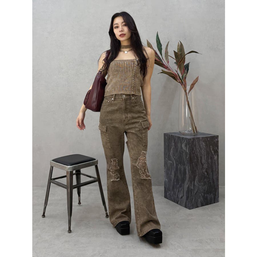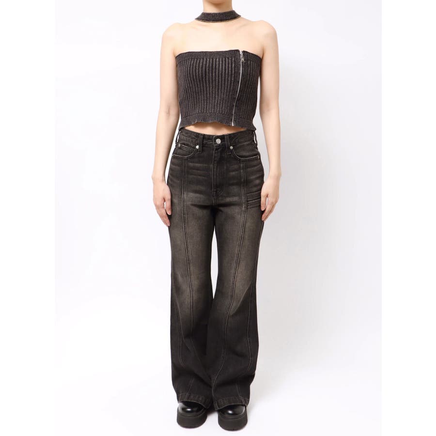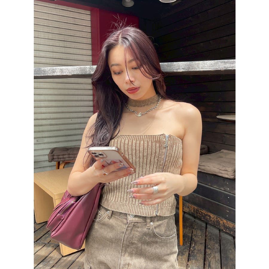 ■デザインフロントにジップとチャームをつけたデザインがポイントのニットトップスです。チョーカーデザインでピグメント加工を入れており、カジュアルながらもエッジの効いた1枚に仕上がっています。ワイドボトムやハイウエストボトムと合わせたスタイリングがスタイルアップ効果がありおすすめです。※一部サンプルでの撮影のため着丈が少し長いものがあります。詳細画像が正しい商品の仕様になります。■スタイリングコンパクトですっきりとしたシルエットを活かしてフレアパンツや、カーゴパンツなどボリュームのあるボトムと合わせるのがおすすめです。--------------透け感:なし裏地:なし生地の厚み:普通伸縮性:あり--------------