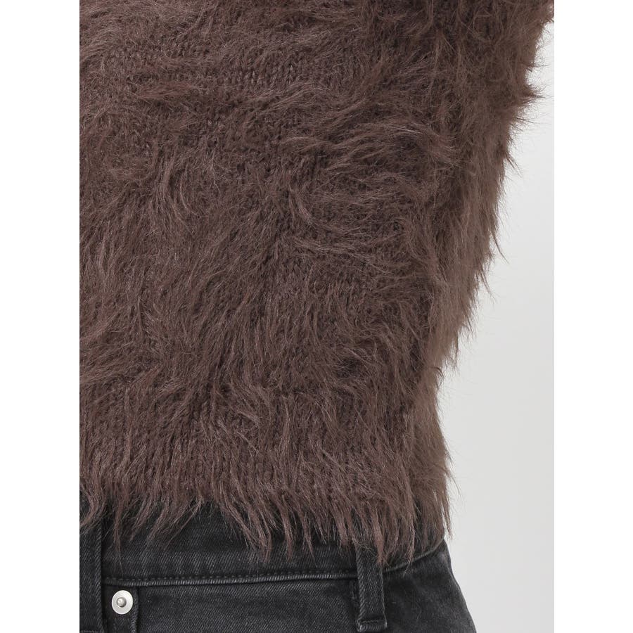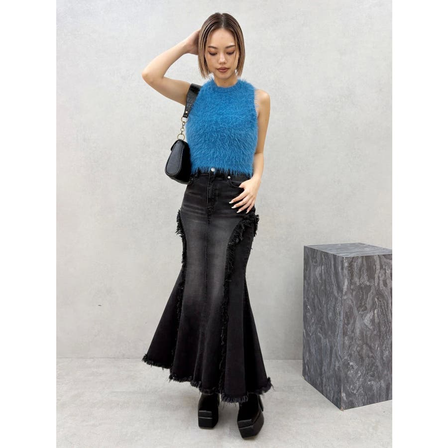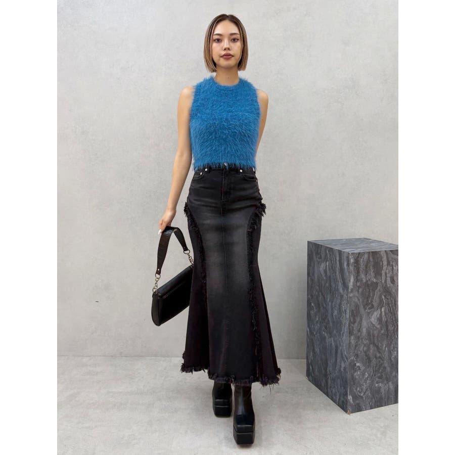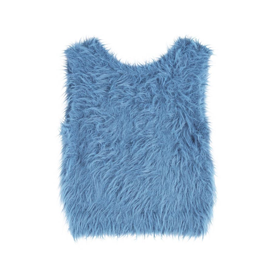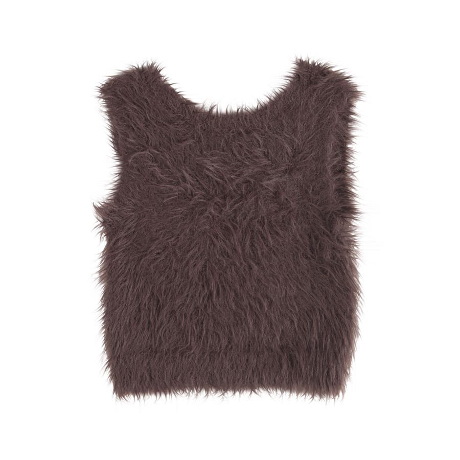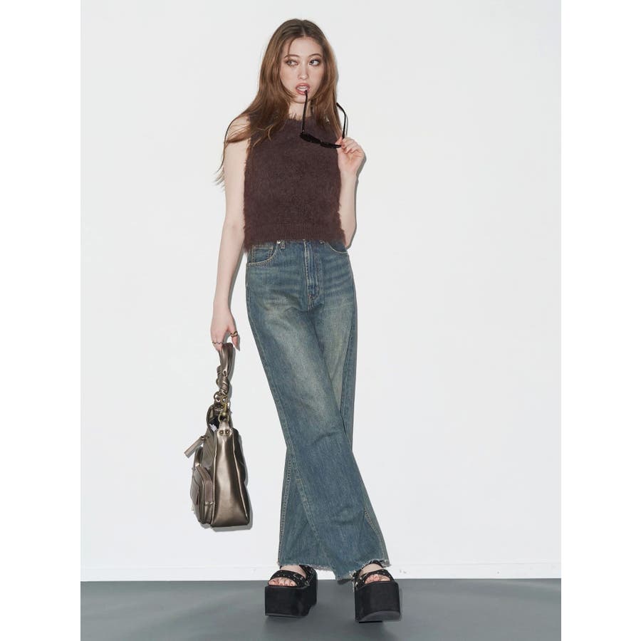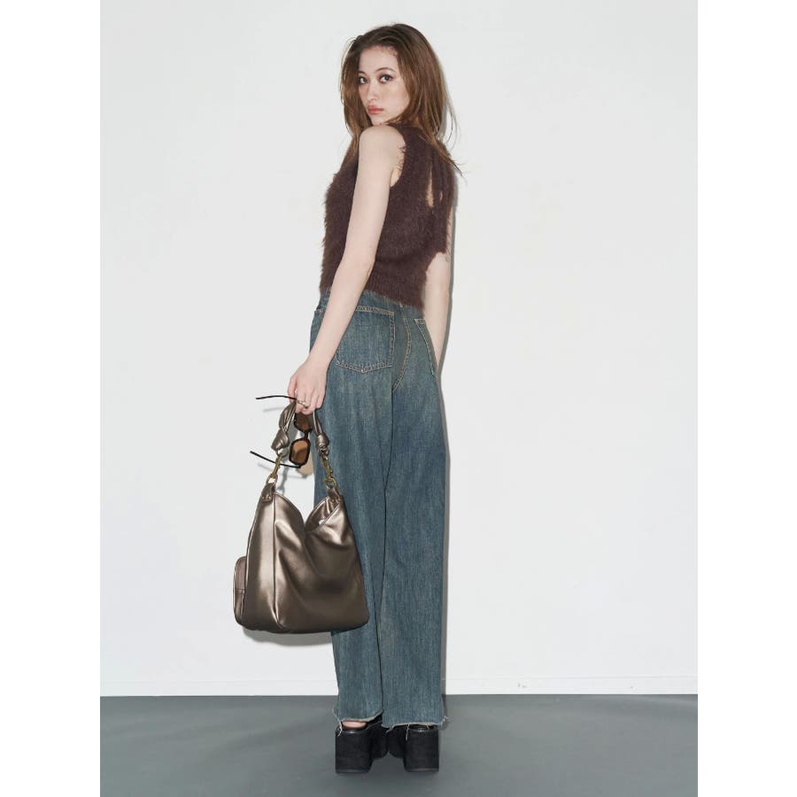 ふわっとしたシャギー素材と背中あきでリボンがポイントのニットタンクです。秋の立ち上がりにはぴったりの、秋めいたデザインのトップスです。ワイドデニムやスカートなど、なんにでも合わせやすいシンプルなデザインのトップスです。