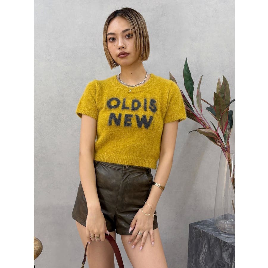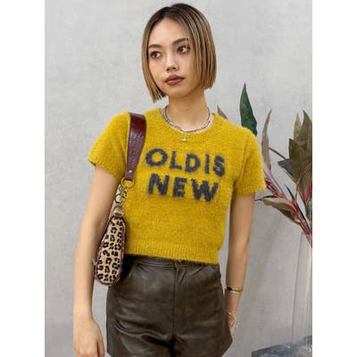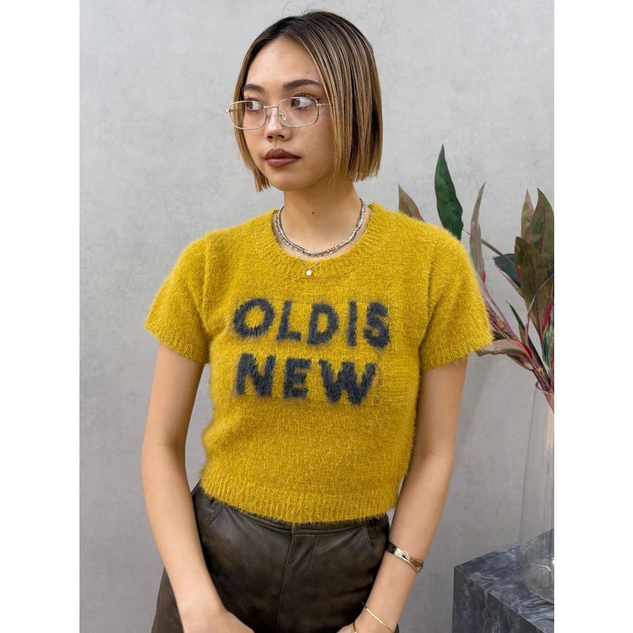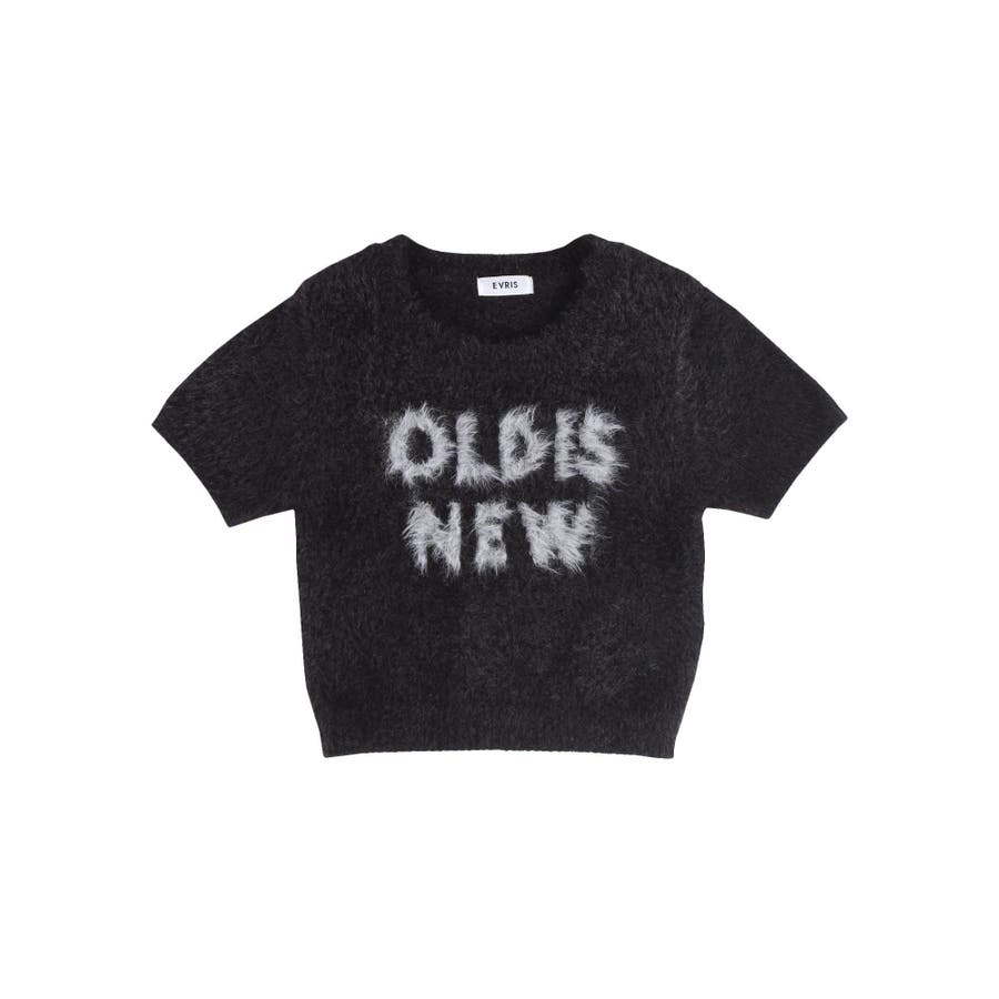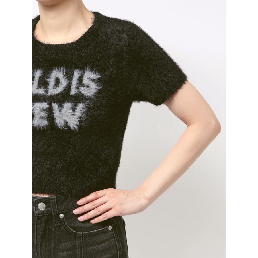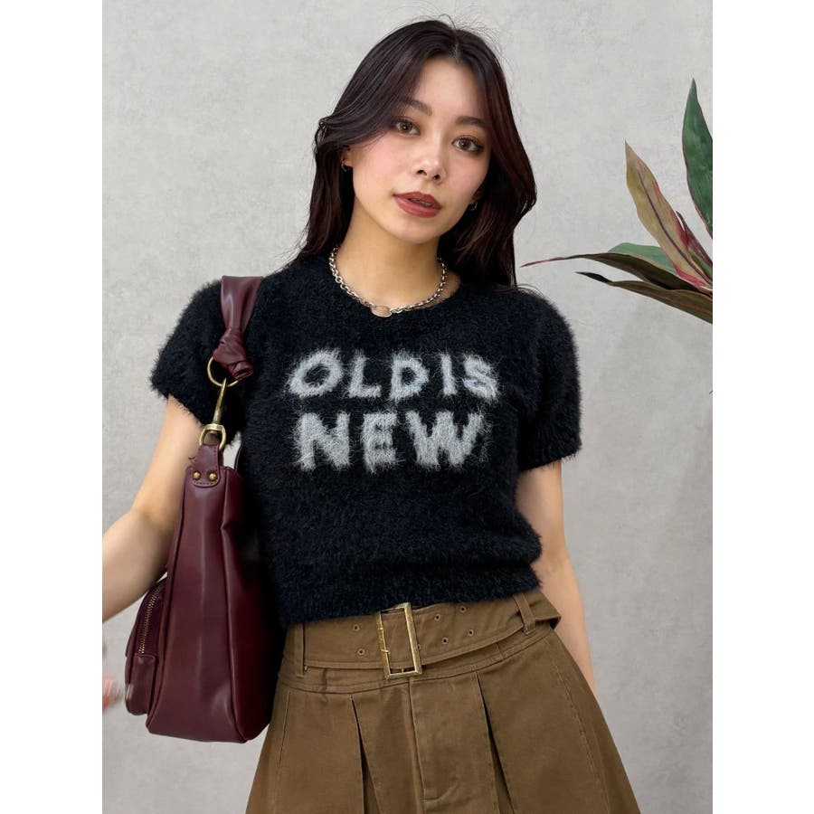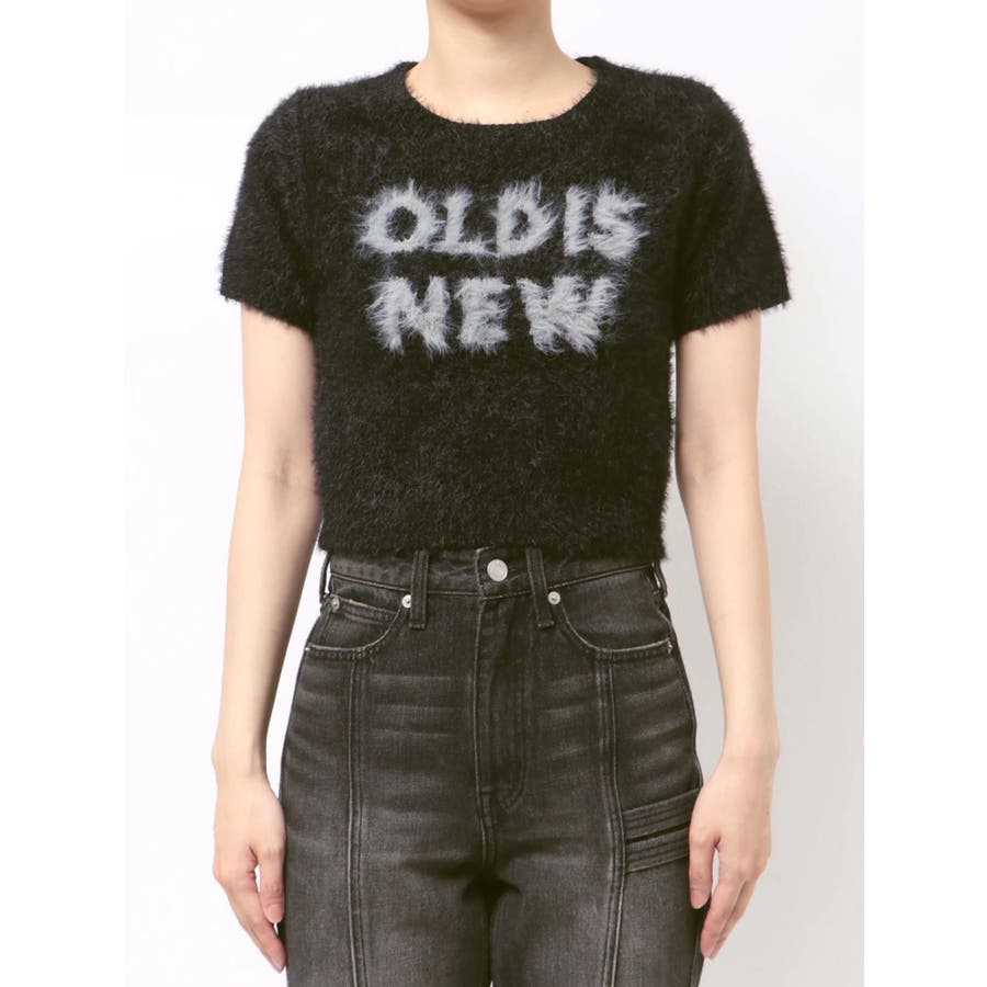 今季のロゴを毛足の長いシャギー素材でジャガード編みしたキャッチーなデザインのニットトップス。モール糸を仕様しており、程よく艶感もある編地です。秋の立ち上がりにピッタリな半袖のニットトップスです。