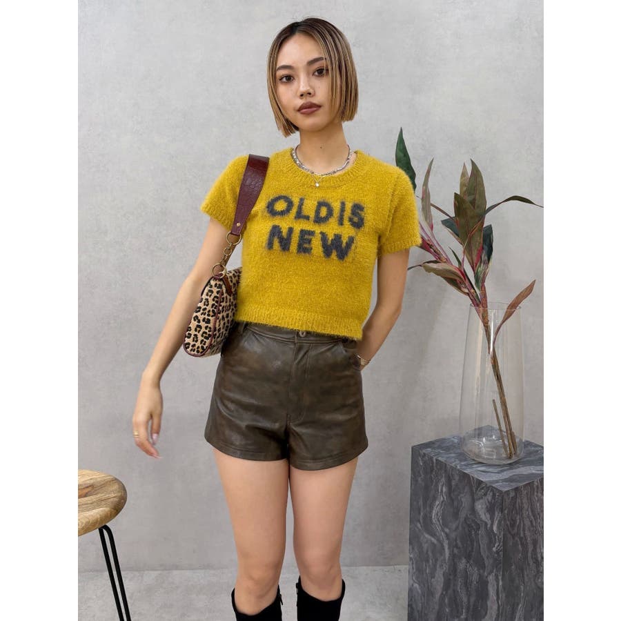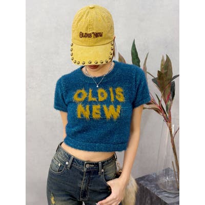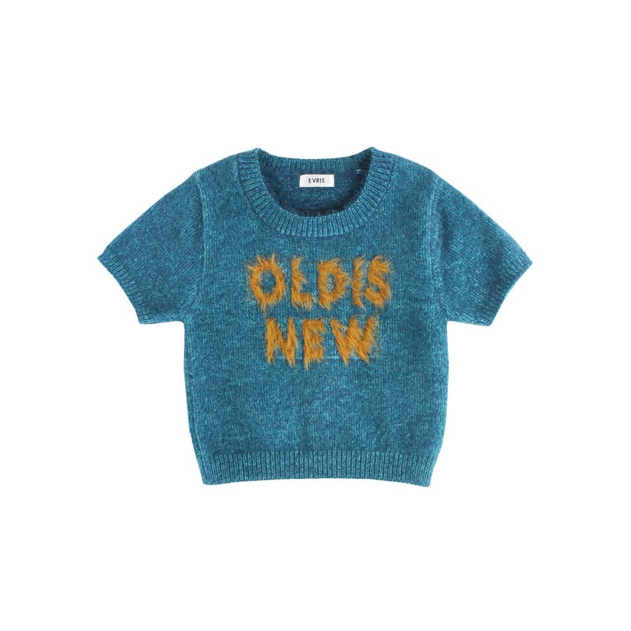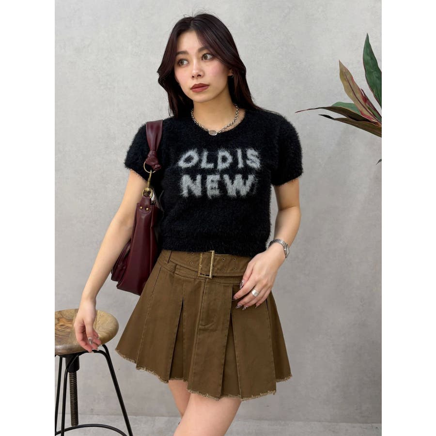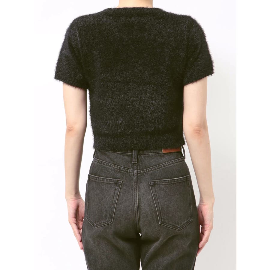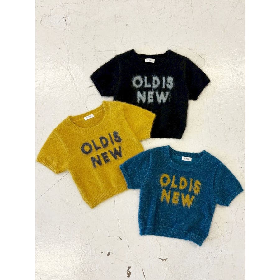 今季のロゴを毛足の長いシャギー素材でジャガード編みしたキャッチーなデザインのニットトップス。モール糸を仕様しており、程よく艶感もある編地です。秋の立ち上がりにピッタリな半袖のニットトップスです。