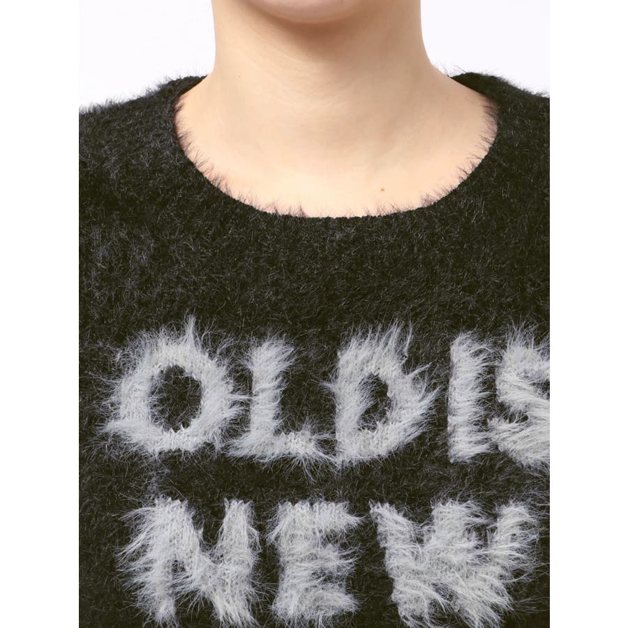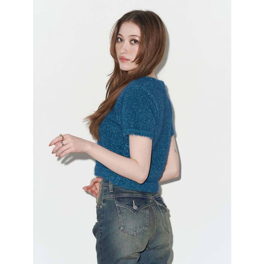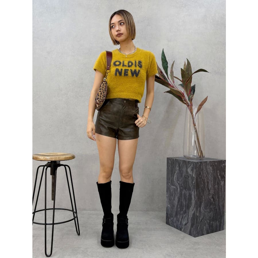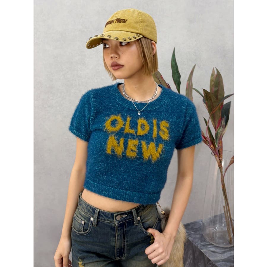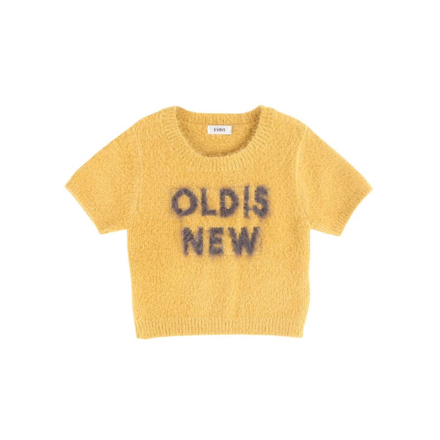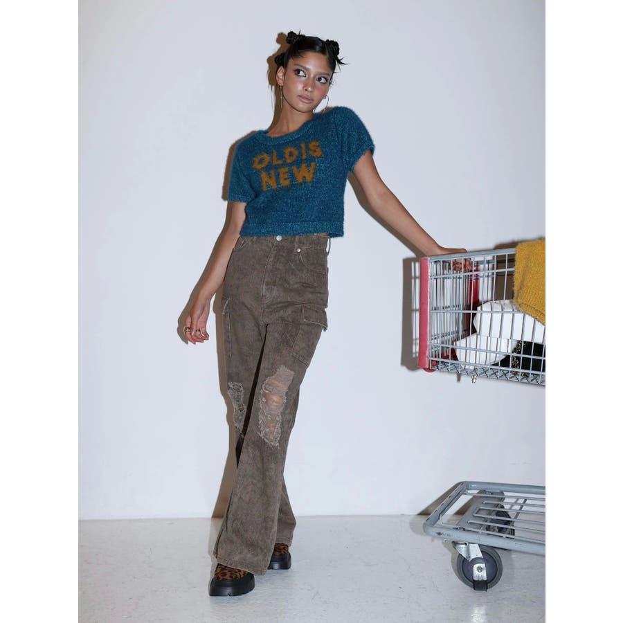 今季のロゴを毛足の長いシャギー素材でジャガード編みしたキャッチーなデザインのニットトップス。モール糸を仕様しており、程よく艶感もある編地です。秋の立ち上がりにピッタリな半袖のニットトップスです。