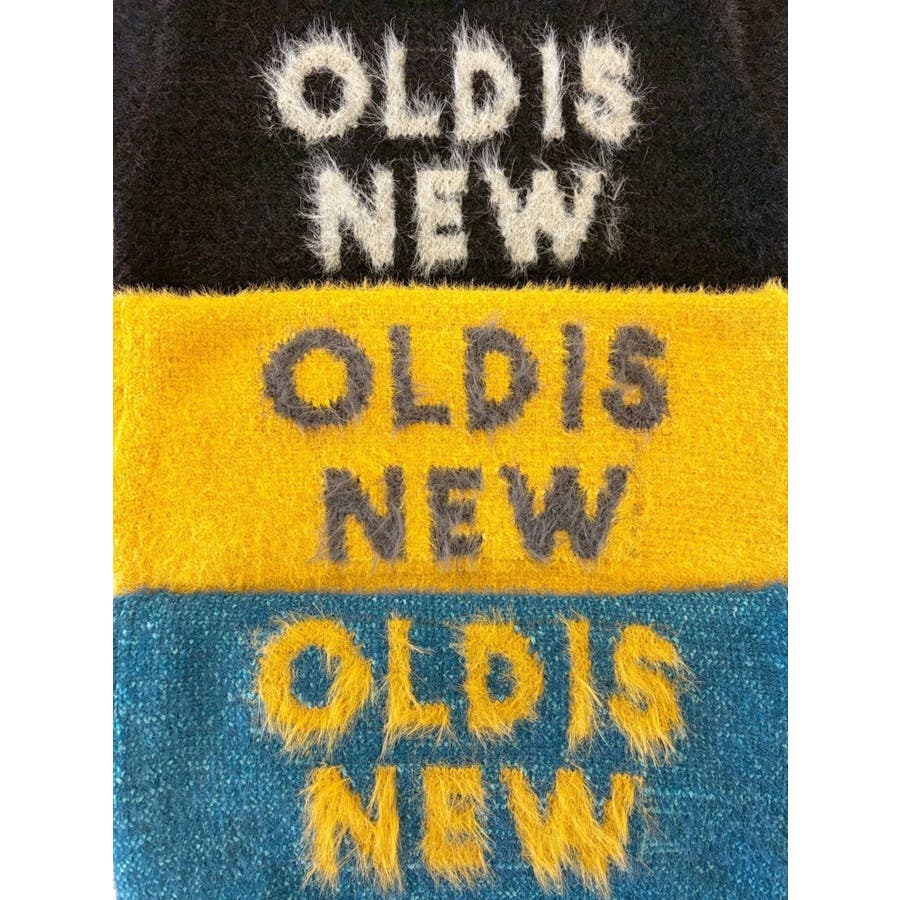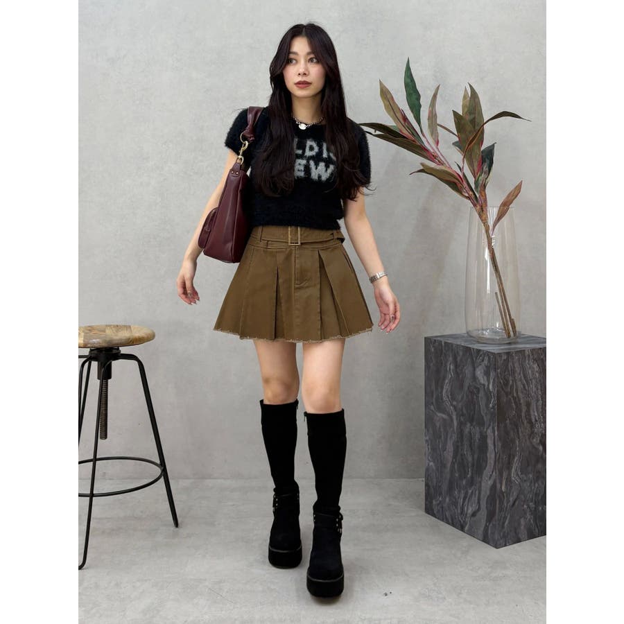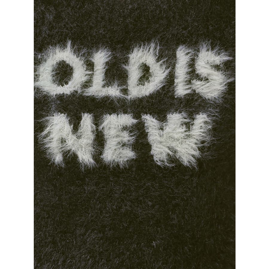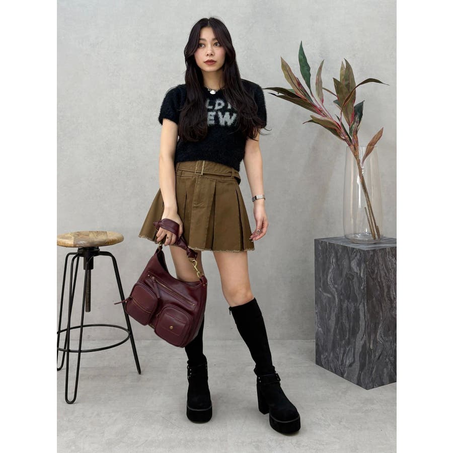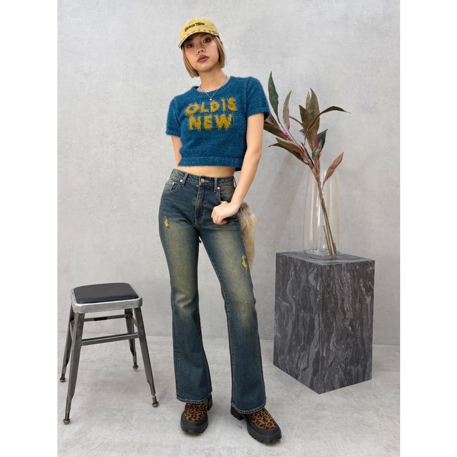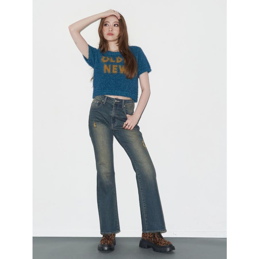 今季のロゴを毛足の長いシャギー素材でジャガード編みしたキャッチーなデザインのニットトップス。モール糸を仕様しており、程よく艶感もある編地です。秋の立ち上がりにピッタリな半袖のニットトップスです。
