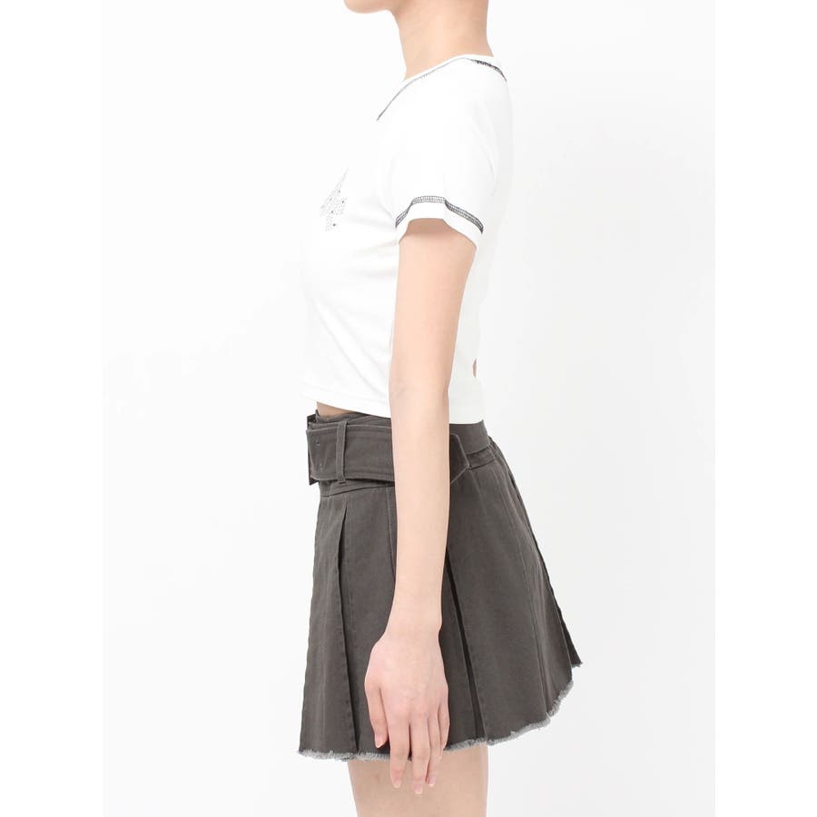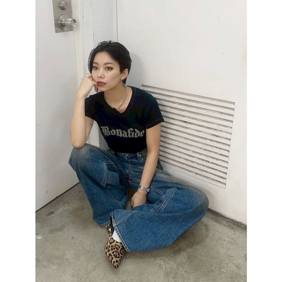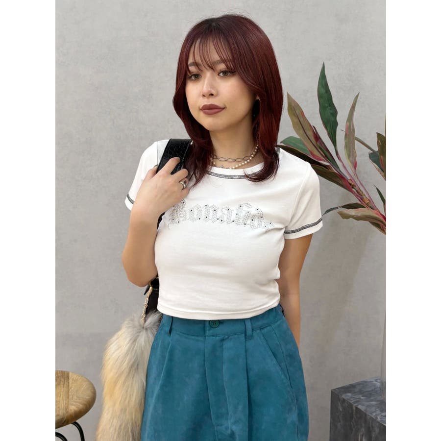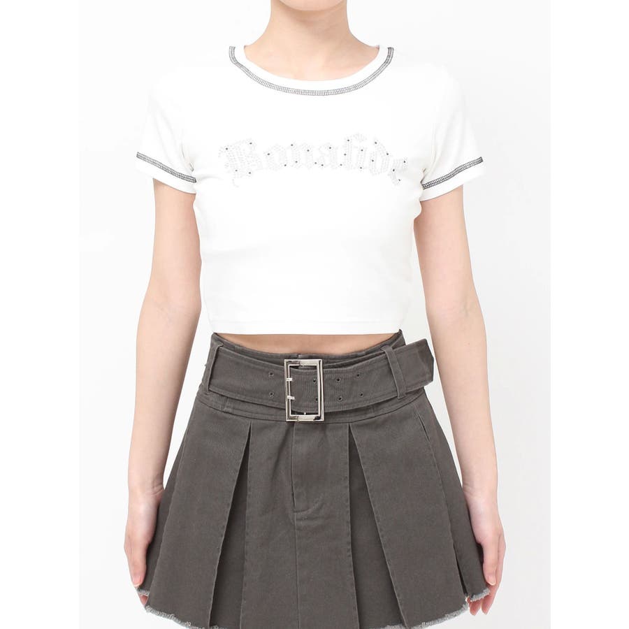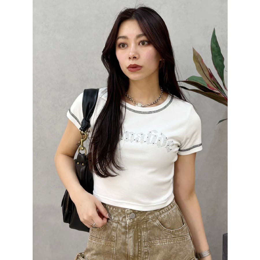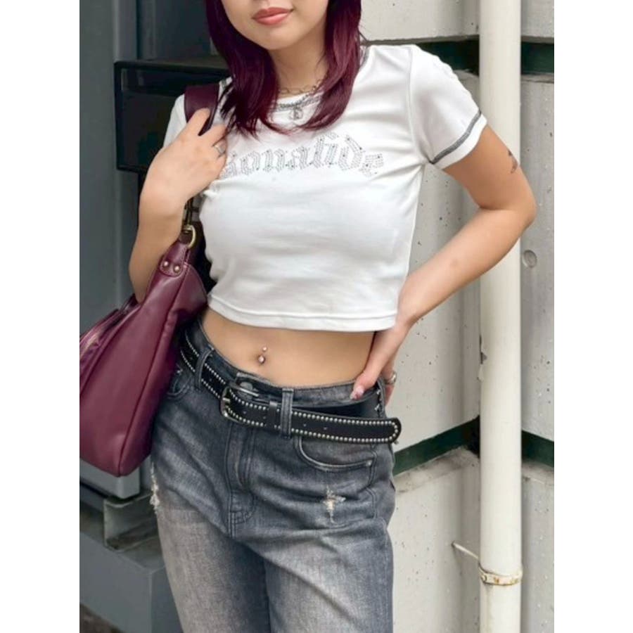 スタッズで入れたグラフィックと配色ステッチがポイントのコンパクトTシャツです。伸縮性のあるスムース生地を使用しております。トレンドのスタッズを使用したグラフィックでエッジが効いているデザインです。2色のスタッズを使用しています。ハイウエストボトムやワイドボトムとの相性が抜群です。■ロゴの意味Bona fide=正真正銘の。本物。(ラテン語)