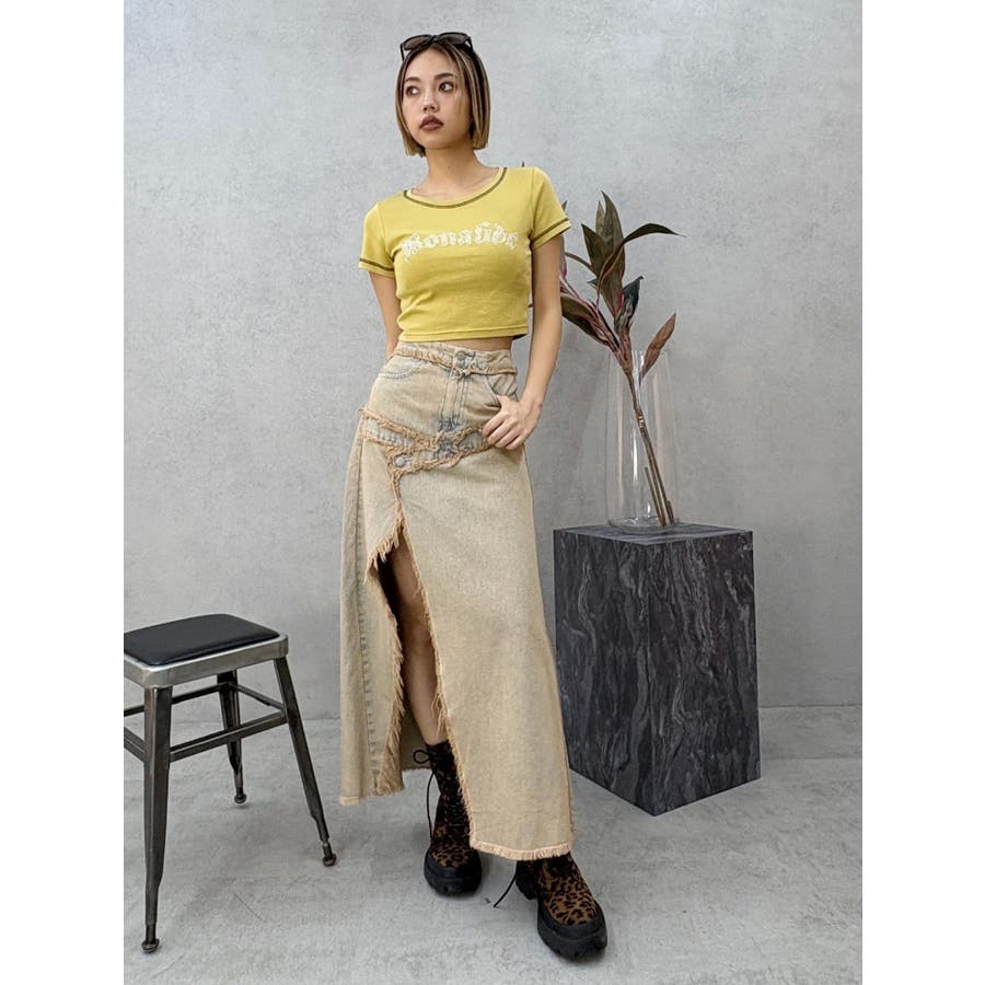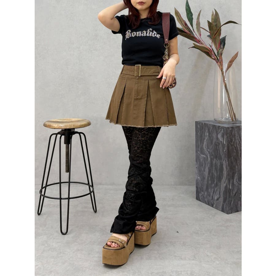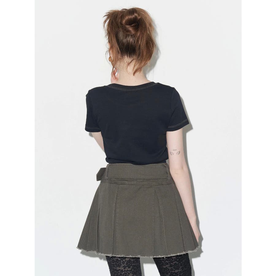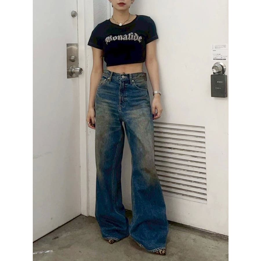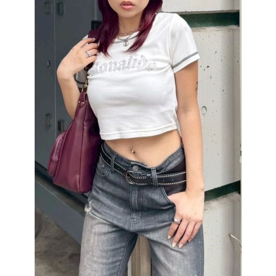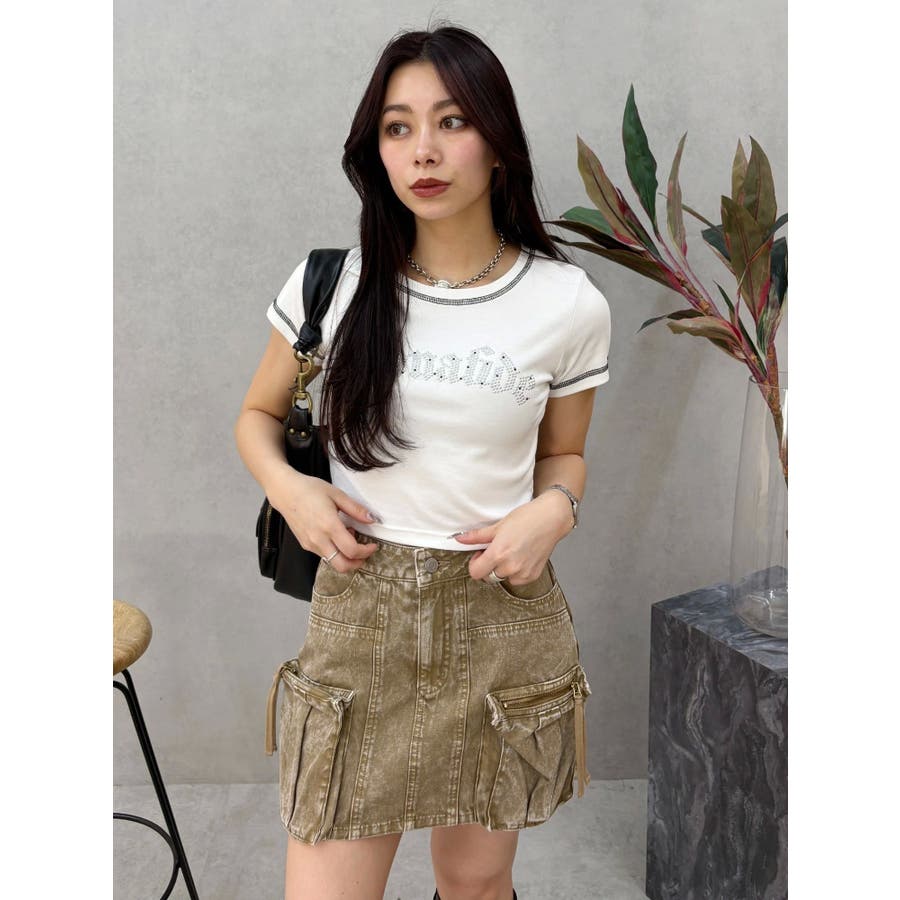 スタッズで入れたグラフィックと配色ステッチがポイントのコンパクトTシャツです。伸縮性のあるスムース生地を使用しております。トレンドのスタッズを使用したグラフィックでエッジが効いているデザインです。2色のスタッズを使用しています。ハイウエストボトムやワイドボトムとの相性が抜群です。■ロゴの意味Bona fide=正真正銘の。本物。(ラテン語)